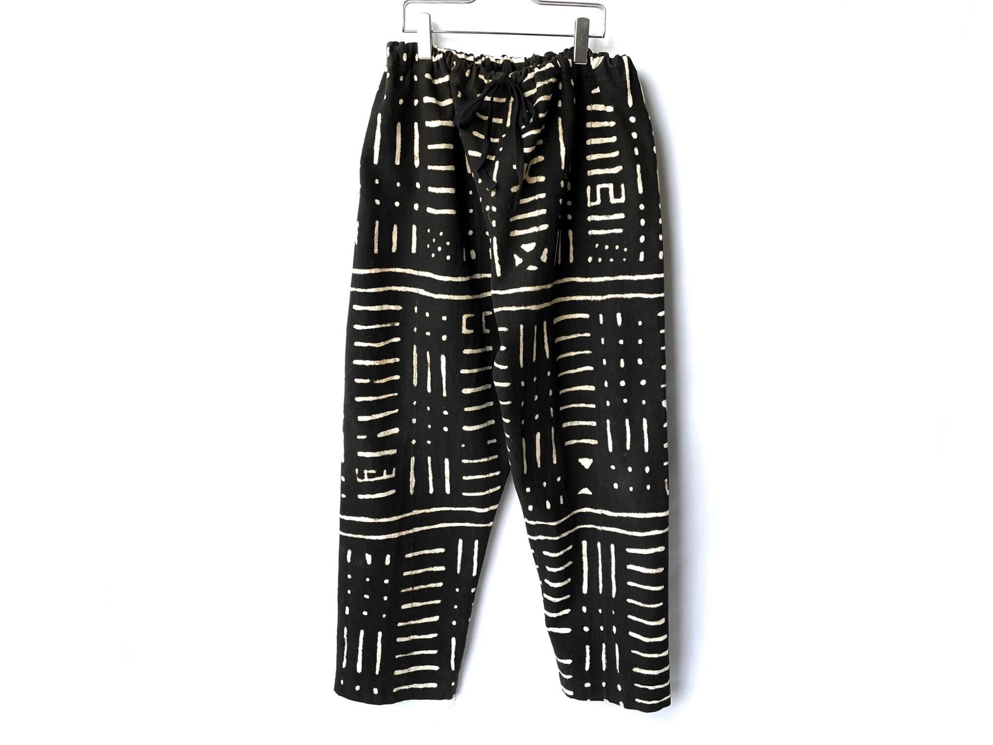 Wide pants made of traditional mud-dyed fabric that gets more and more textured each time you wear them.