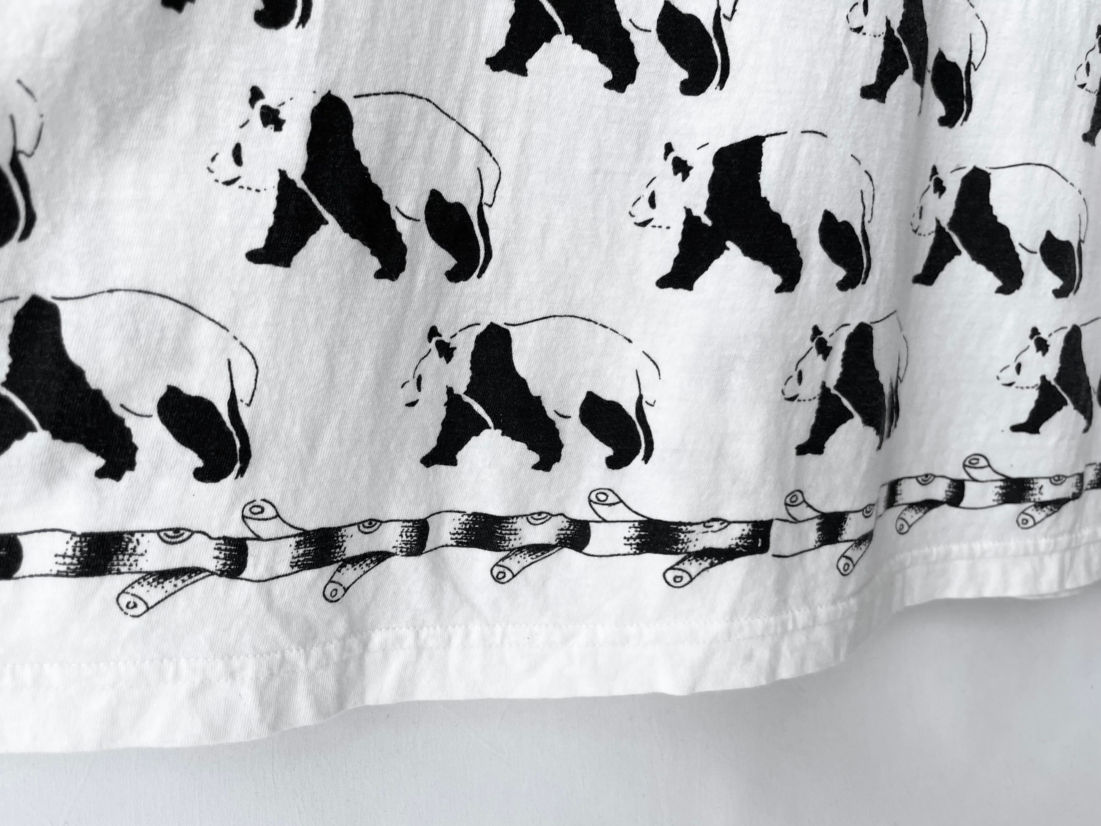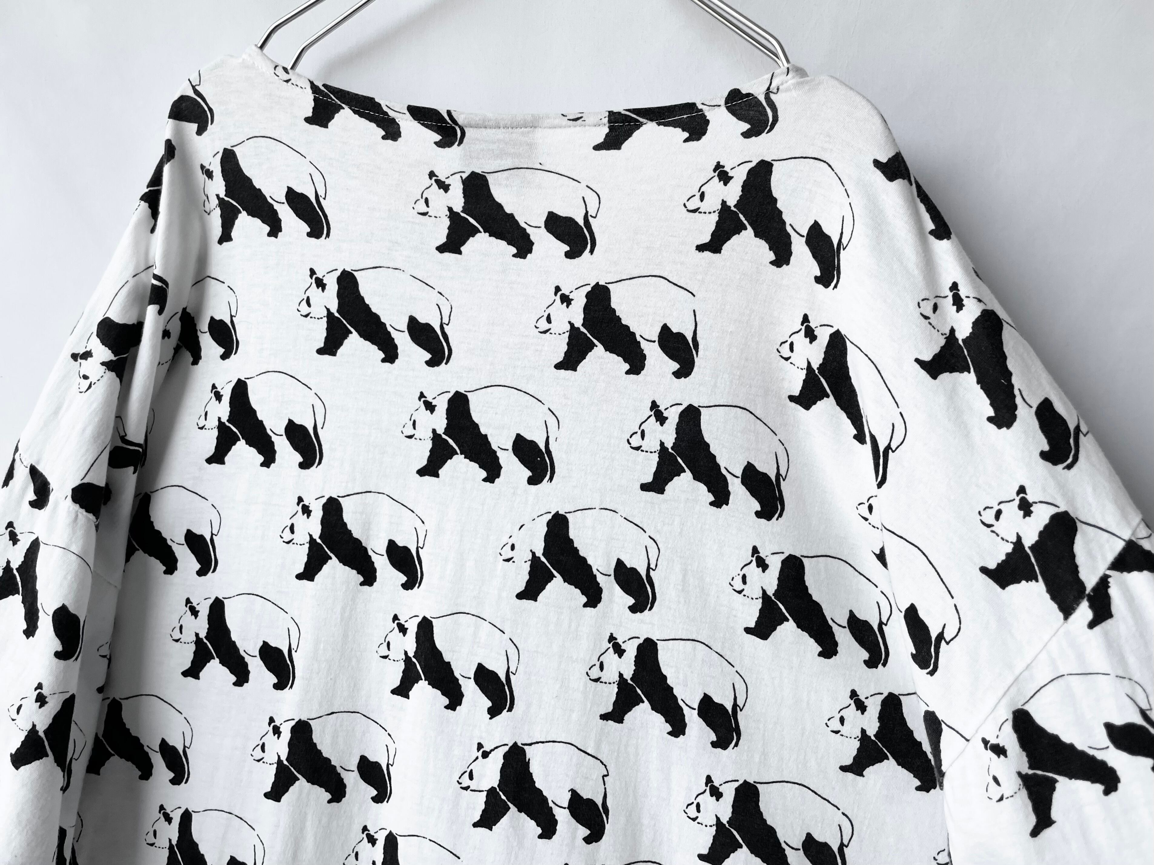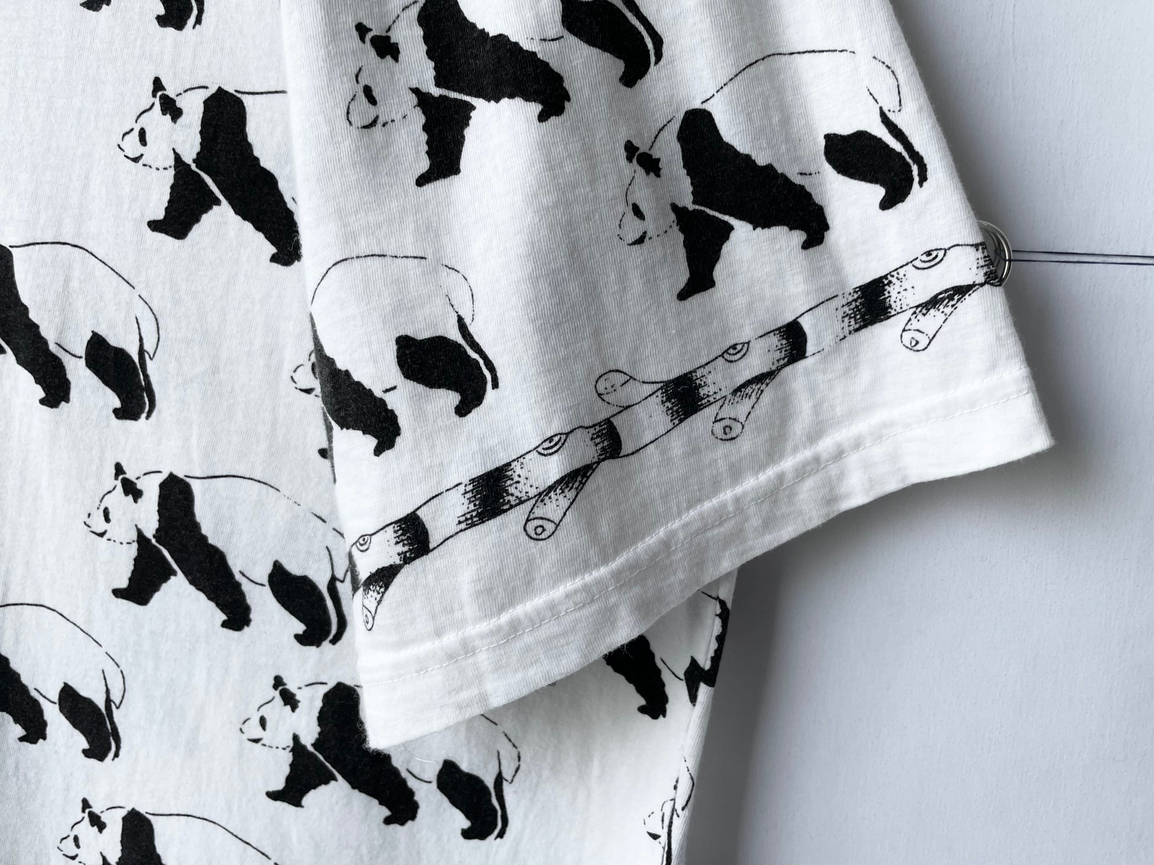 良いタッチのパンダが一面に並んだ、キュートなプリントデザイン。
