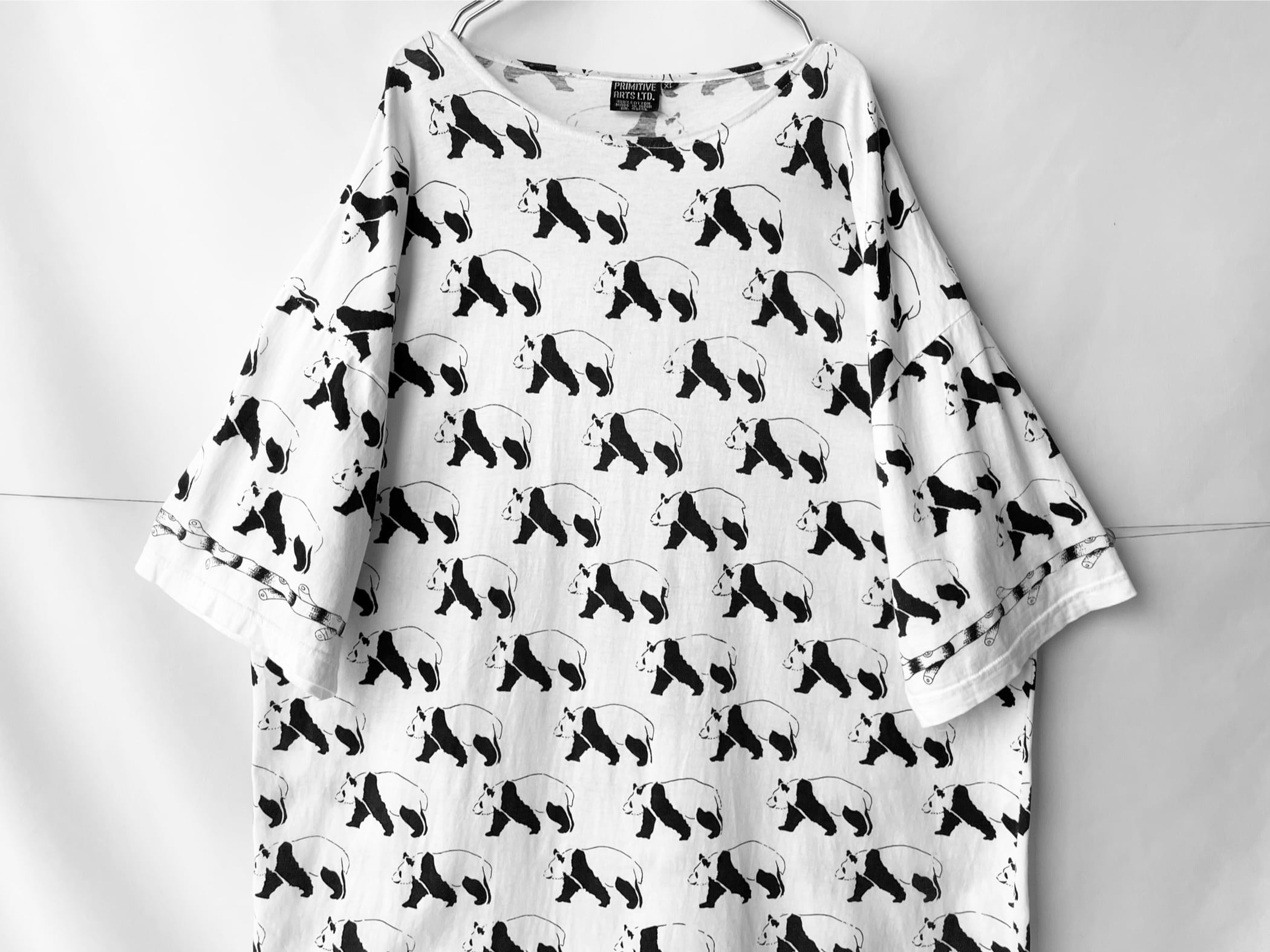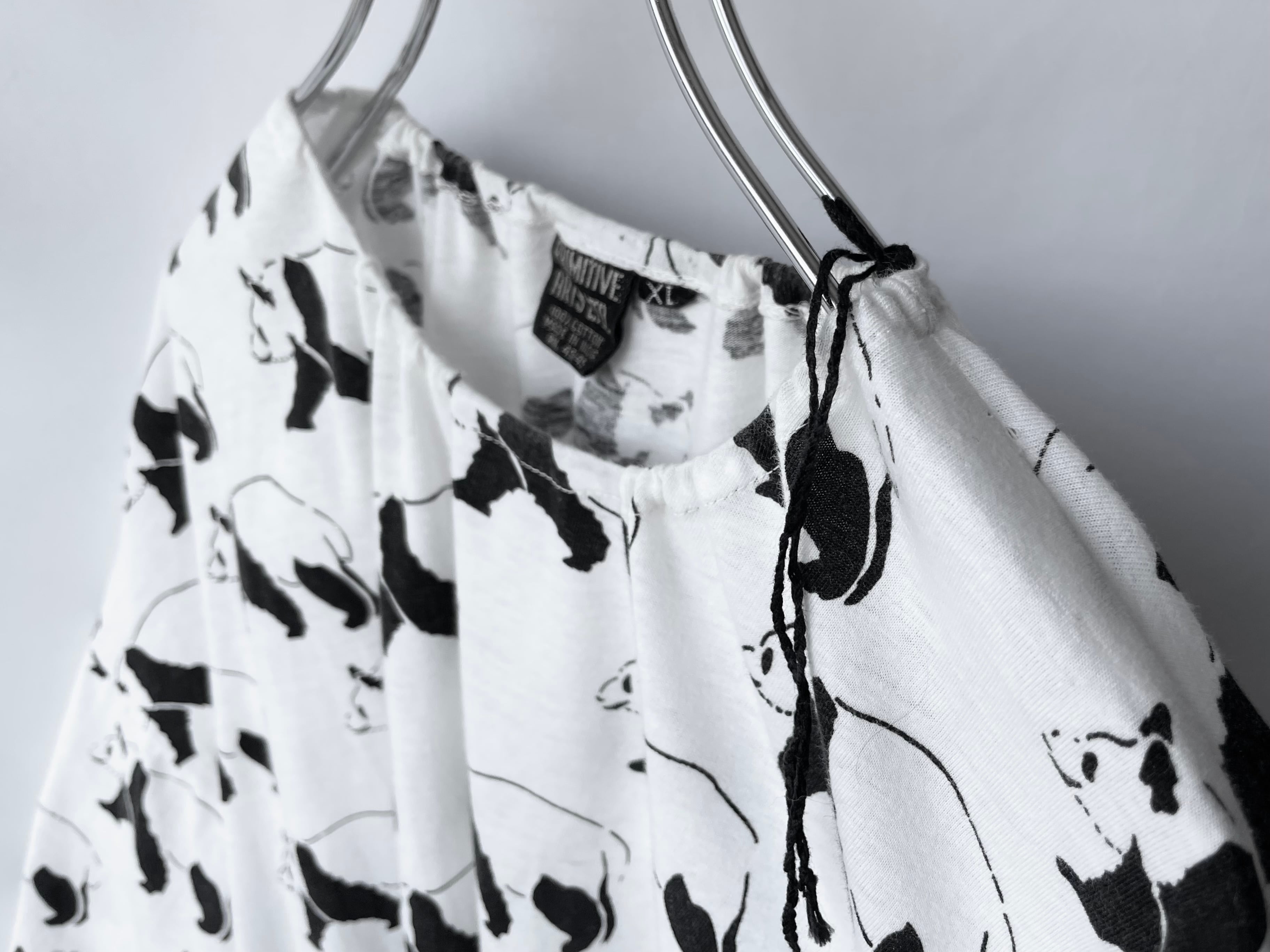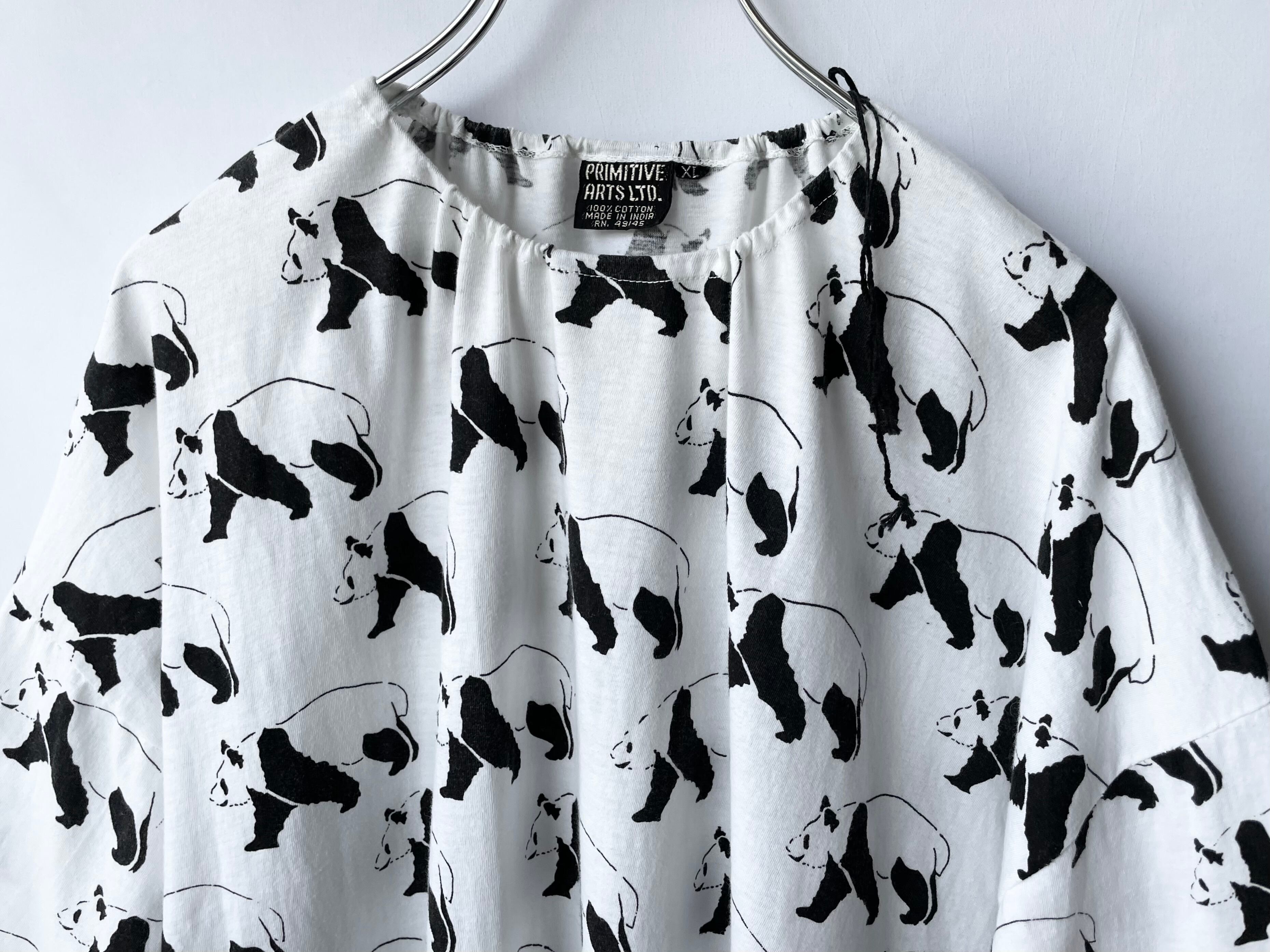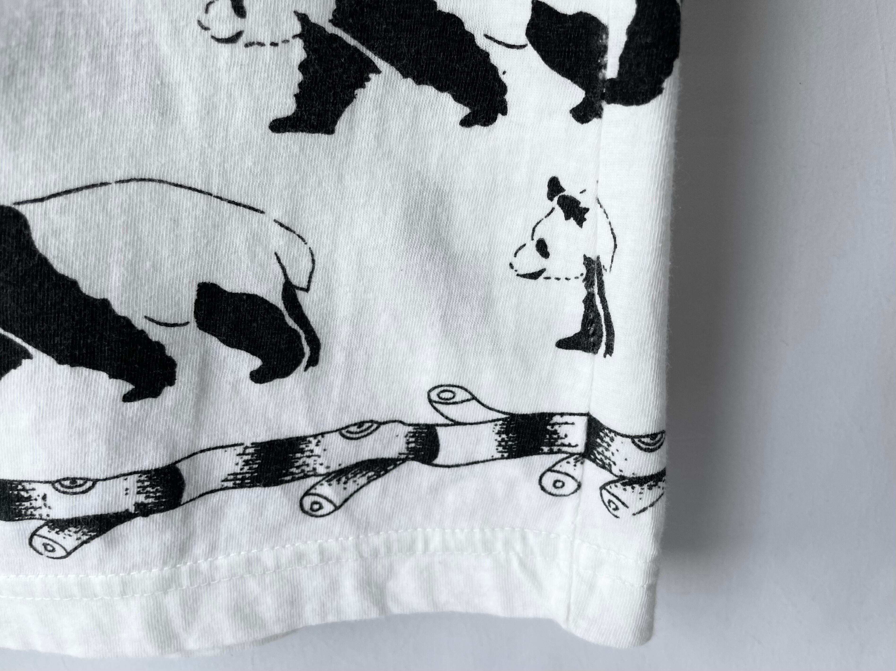 良いタッチのパンダが一面に並んだ、キュートなプリントデザイン。