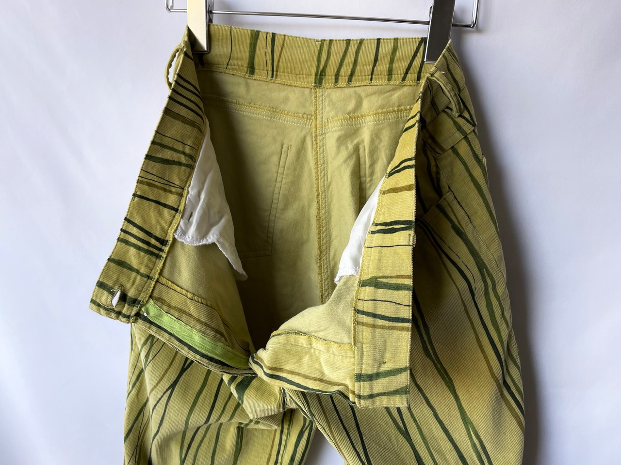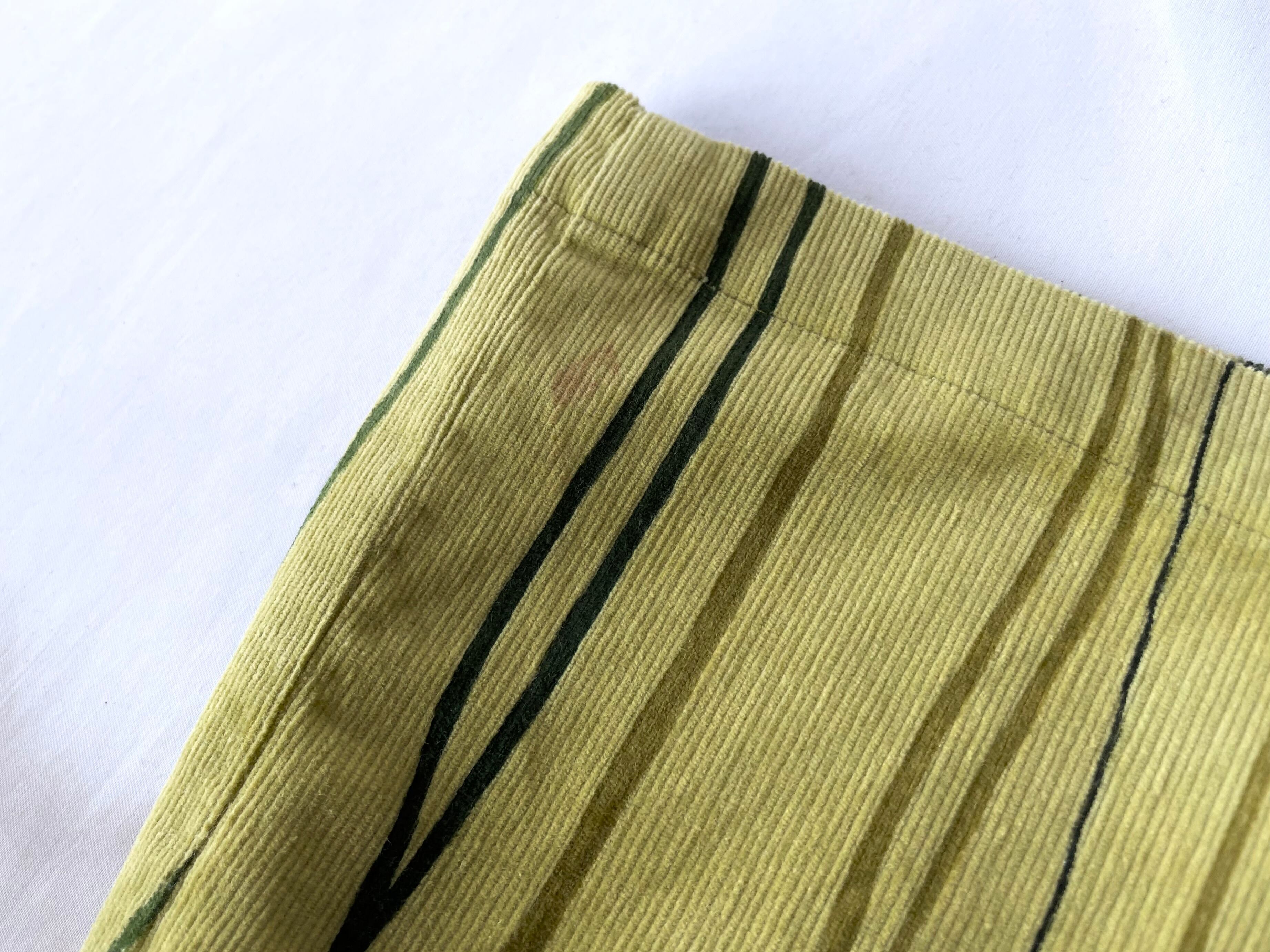 ぼやけたカーキイエローカラーの細畝コーデュロイに、