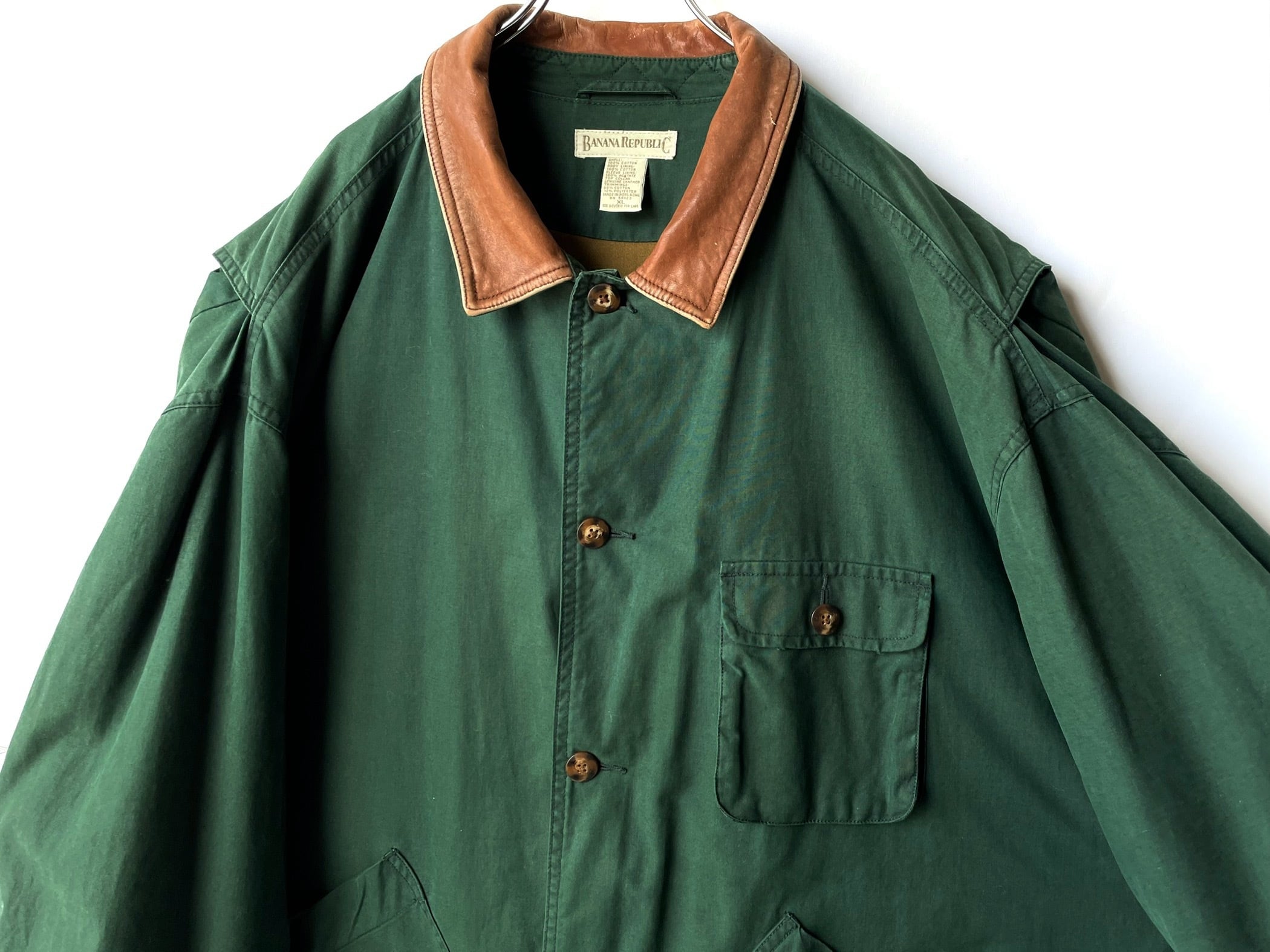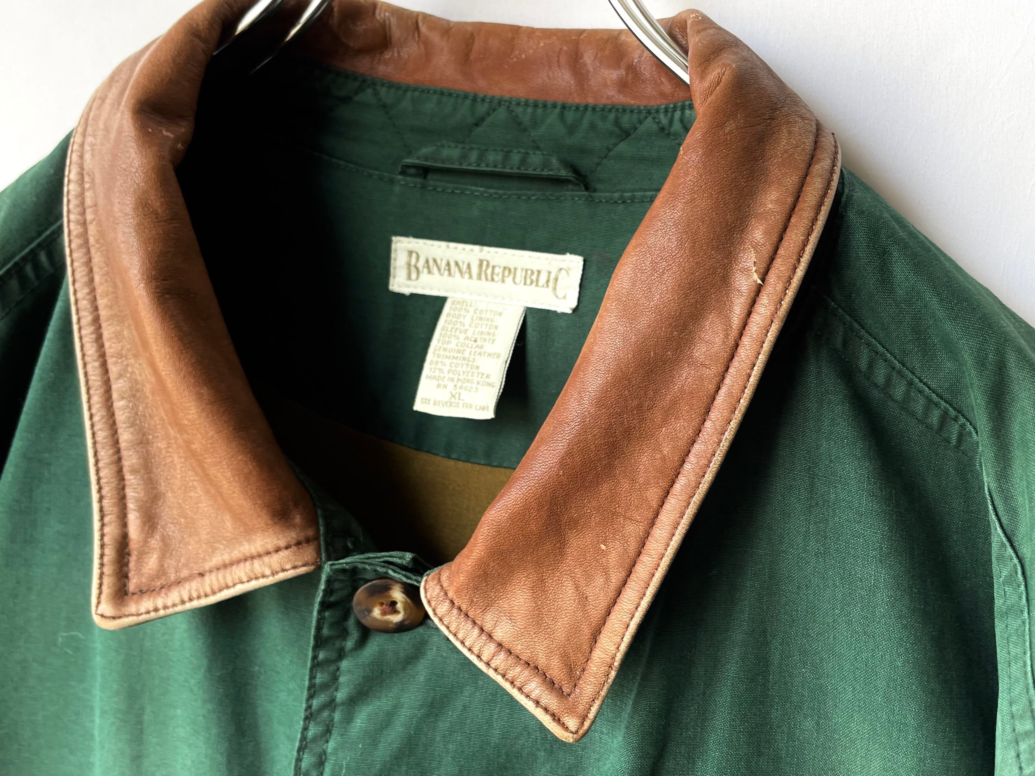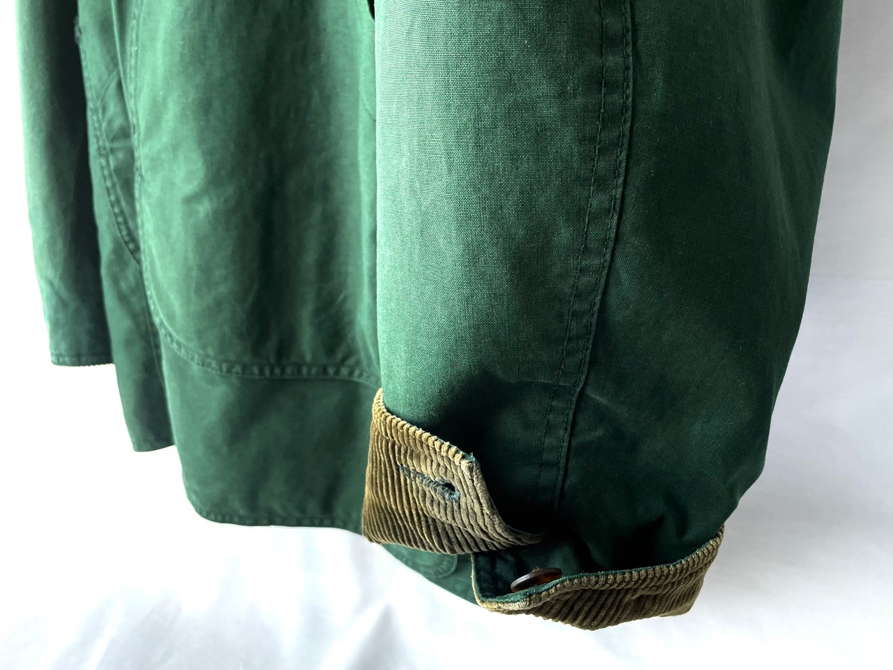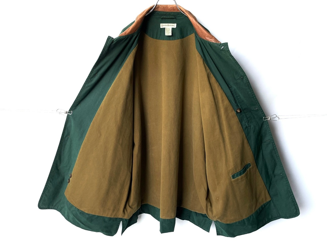 襟は良い雰囲気のブラウンレザー、カフス裏は太畝コーデュロイの切り替えデザイン。