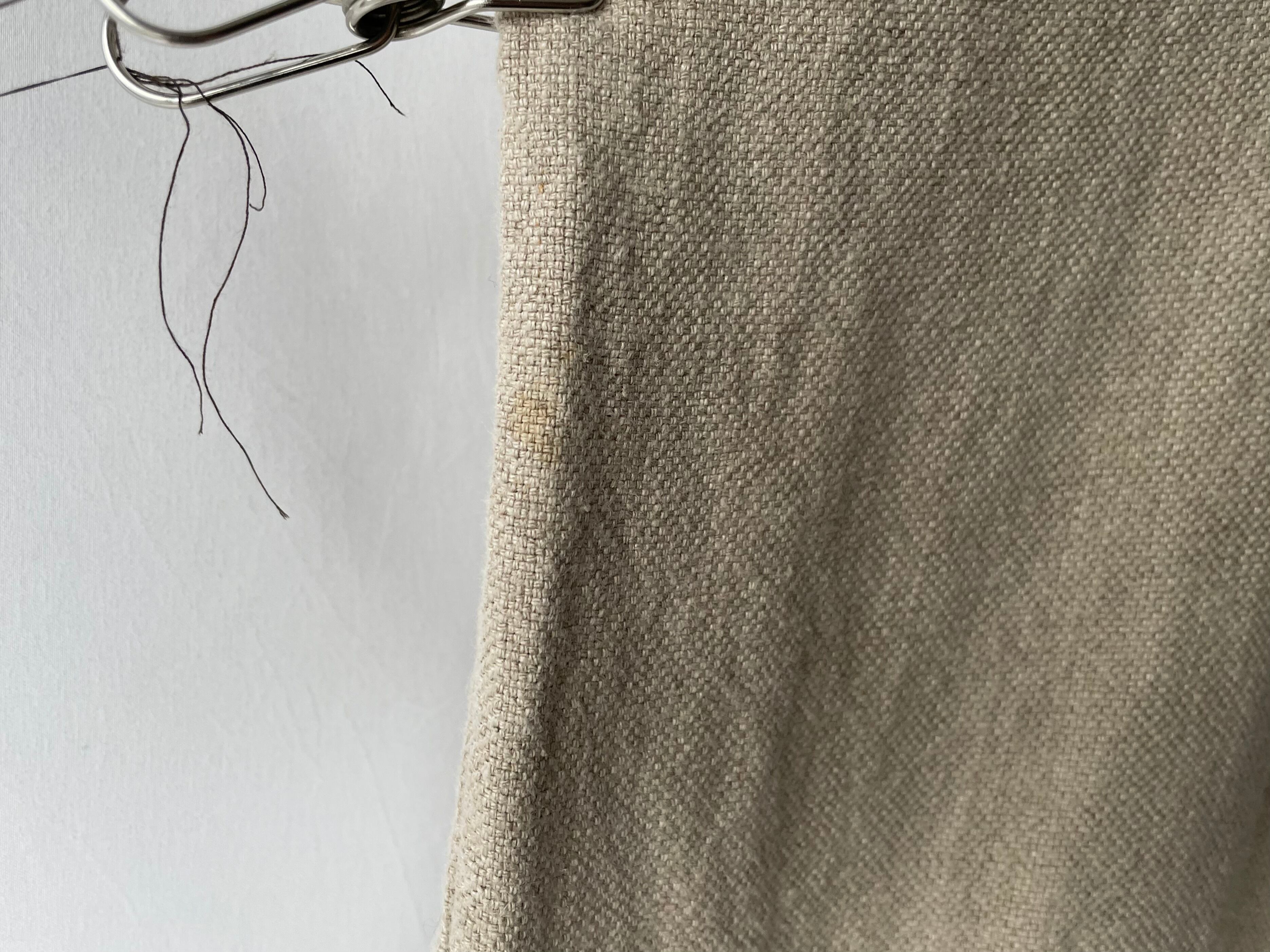 ライトベージュカラーのたっぷり肉厚なリネン生地。