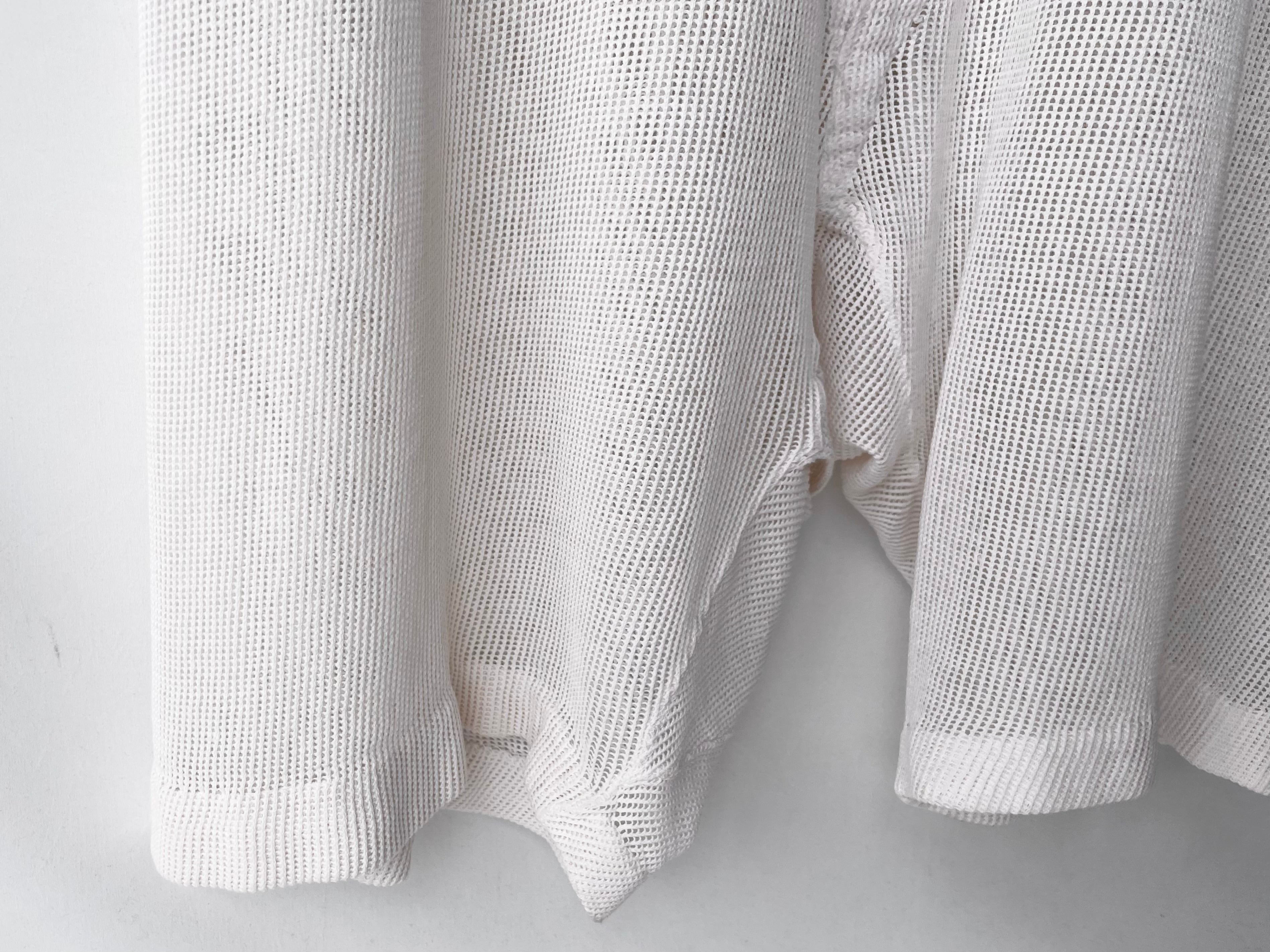 面白い個性を持ったファッションアイテムとして捉えられる、白無地の風合いの良いコットンネット生地。