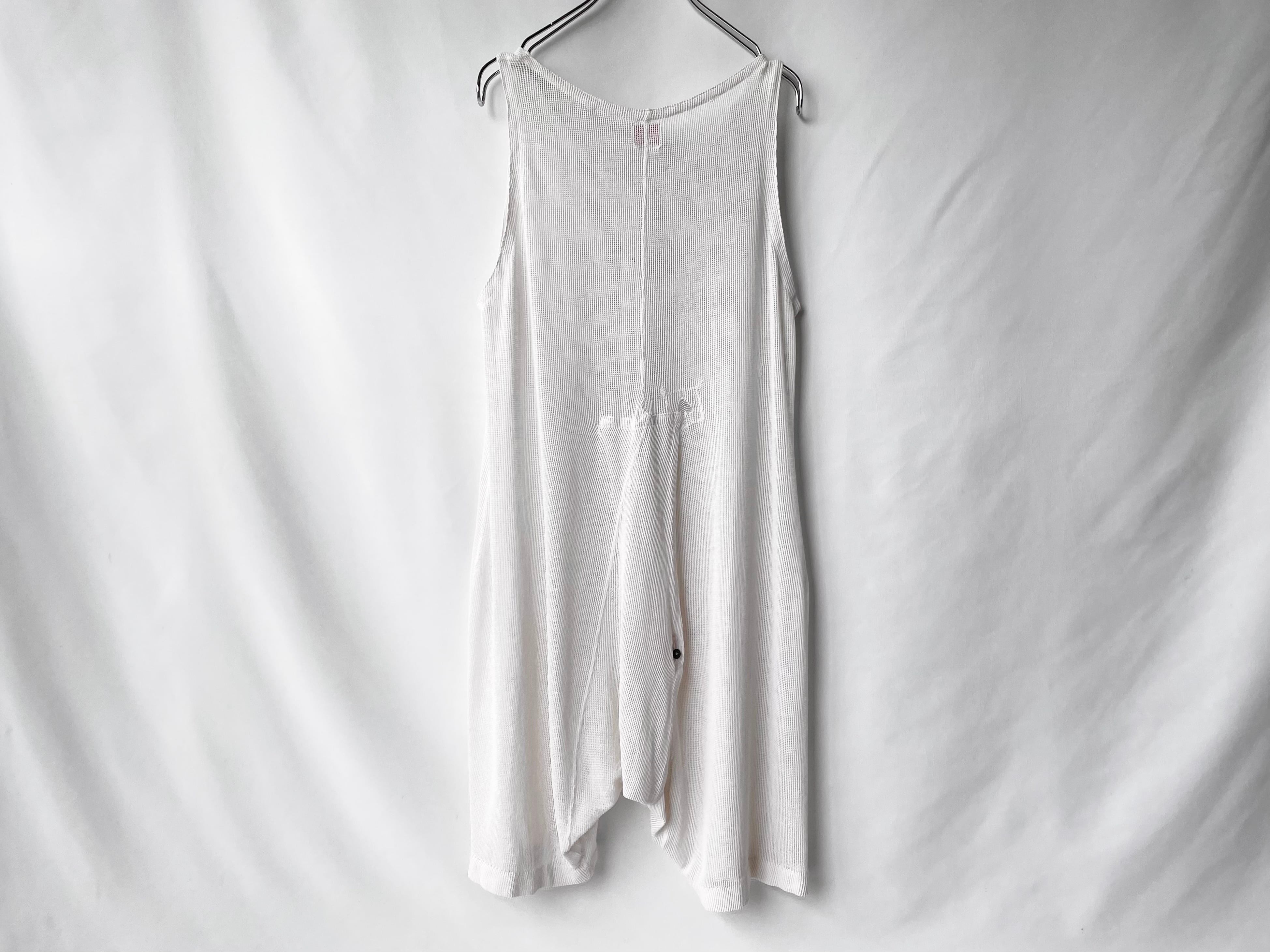 A plain white cotton net fabric with a nice texture that can be seen as a fashion item with an interesting personality.