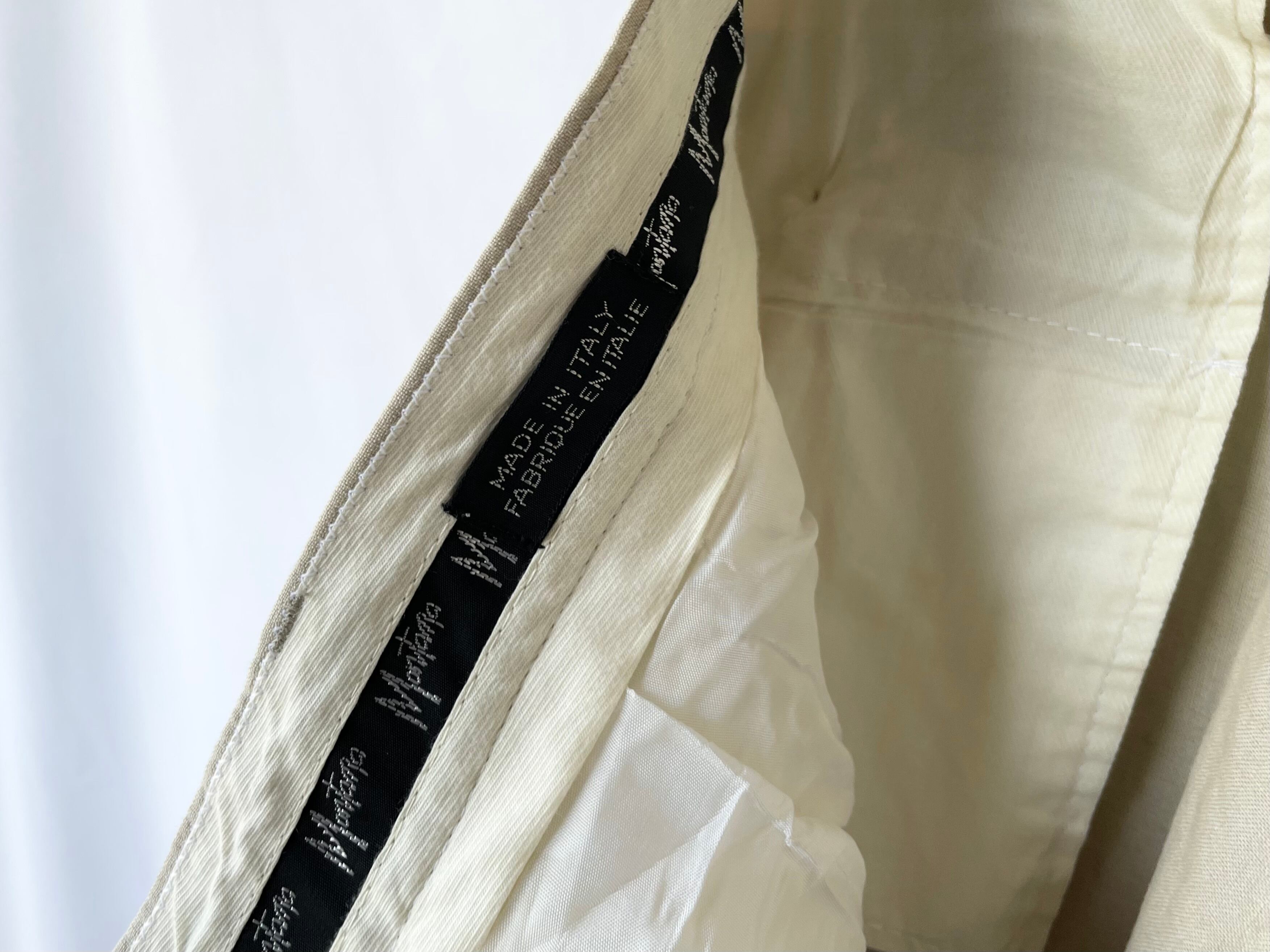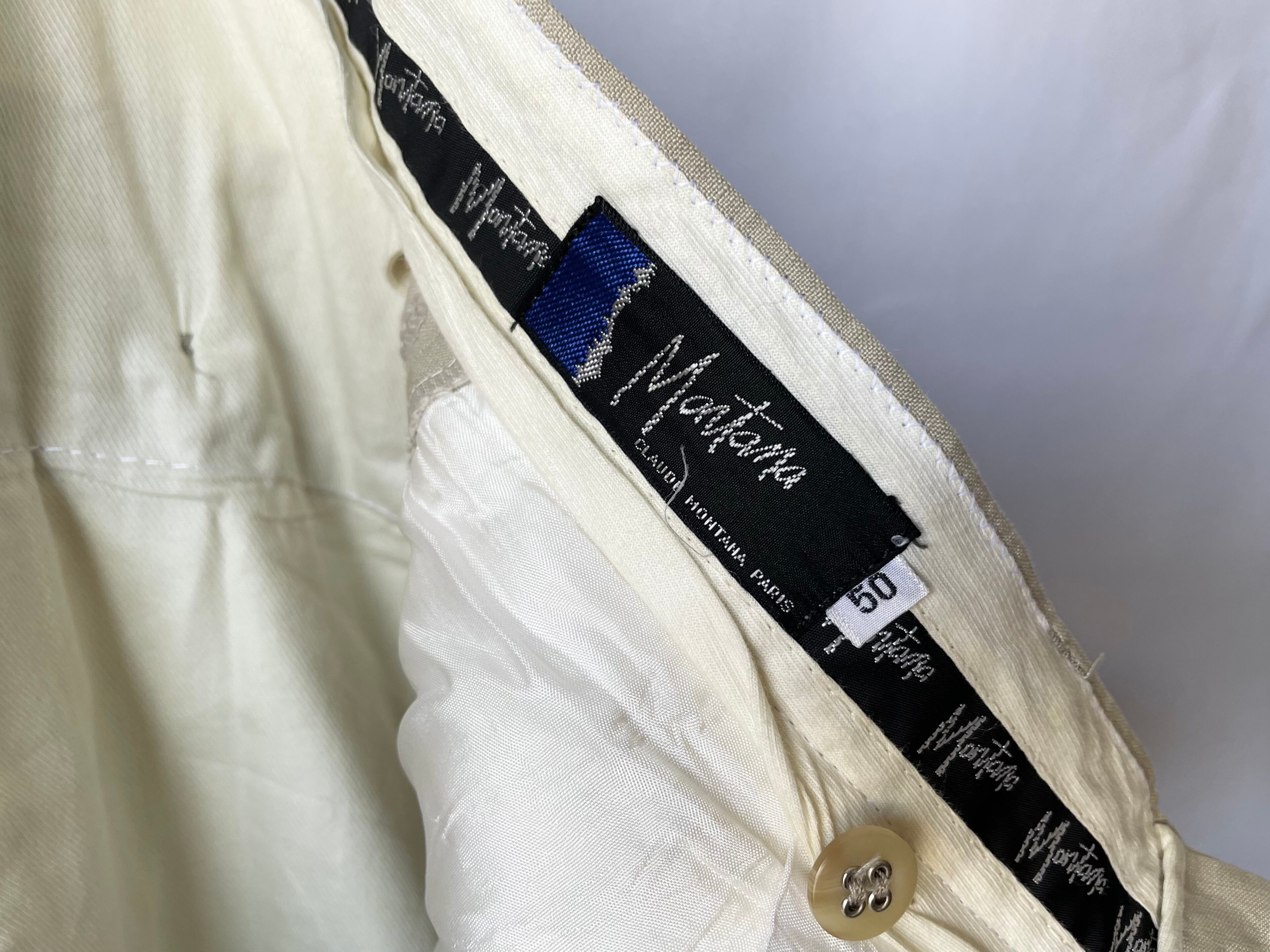 The pants are wide tapered with deep 2 tucks and have 5 pockets including a coin pocket.