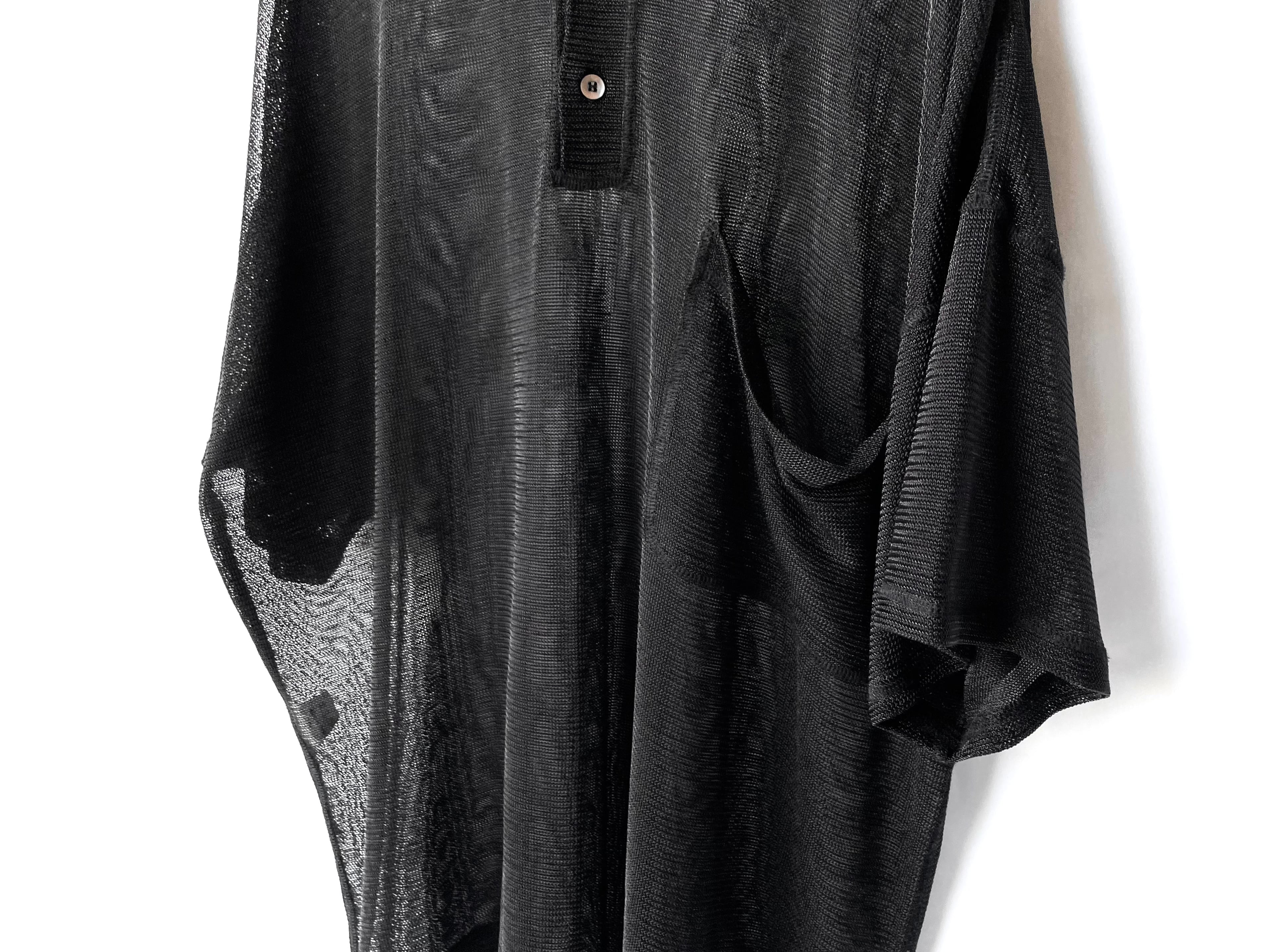身幅/アーム幅共に大きく取られた、首元2つボタン仕様のニットポロ。