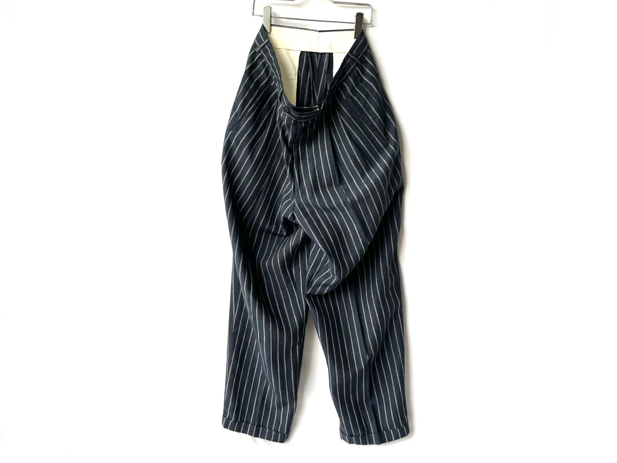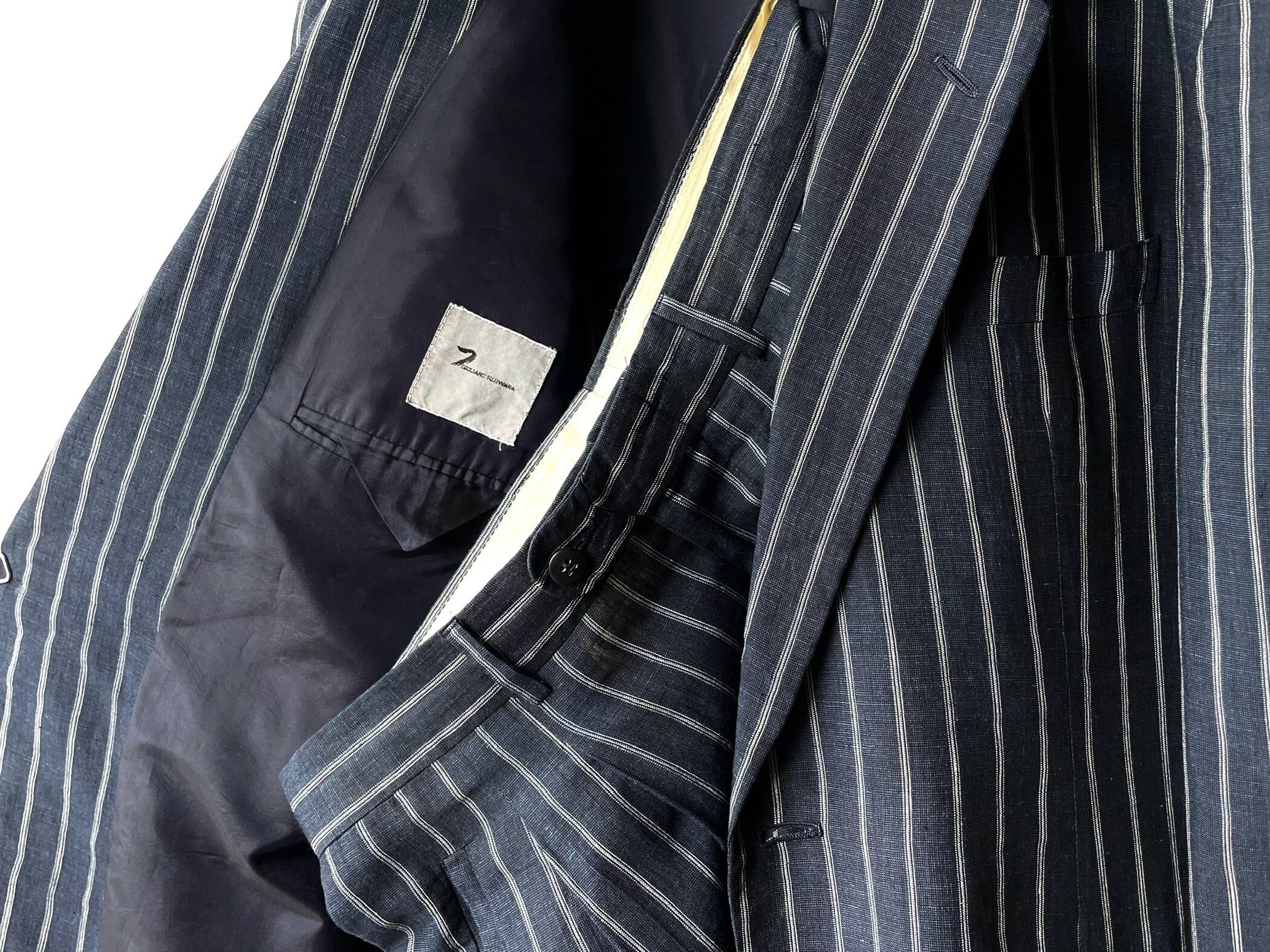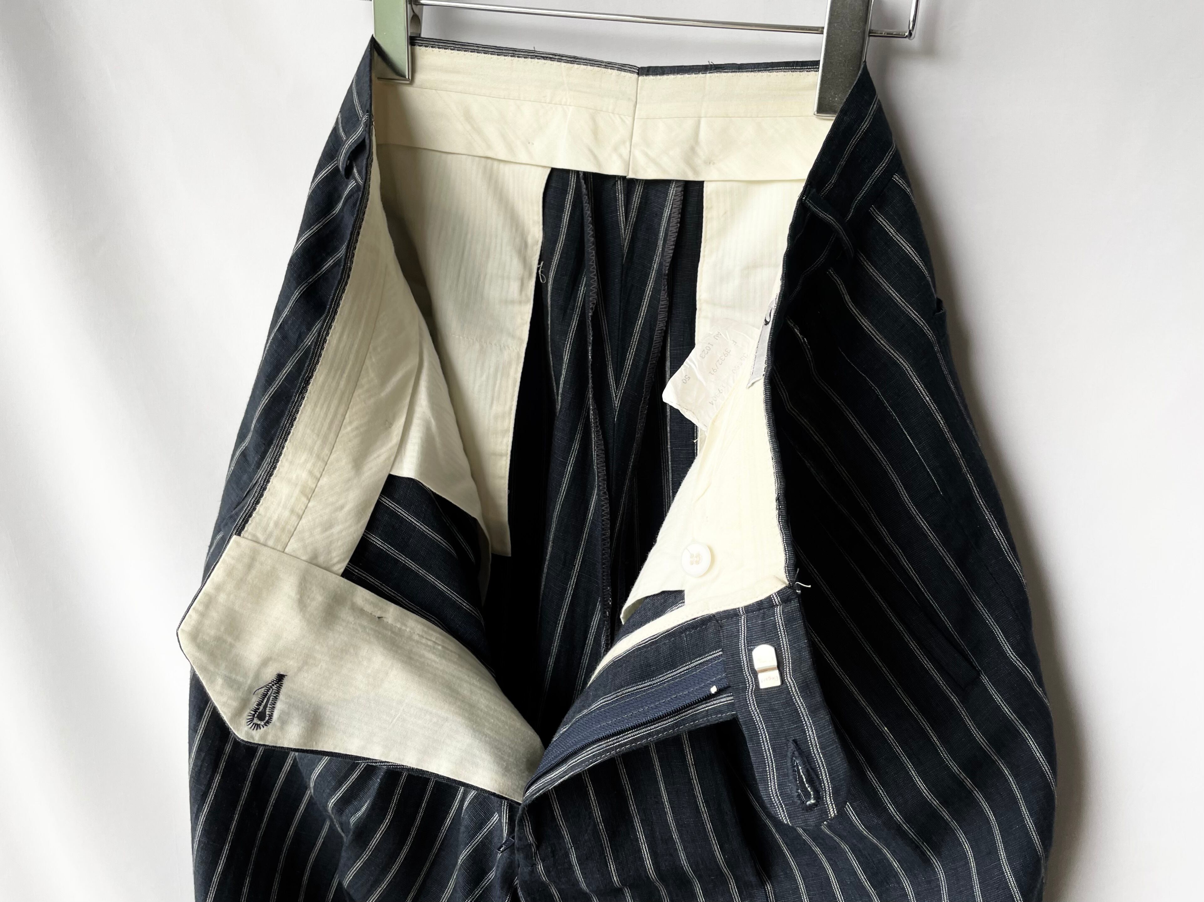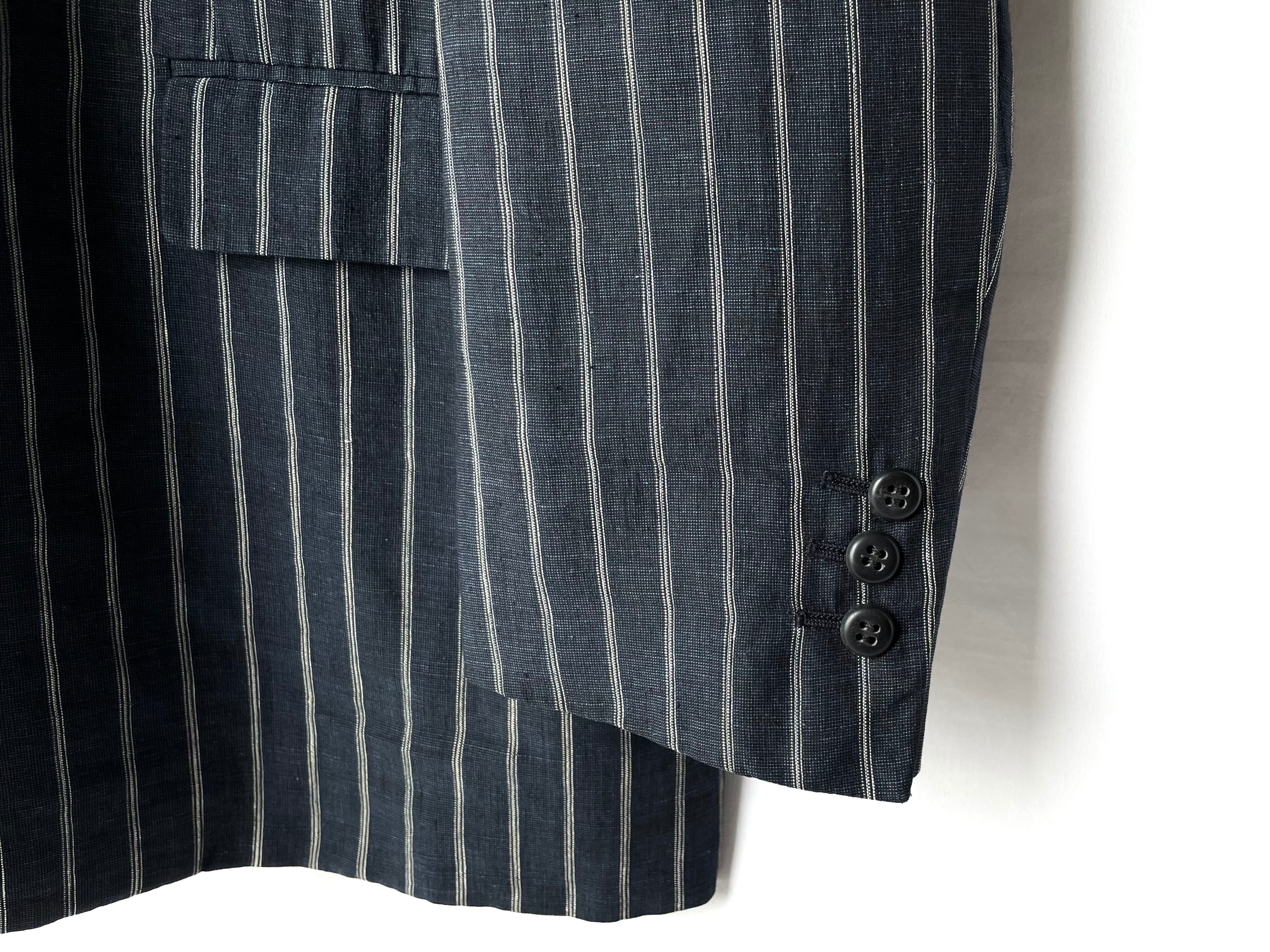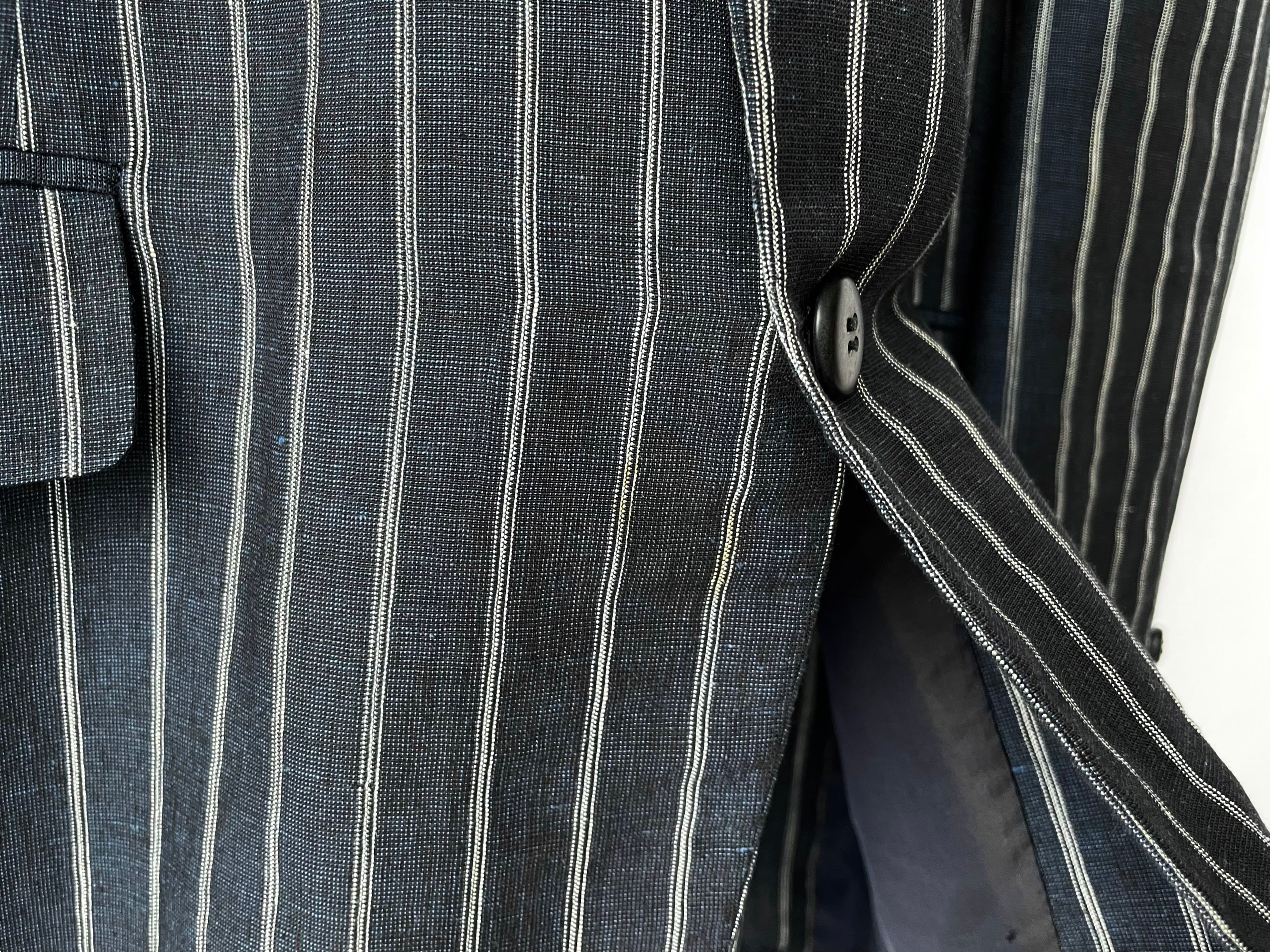Made of high-quality linen/cotton with a sturdy thickness and strong elasticity.Deep dark navy x ivory striped pattern.
