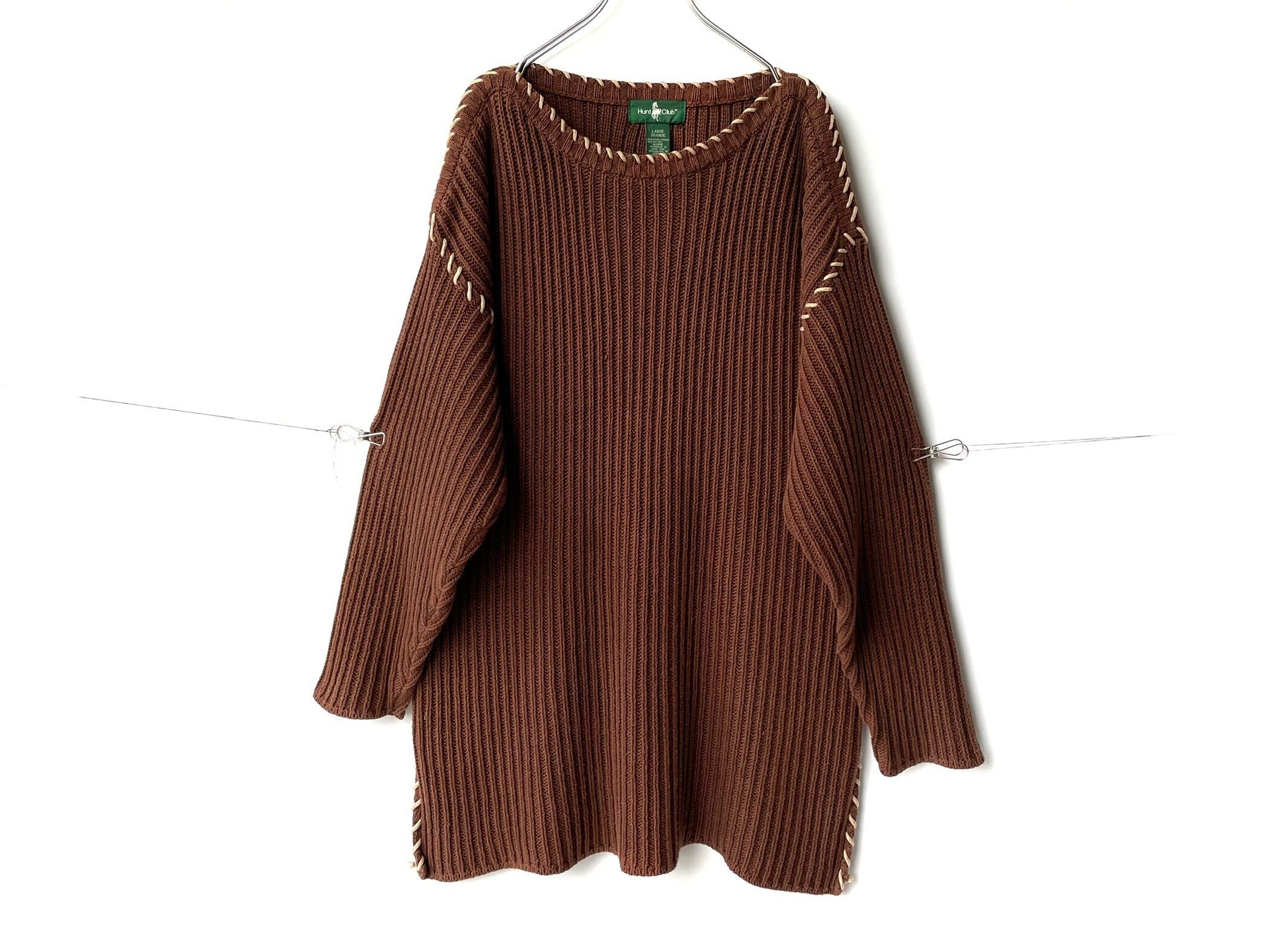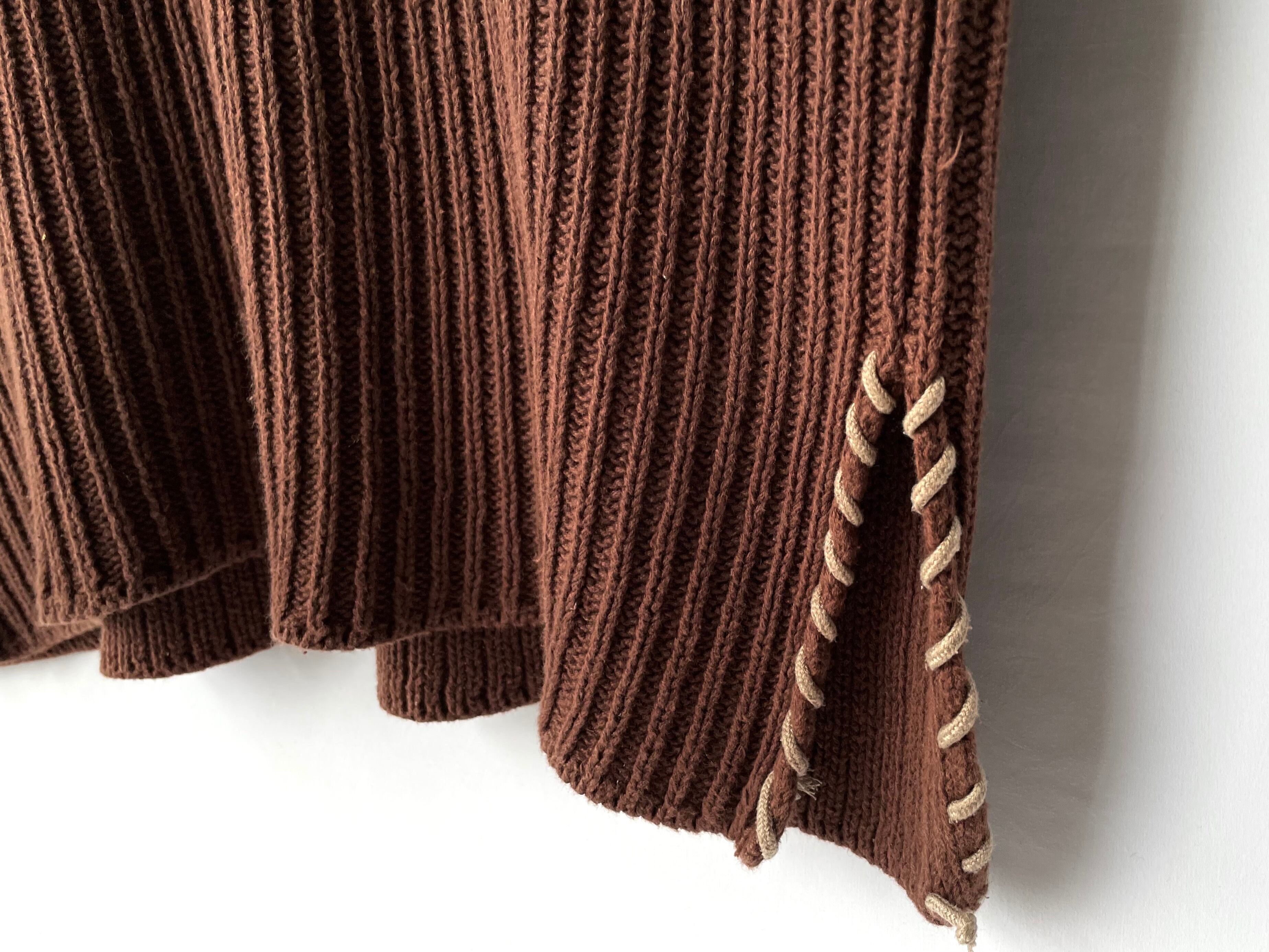 柔らかな手触りのたっぷり肉厚なコットン/リネンの編み地。