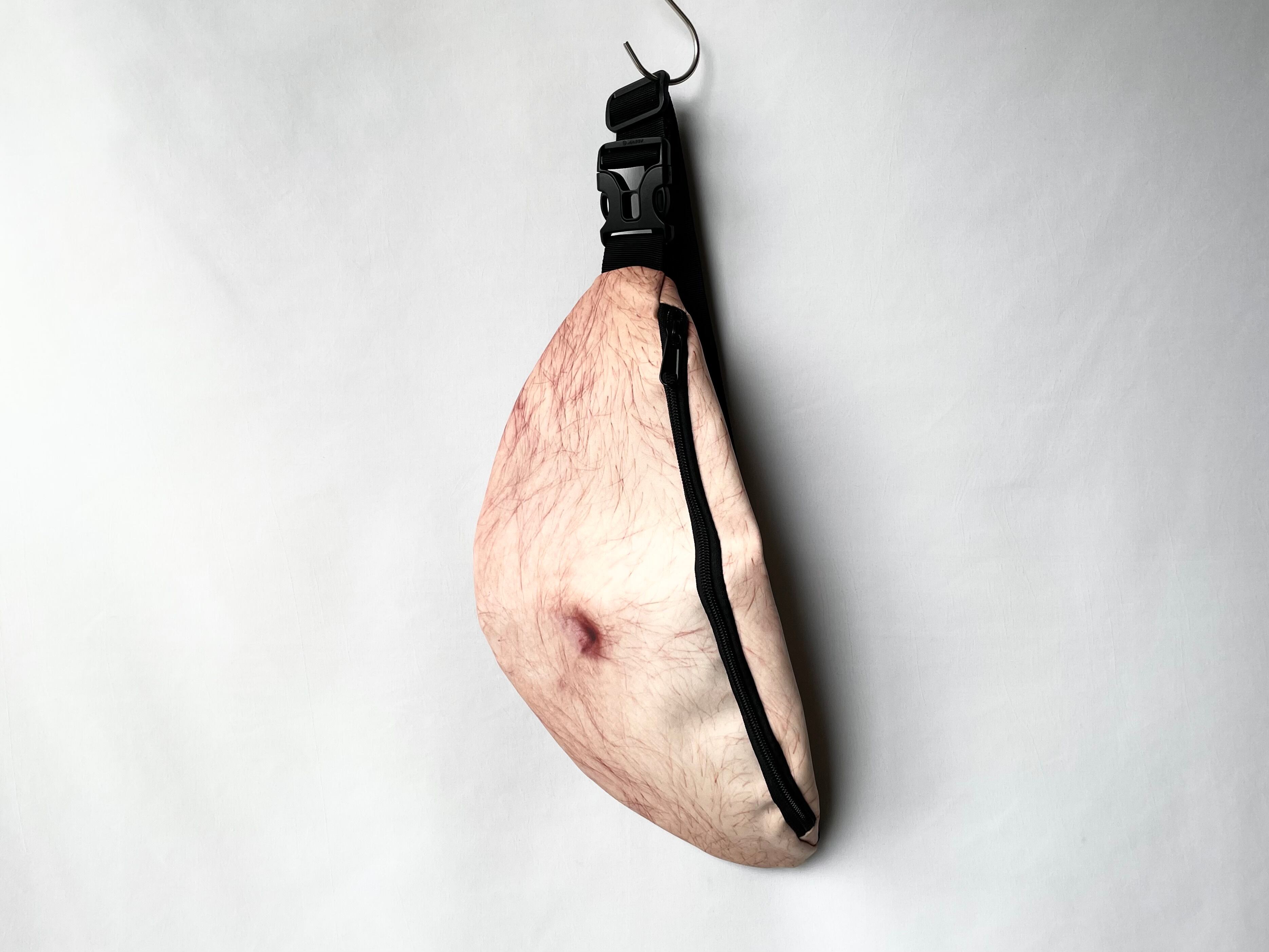 だらしのないおへそがプリントされた、アメリカのウエストバッグ。