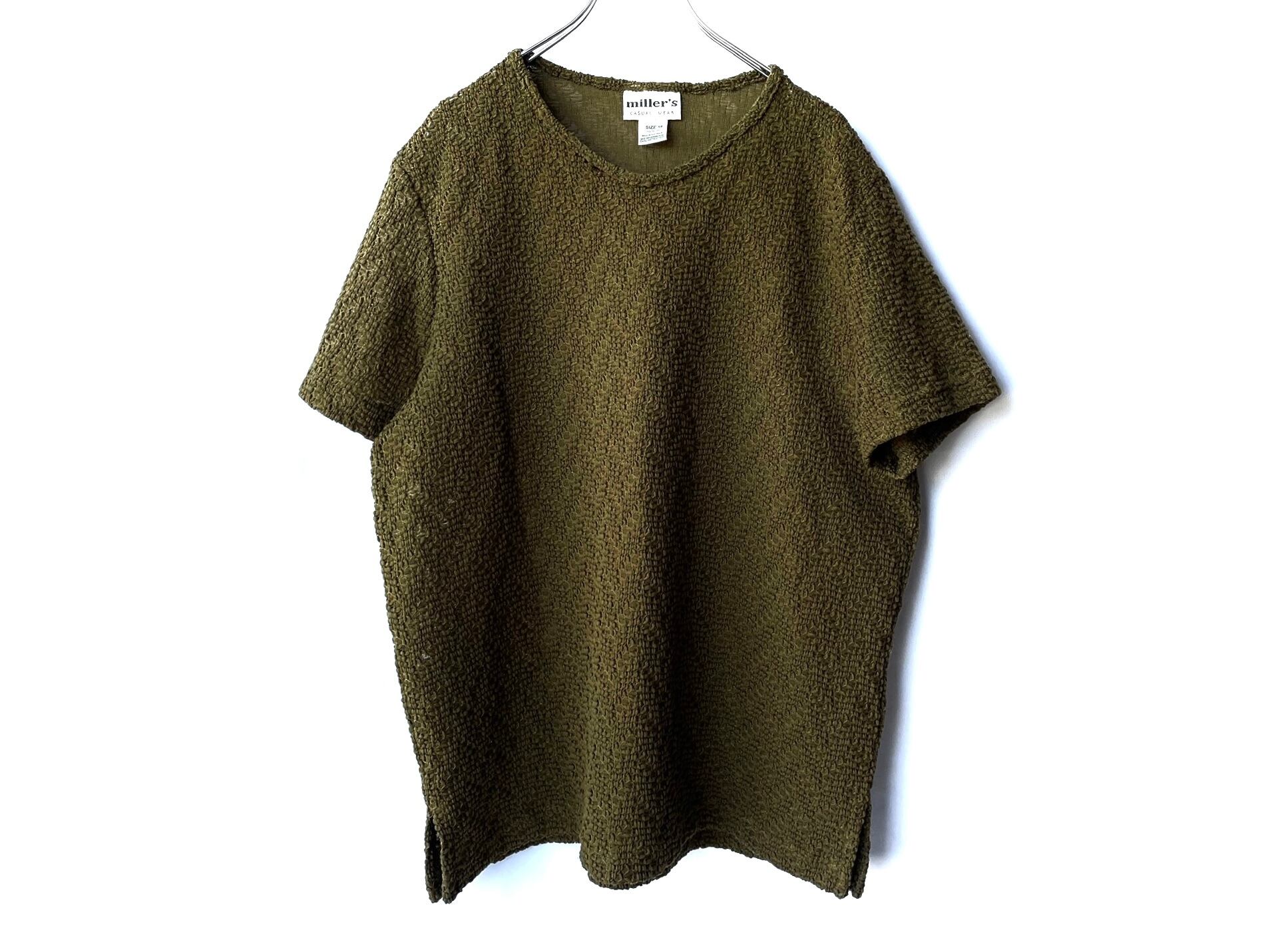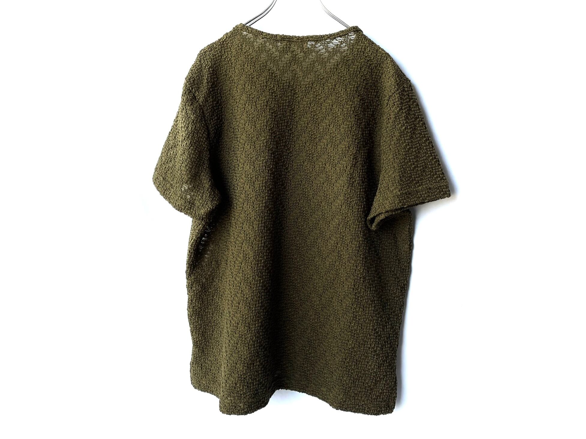 A simple crew neck tee made of unique fabric.