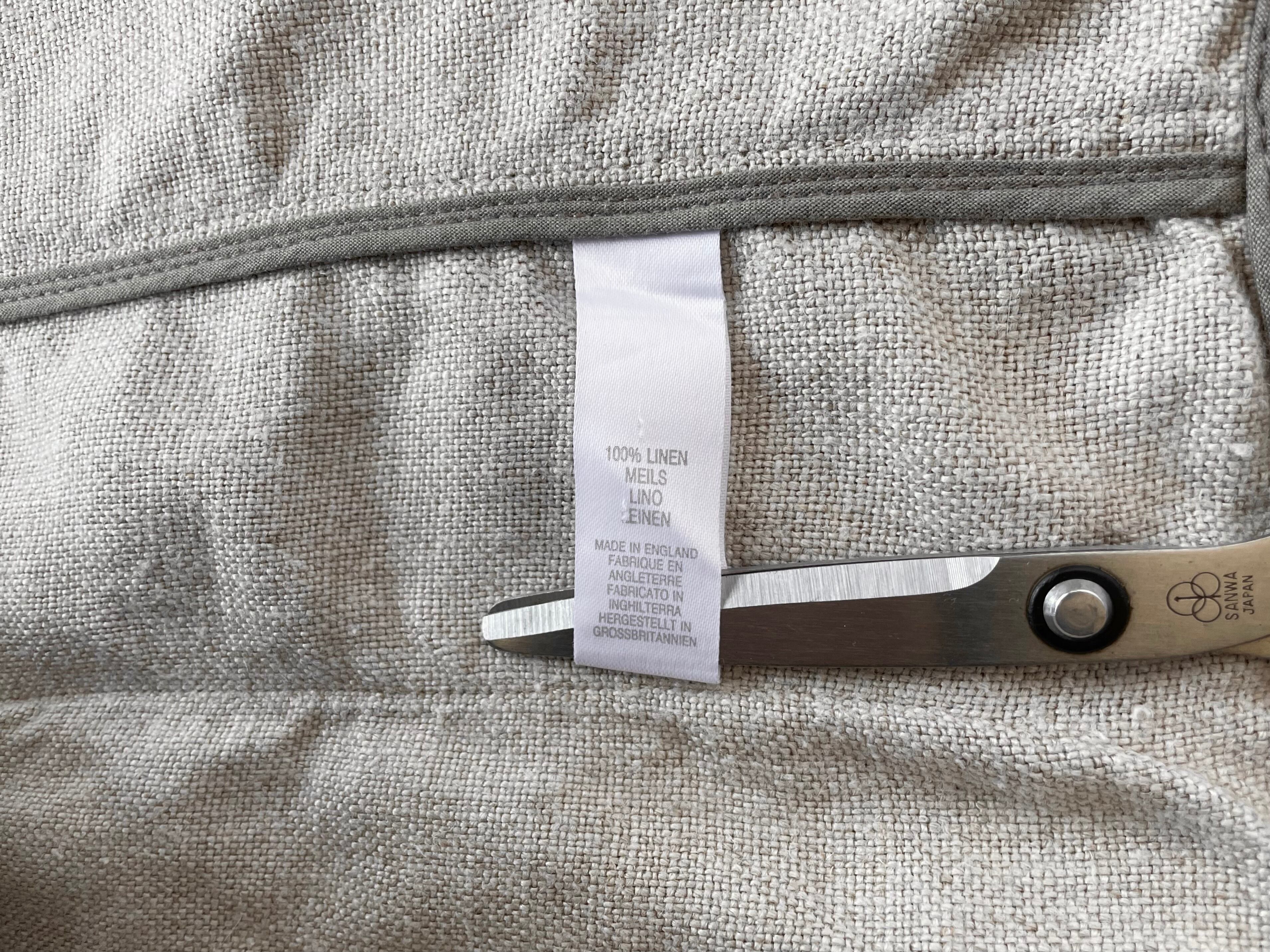 若干の着用感、リネン生地特有の少しのパッカリングがございます。