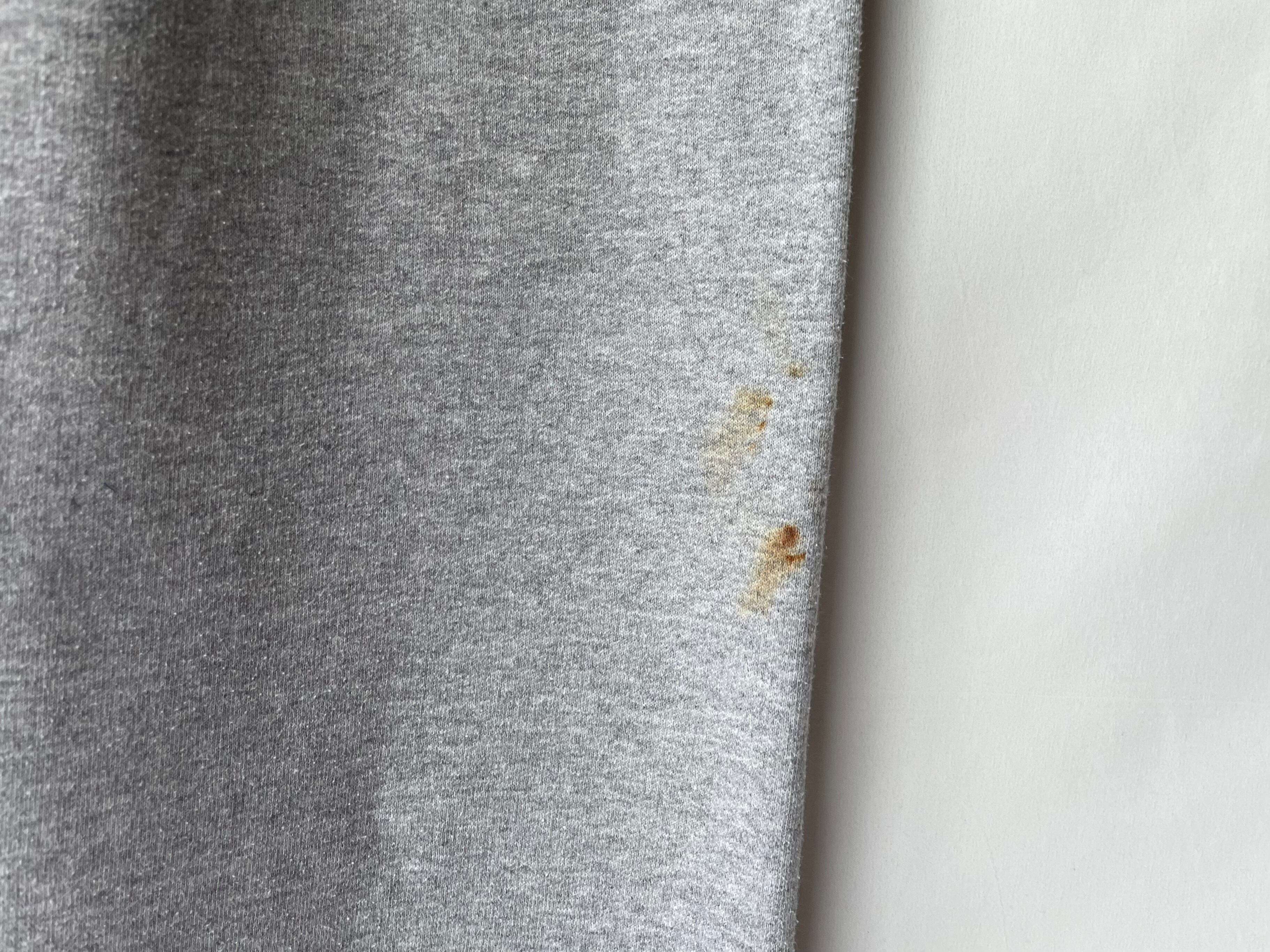 The スウェットなグレーボディで、M表記のワイドなシルエットバランス。
