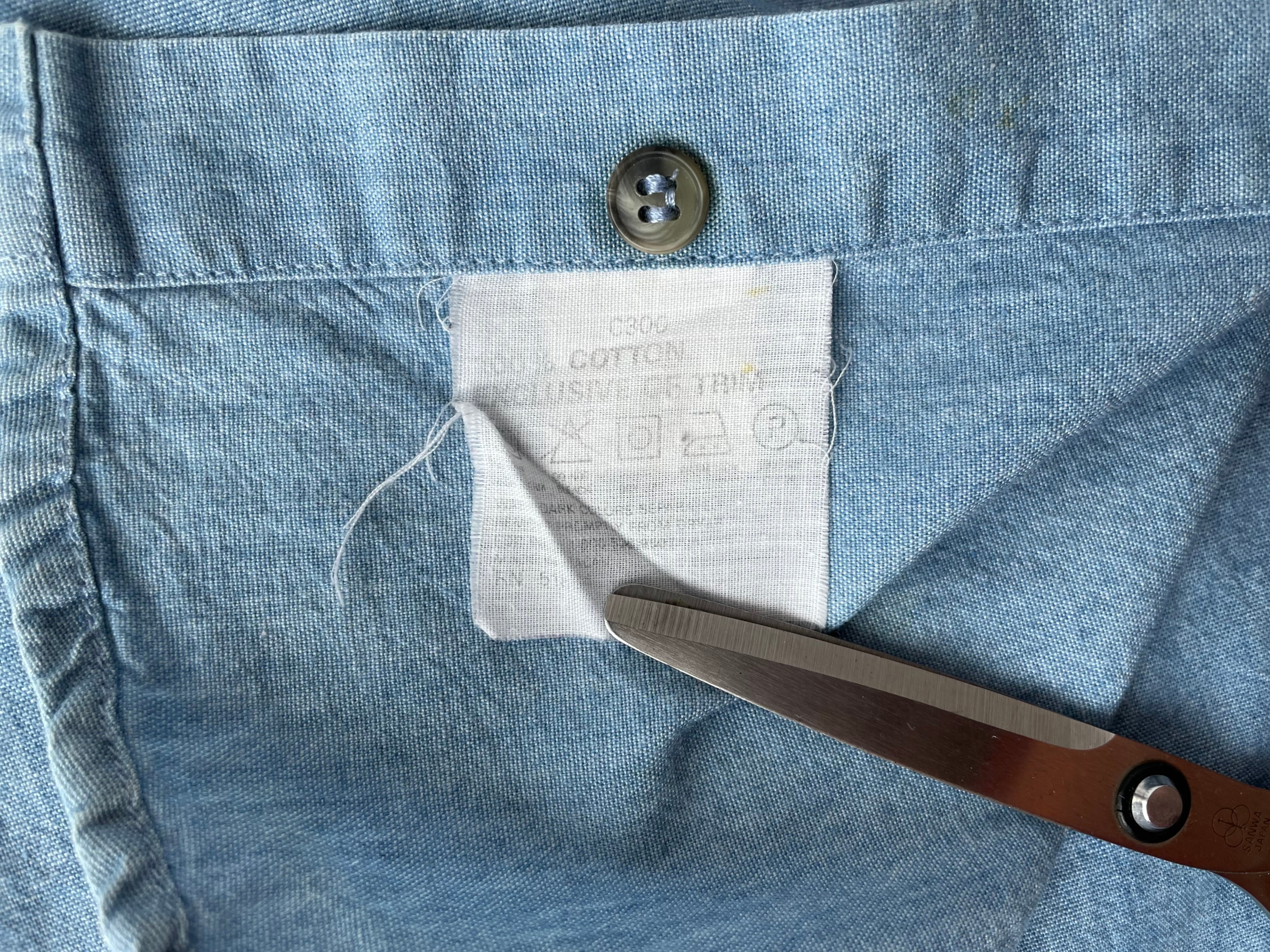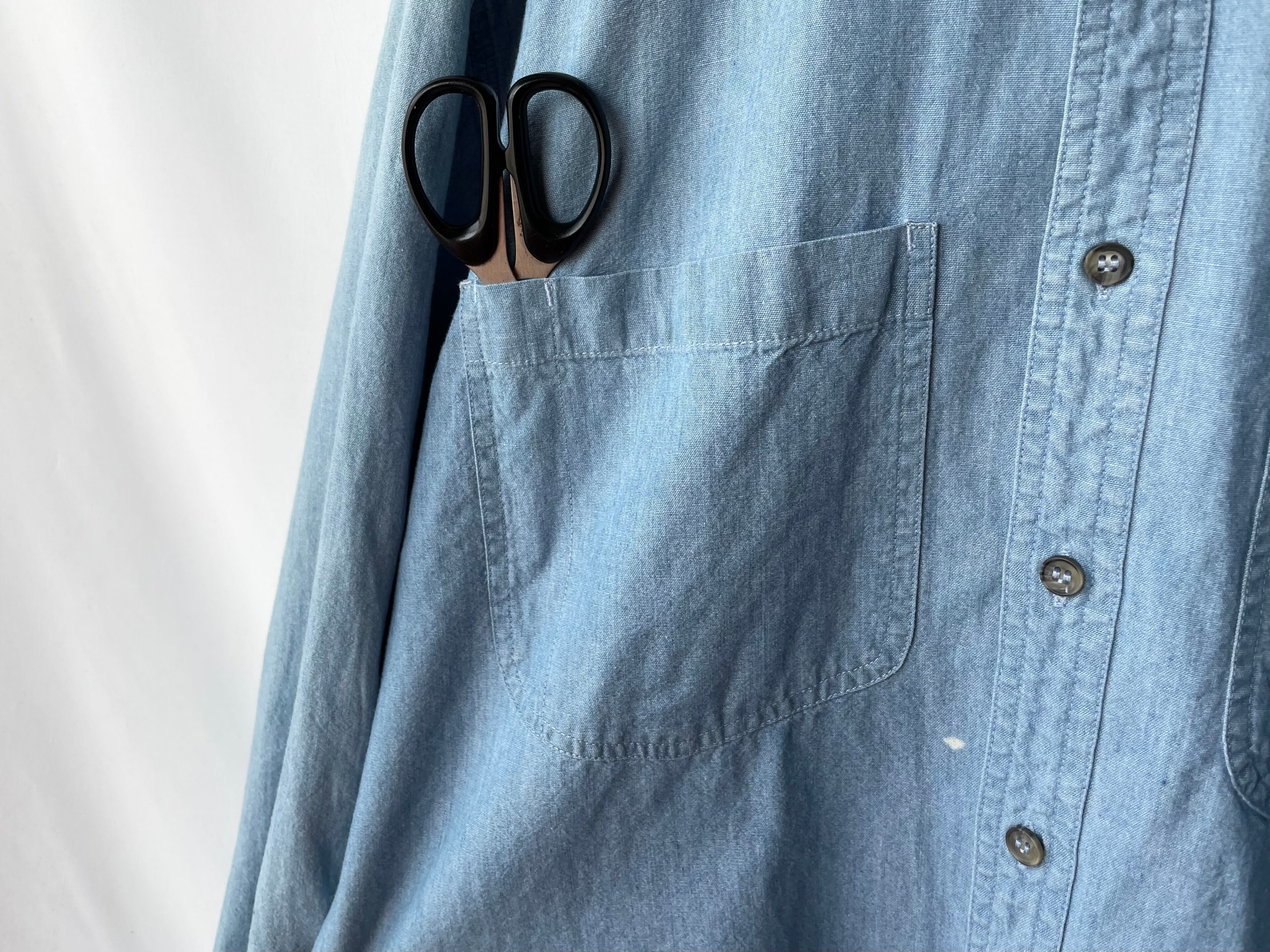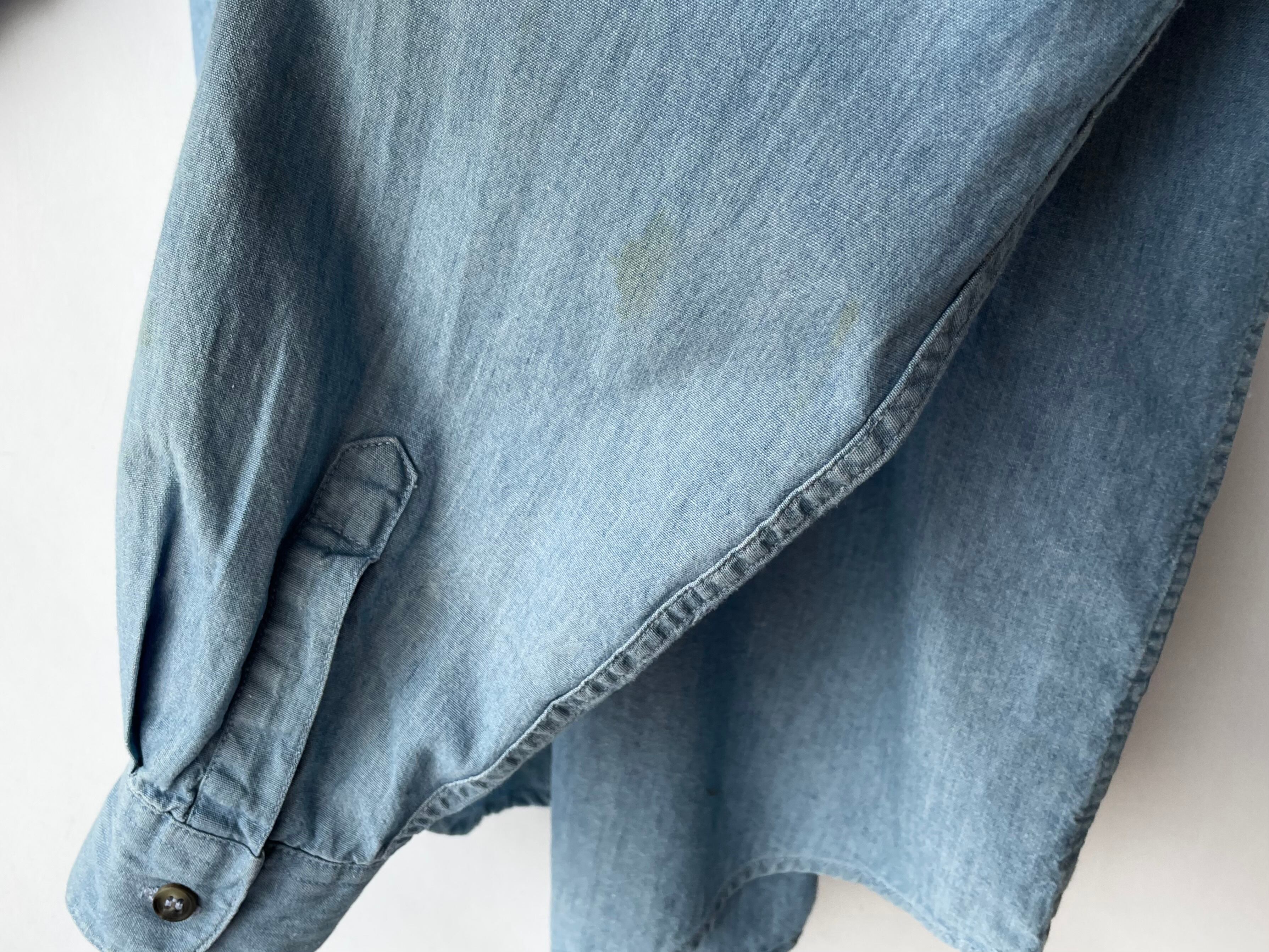 Cotton chambray body with a light blue color and a nice texture.