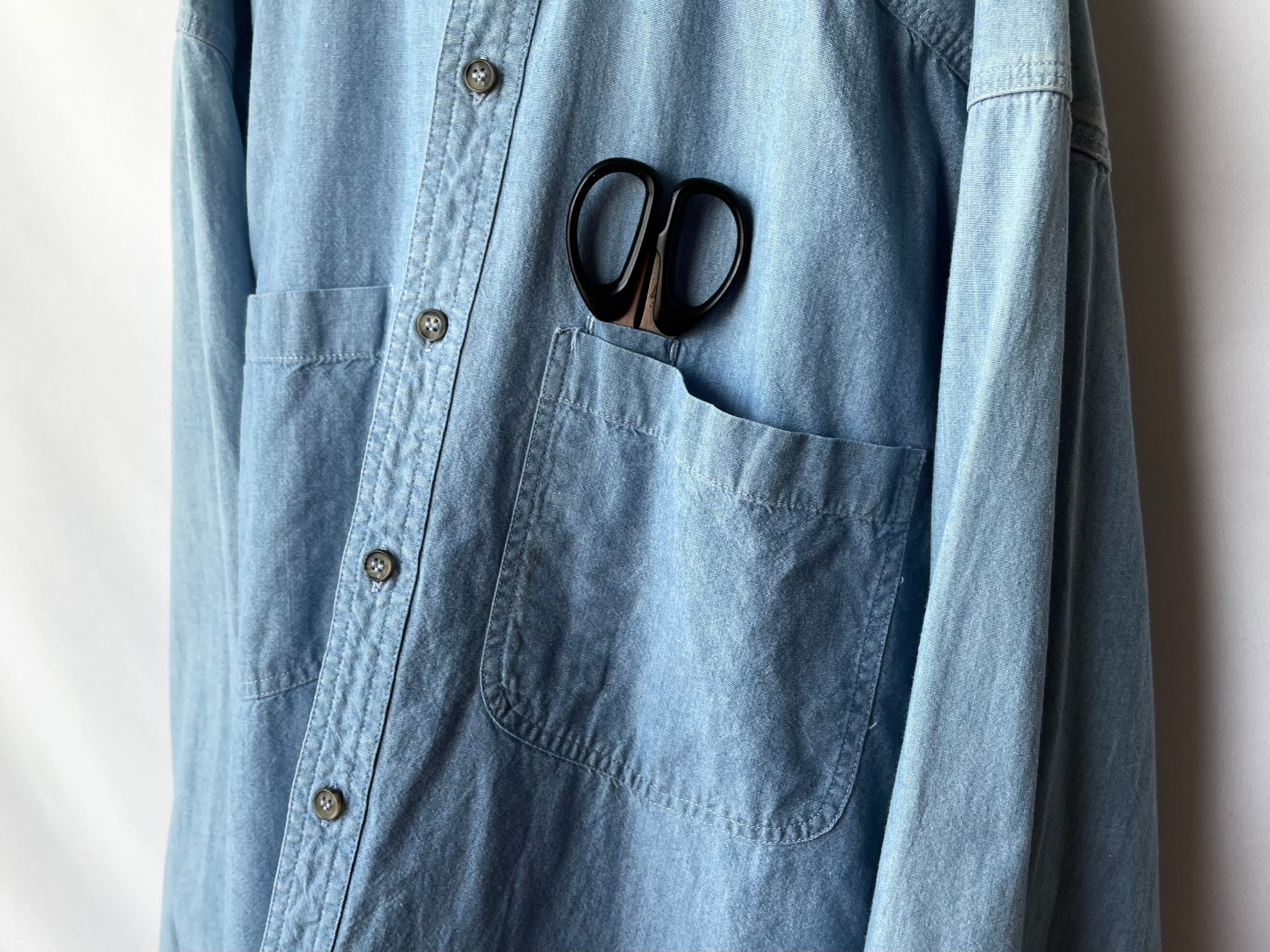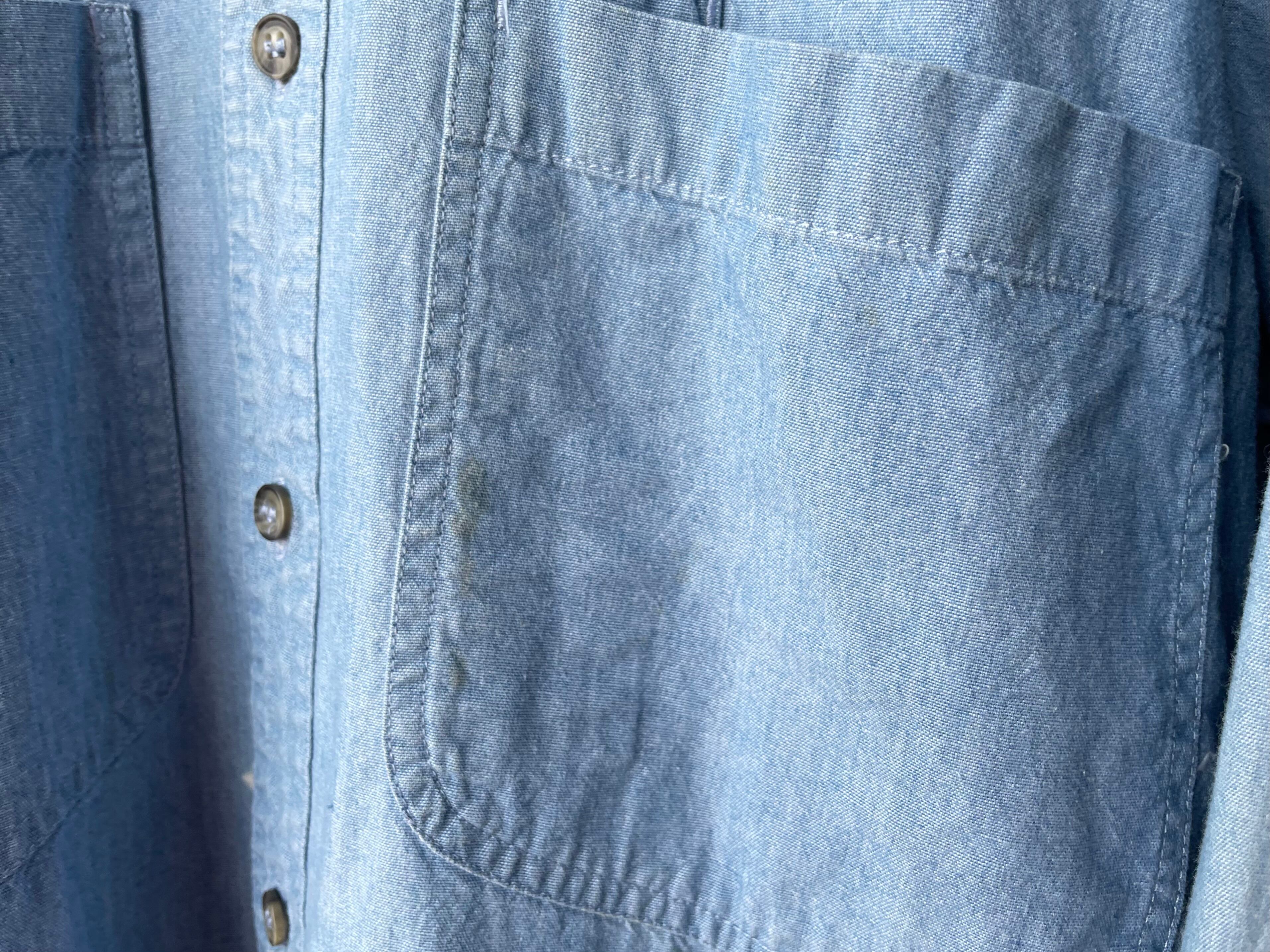 ライトブルーカラーの風合いの良いコットンシャンブレーボディ。