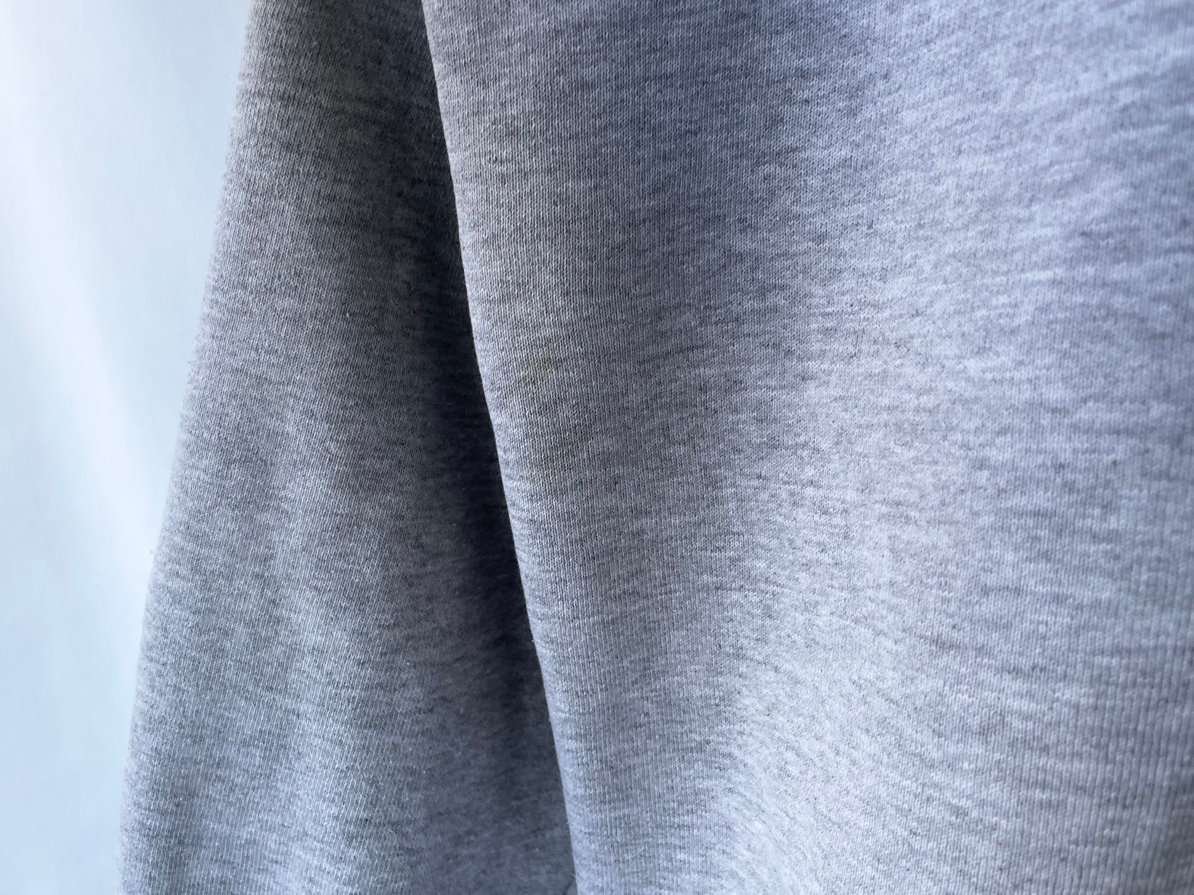 気の抜けた霜降りグレーボディに、胸元ワンポイントの小ぶりなロゴプリント。
