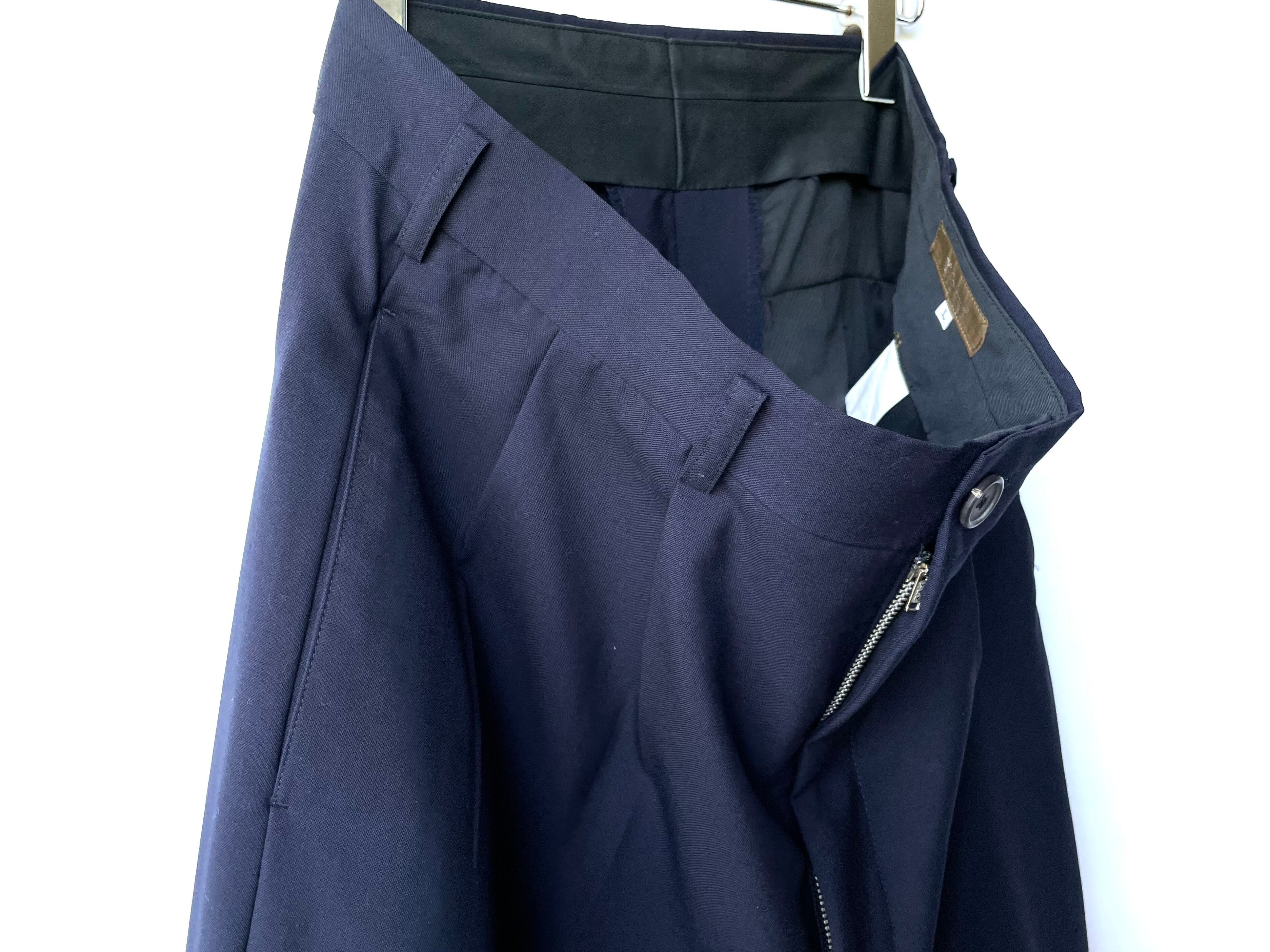 ボトムスは広い渡りから緩やかなテーパードがかかる、たっぷりワイドなシルエット。