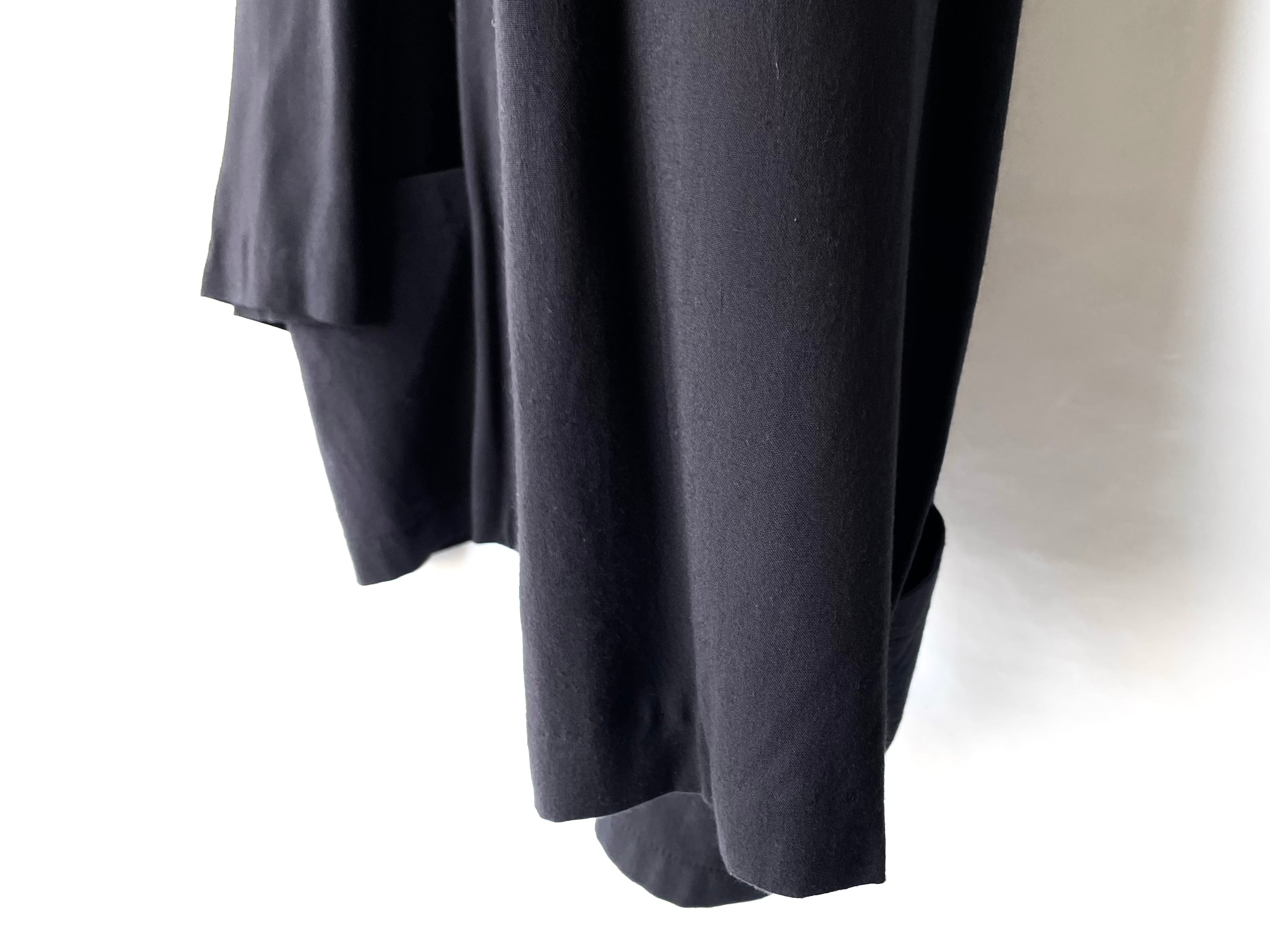 上質なブラックレーヨンで仕立てられた、カラーレスデザインの羽織りカバーオール。