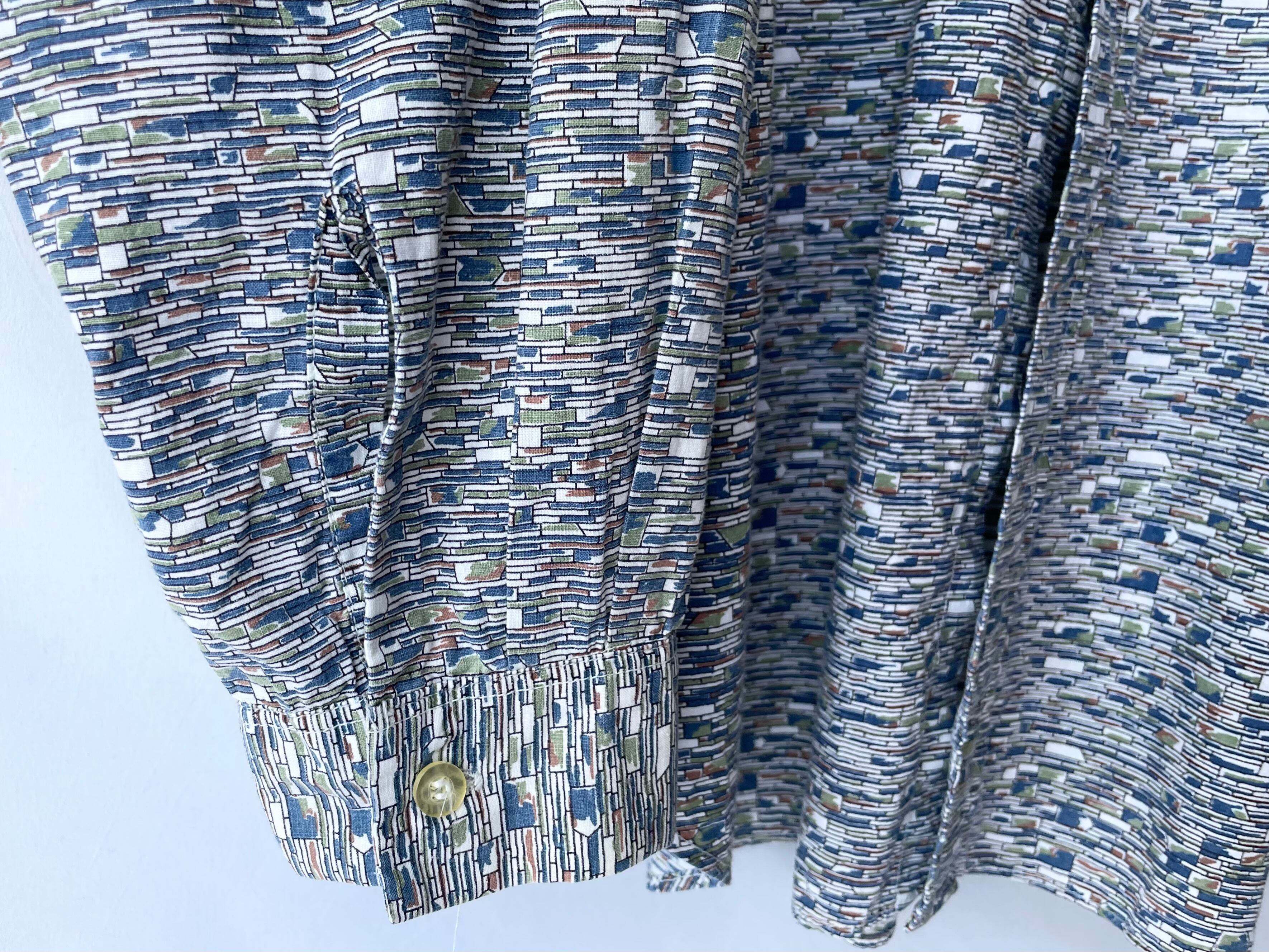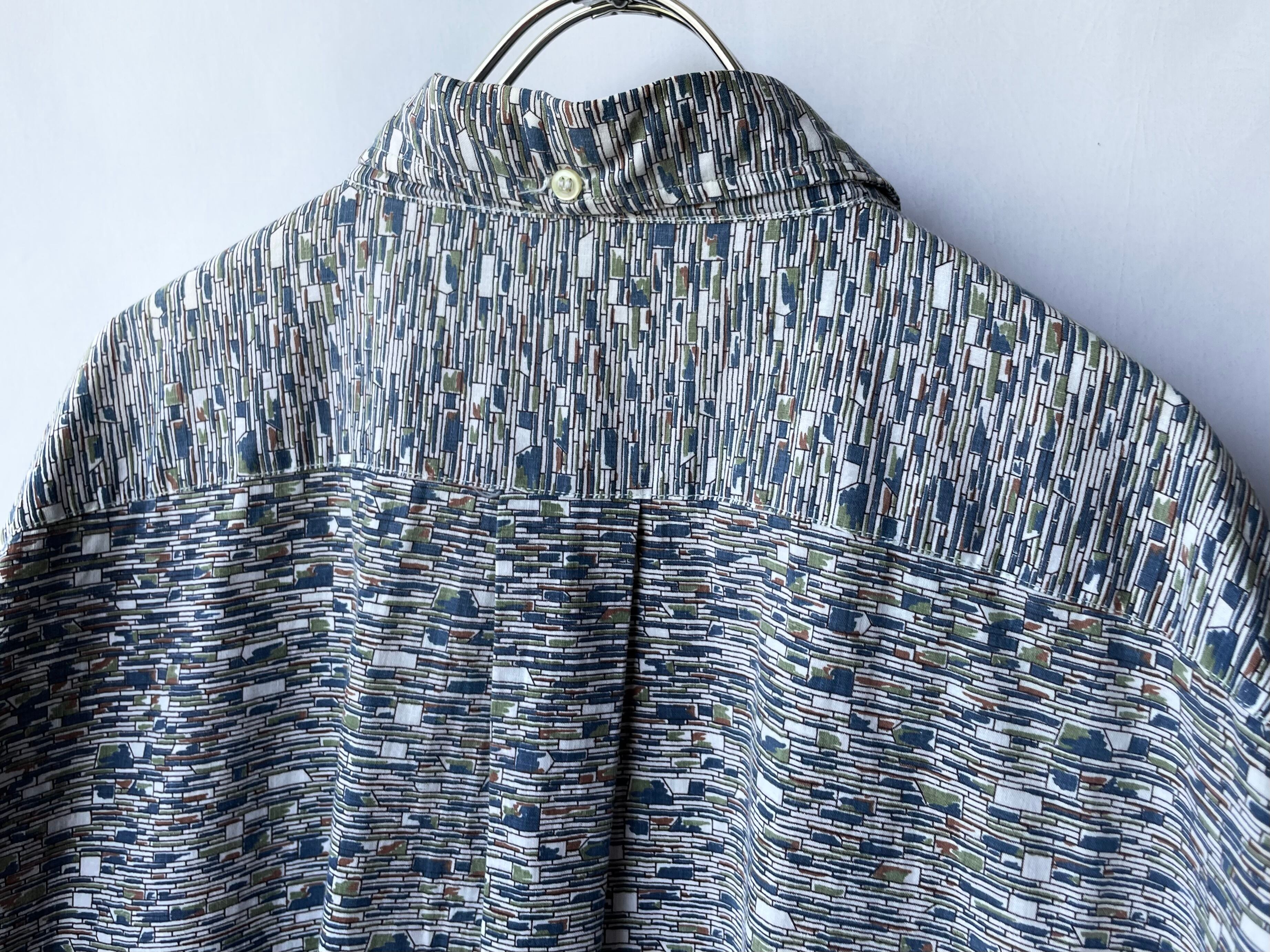 大小様々な長方形/台形が細かく積み上がった様な特徴的な総柄。