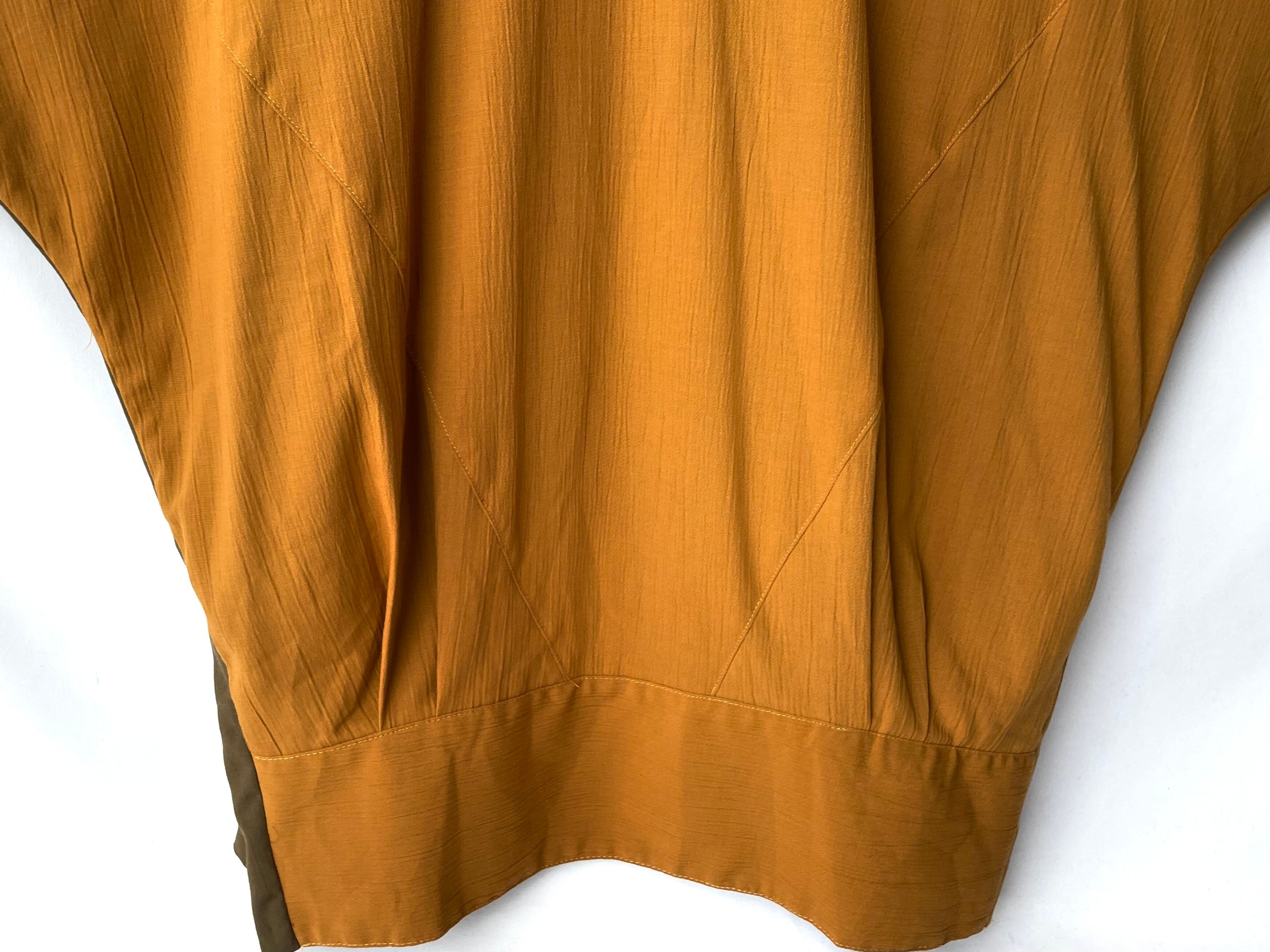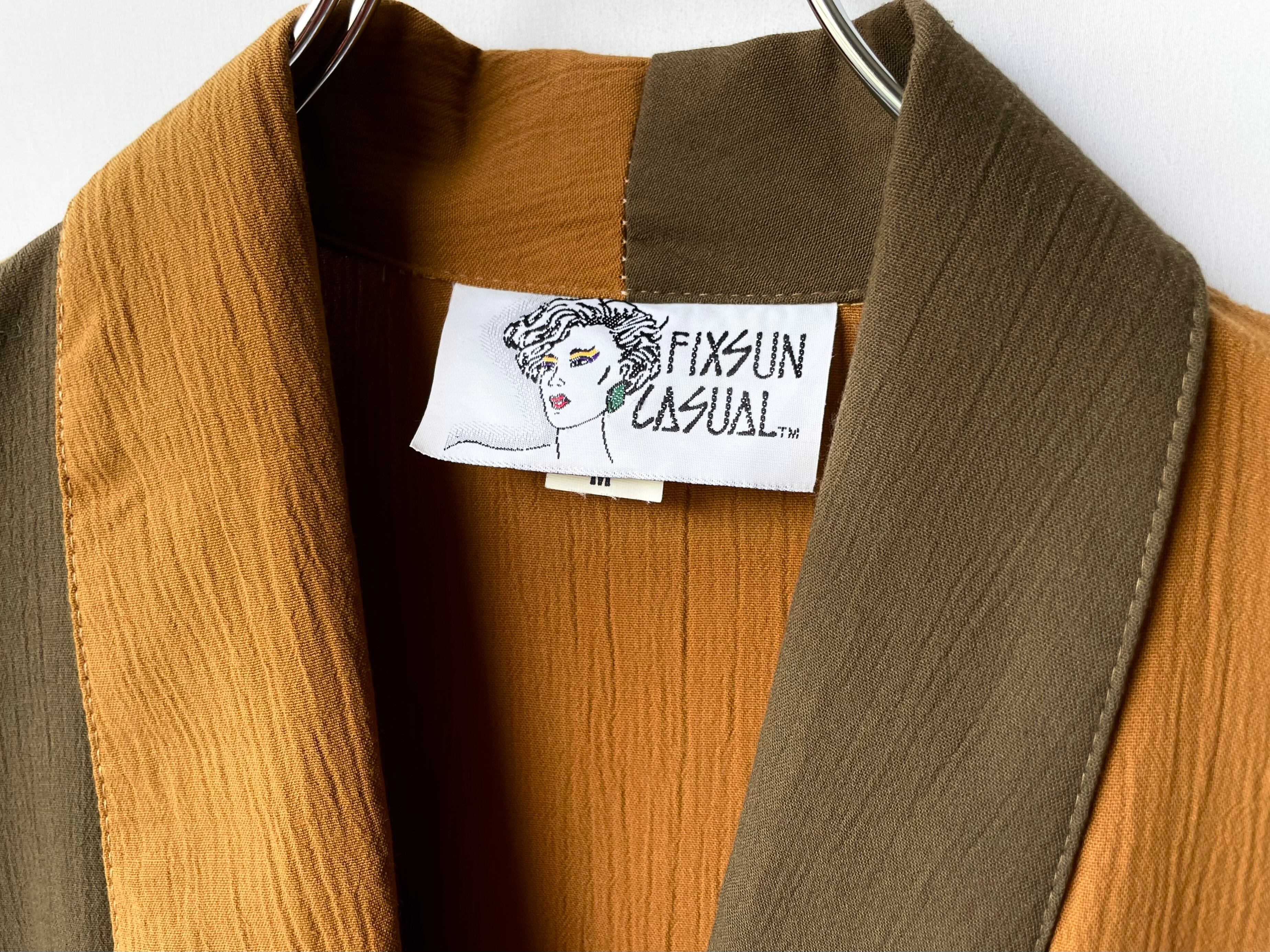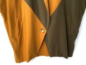 カーキオリーブ×マスタードブラウンの左右非対称の切り替えデザイン。