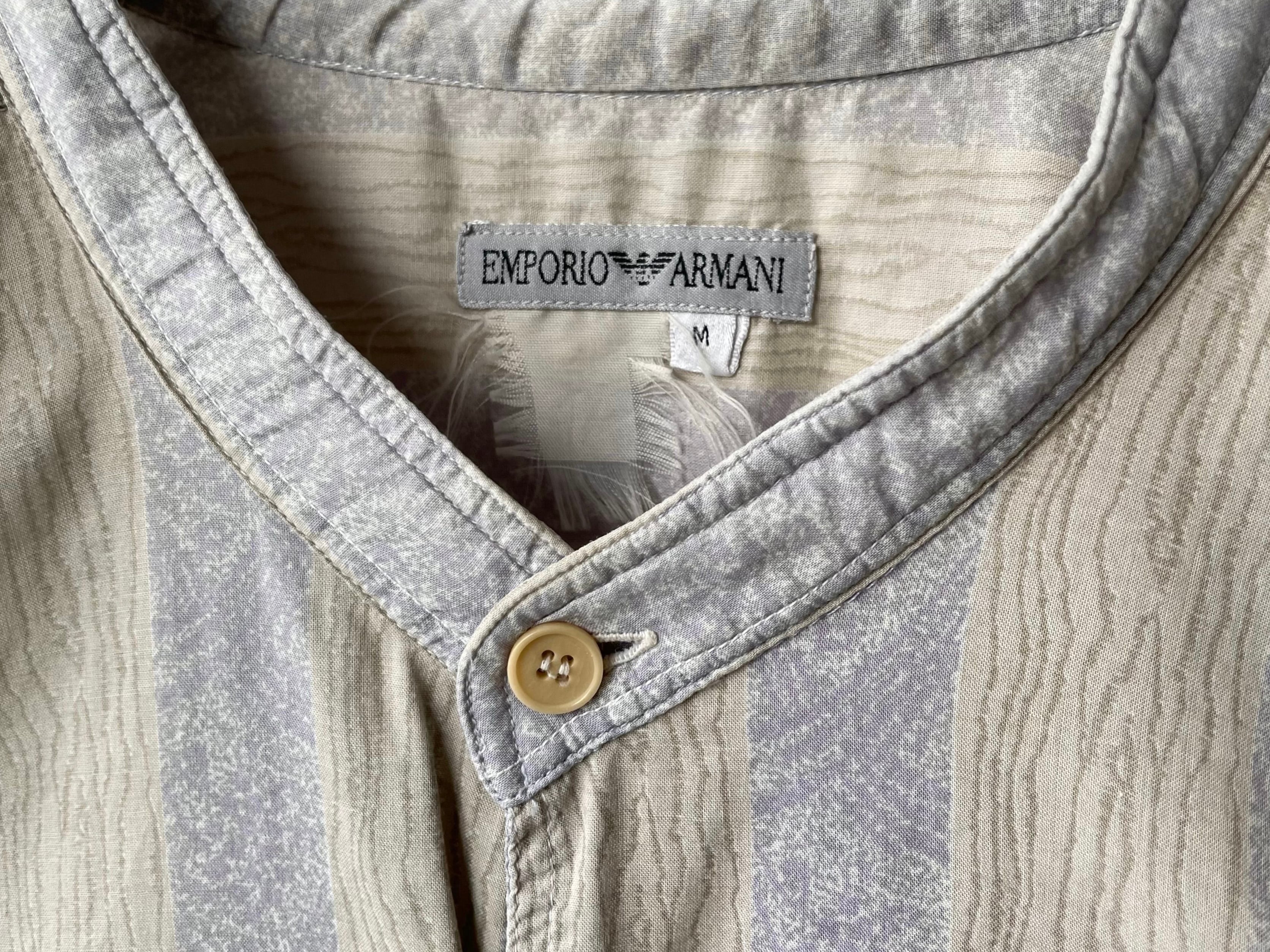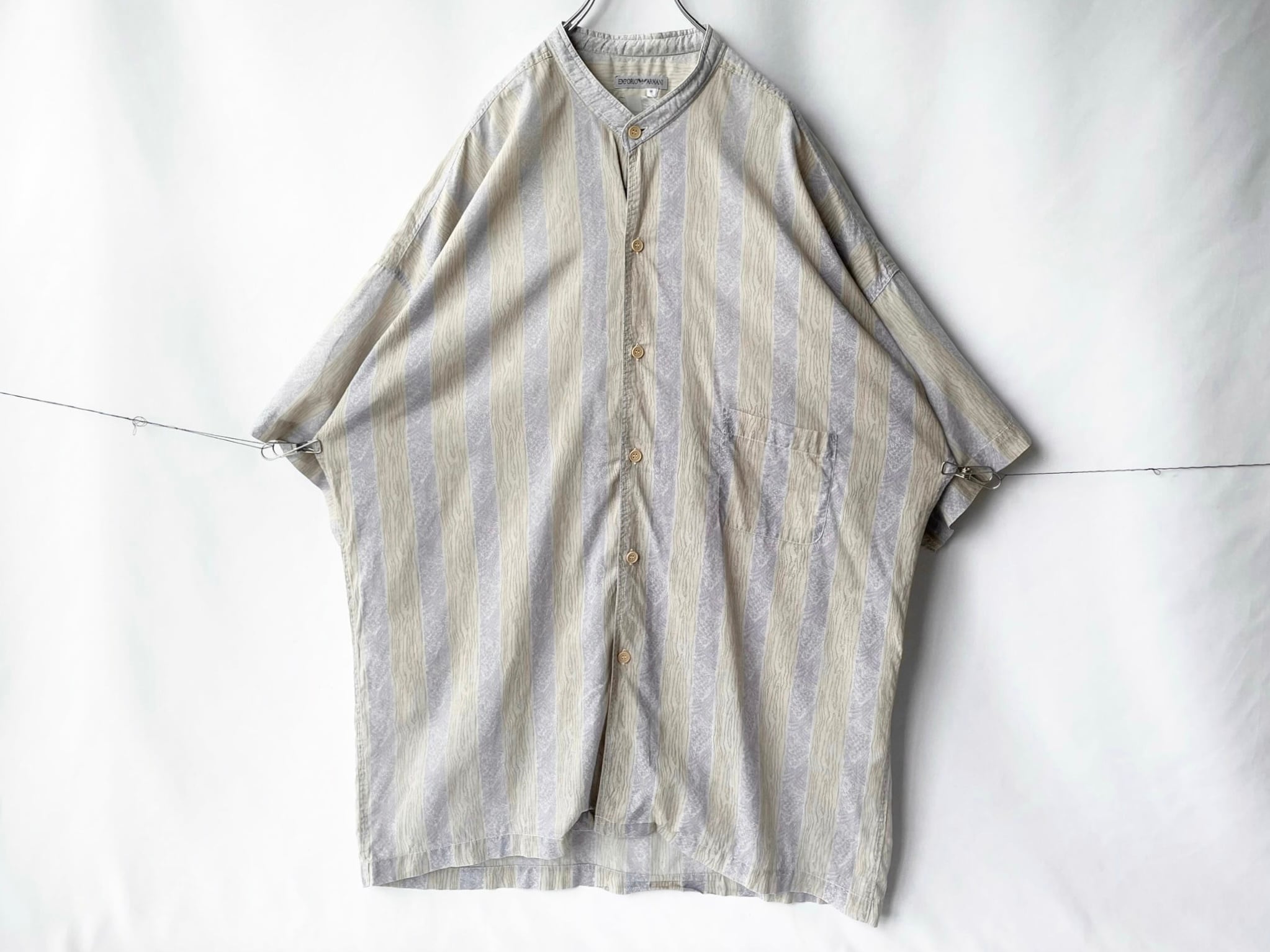 肥大化した寸法においての癖のないカラーレス、通常のシャツサイズ以下の小ぶりな腹部ポケット。