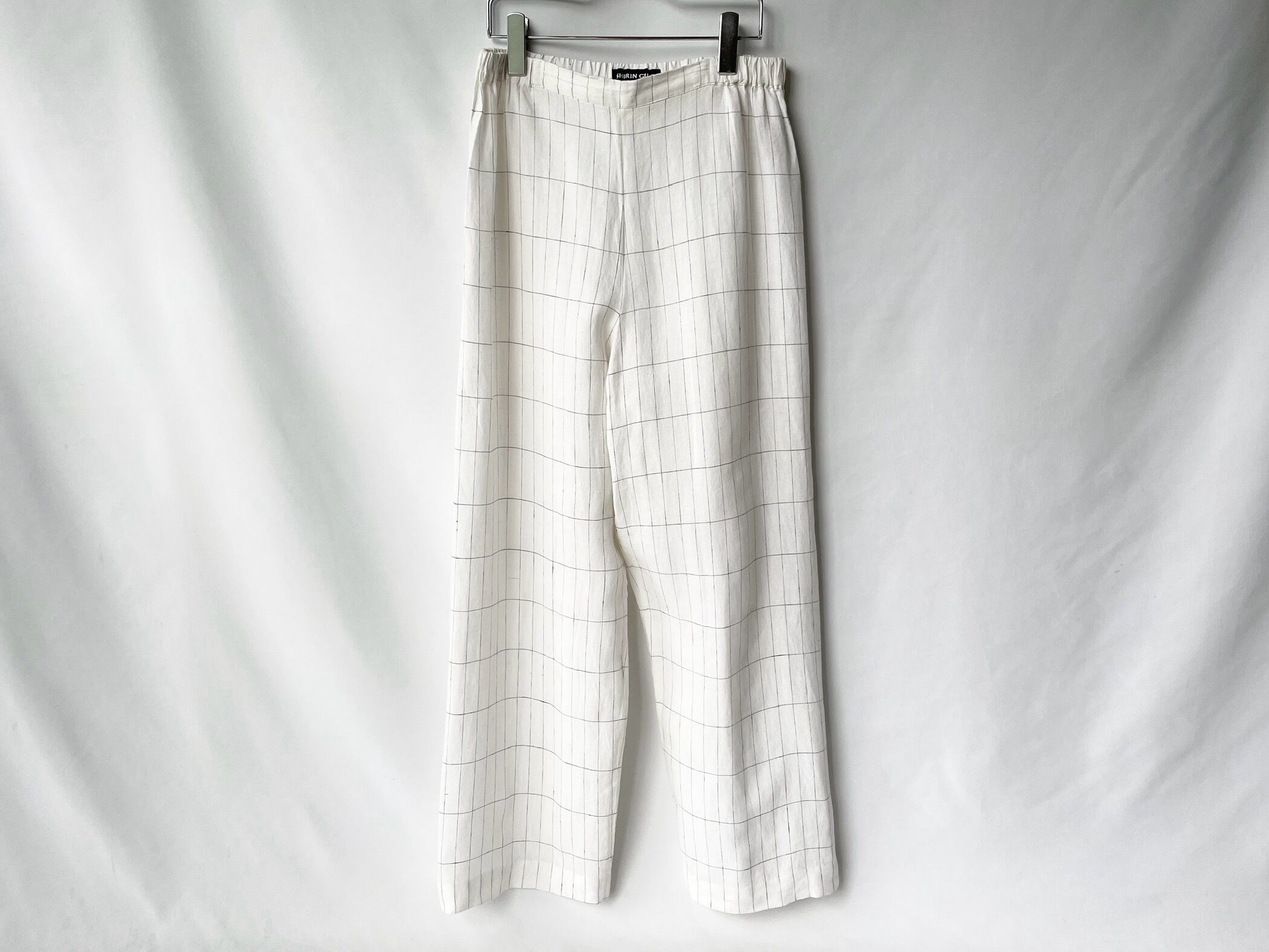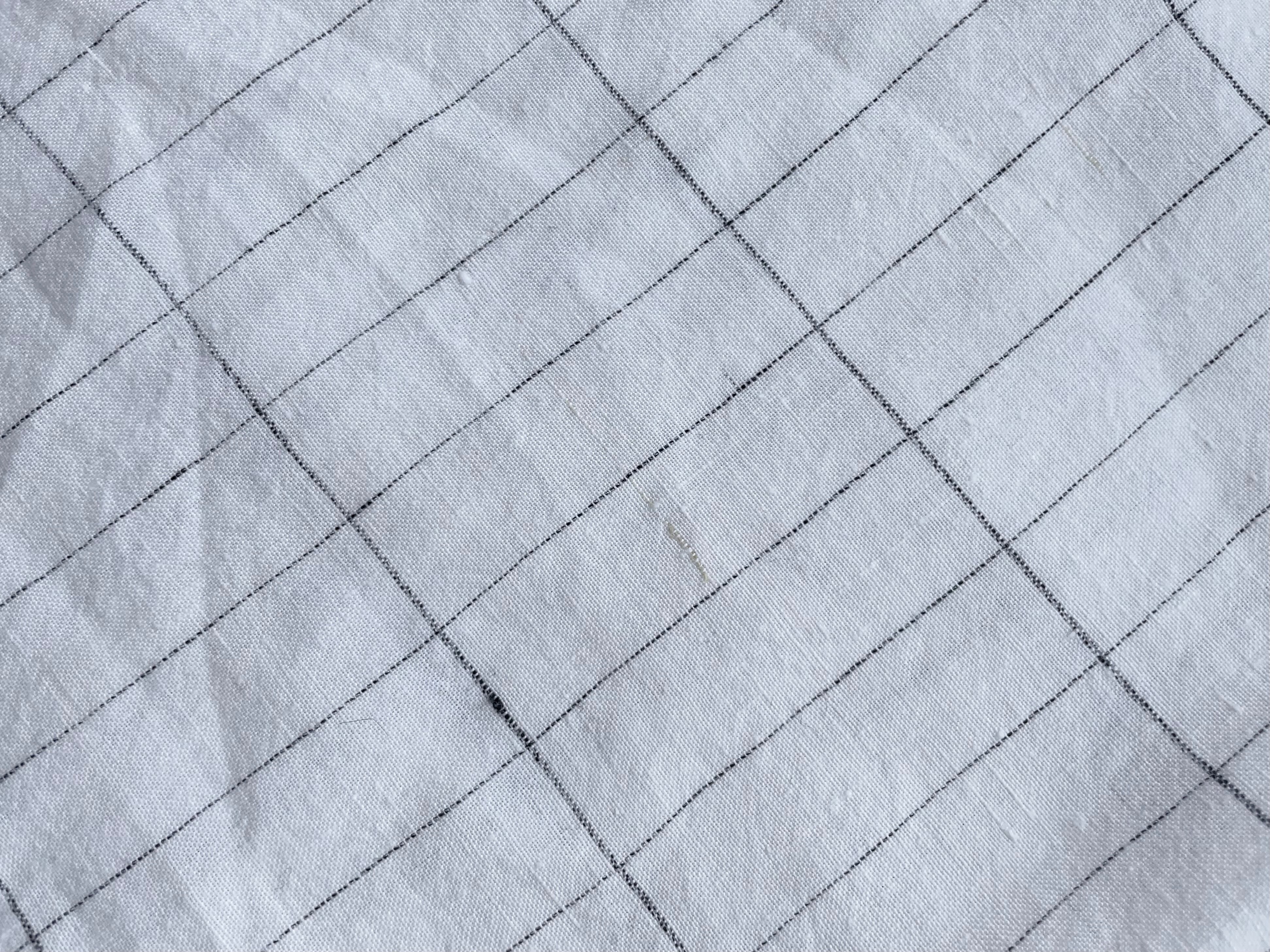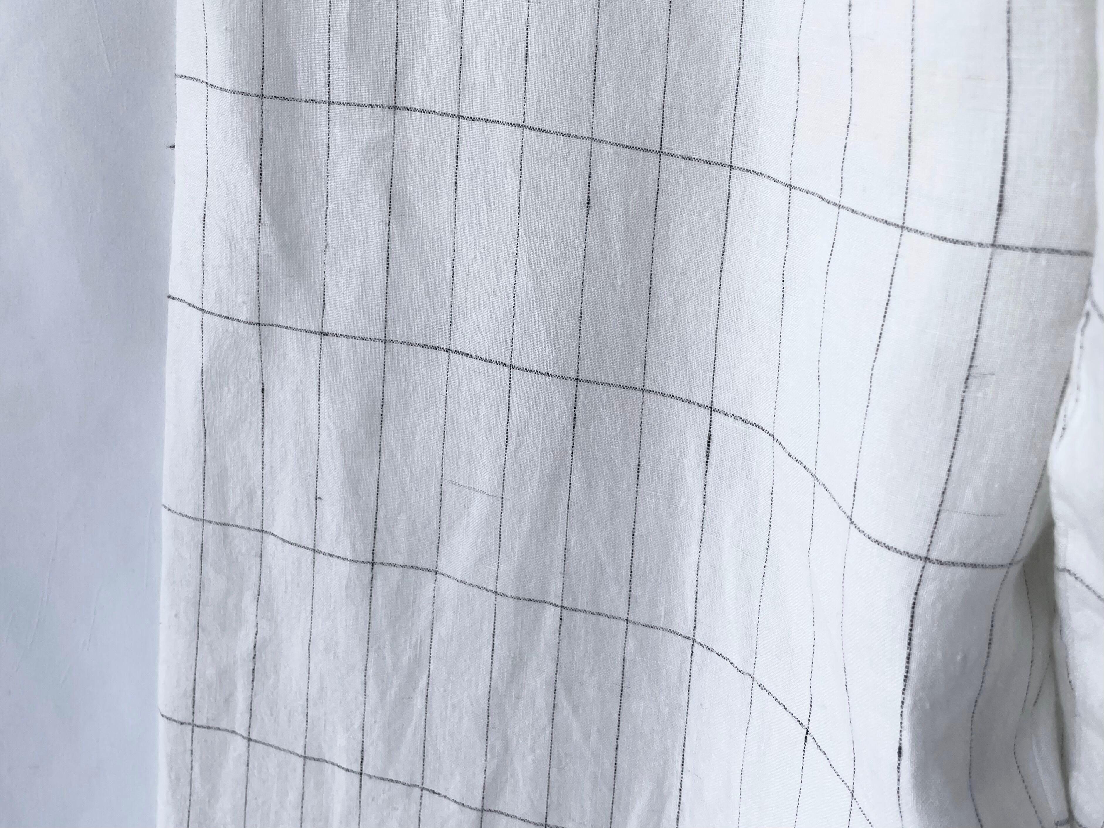 白地に淡いチャコールの糸が乗った繊細な格子柄。
