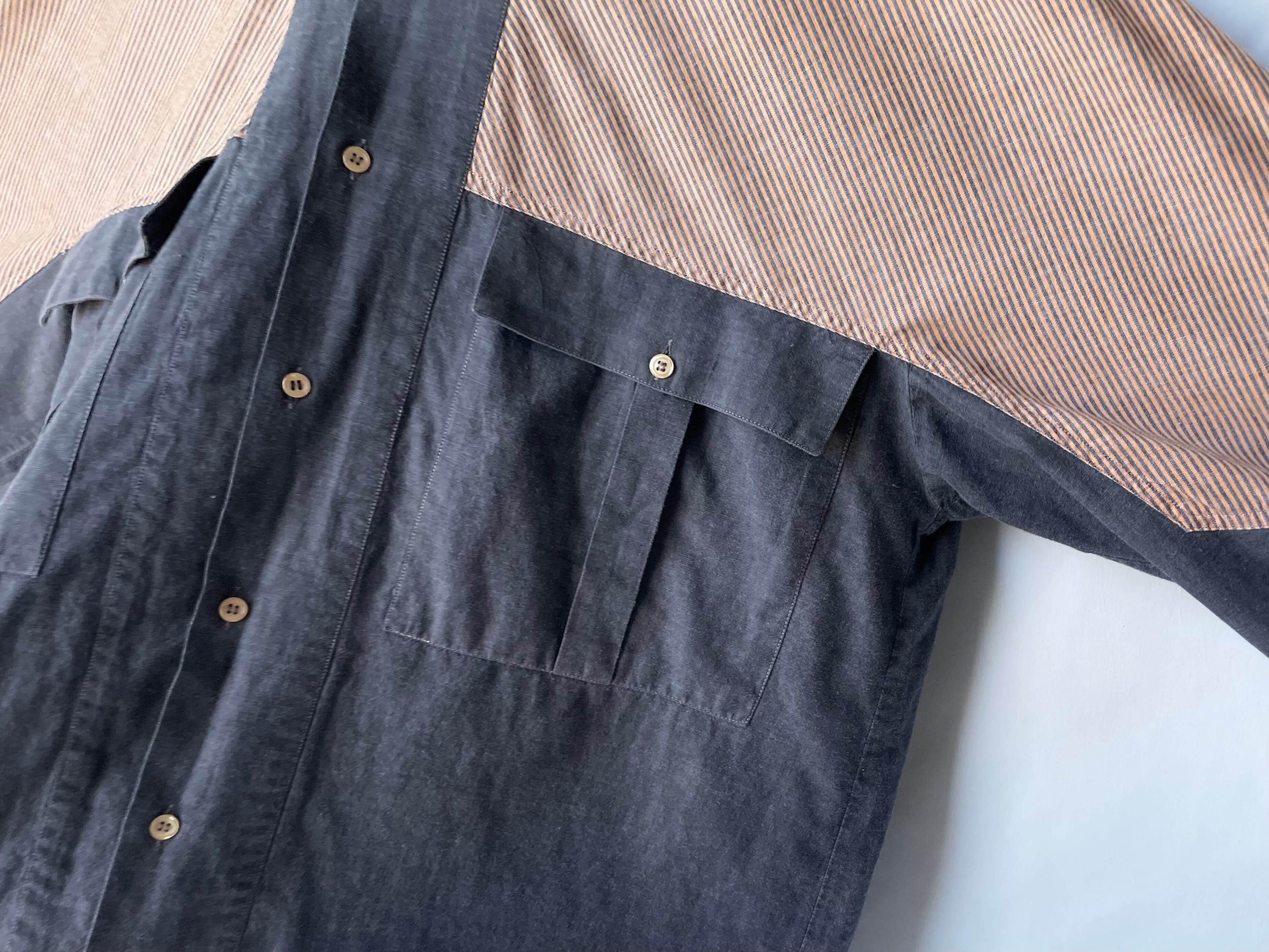 袖先はツインカフス、ボタンフラップが付く大判なチェストポケット。