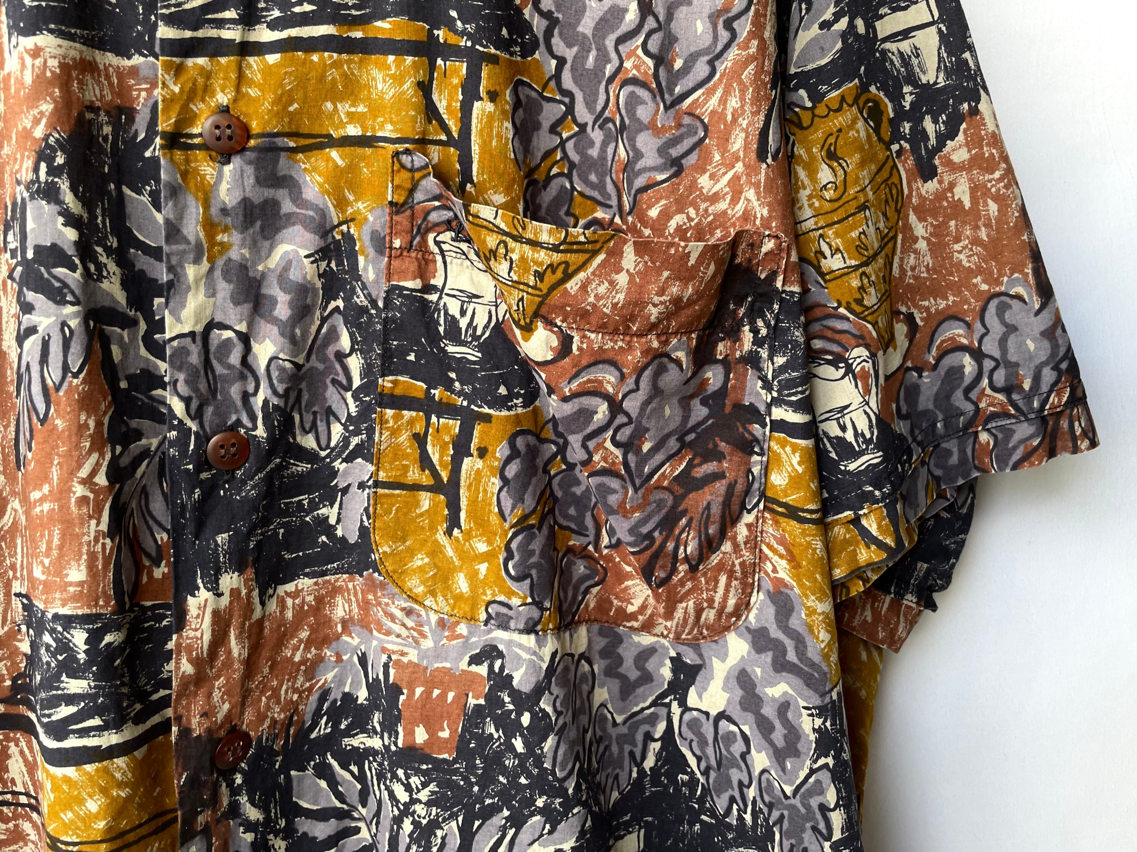 上質なフランス製生地を使用した、絵画の様なモチーフのハーフスリーブシャツ。