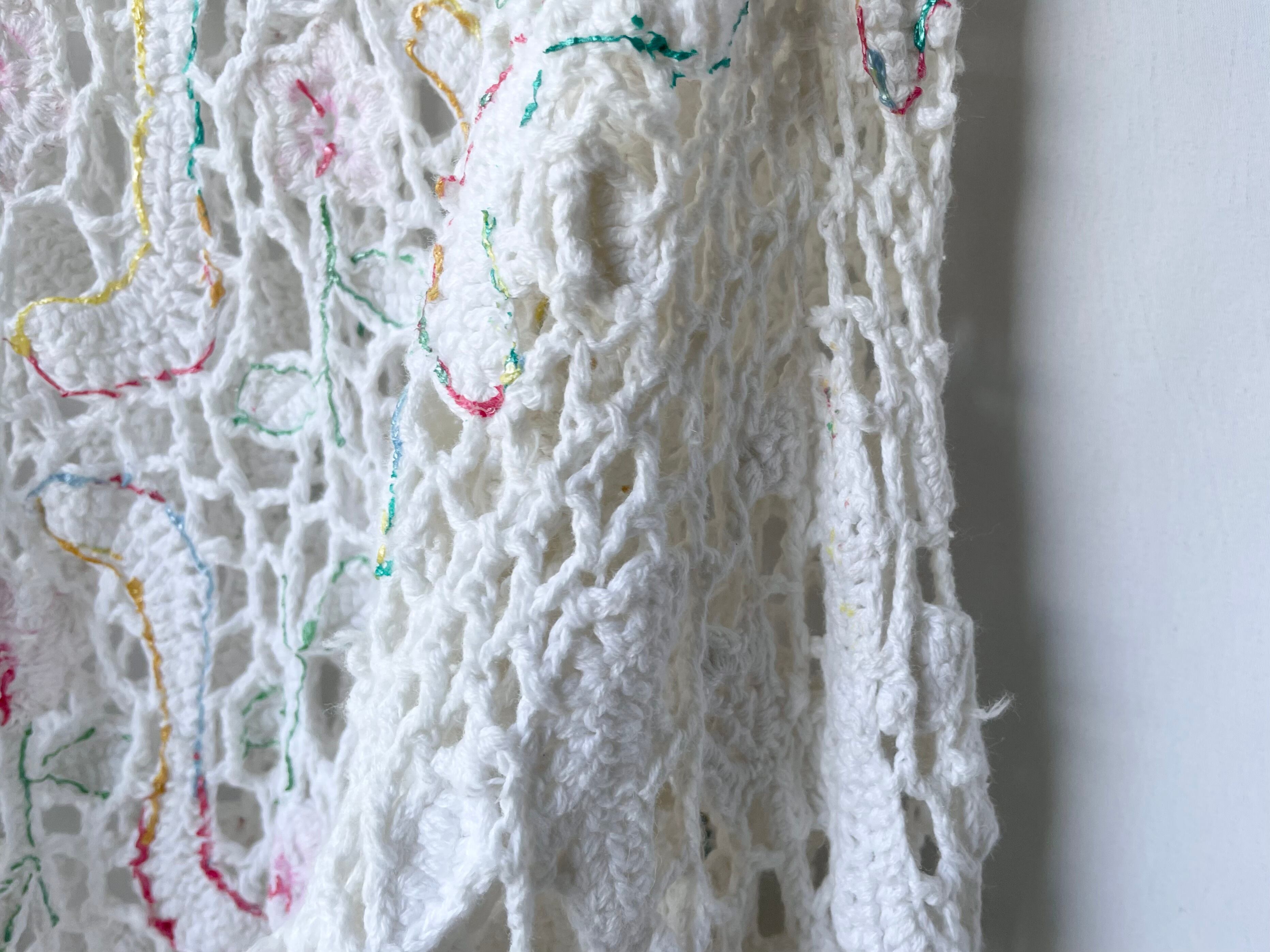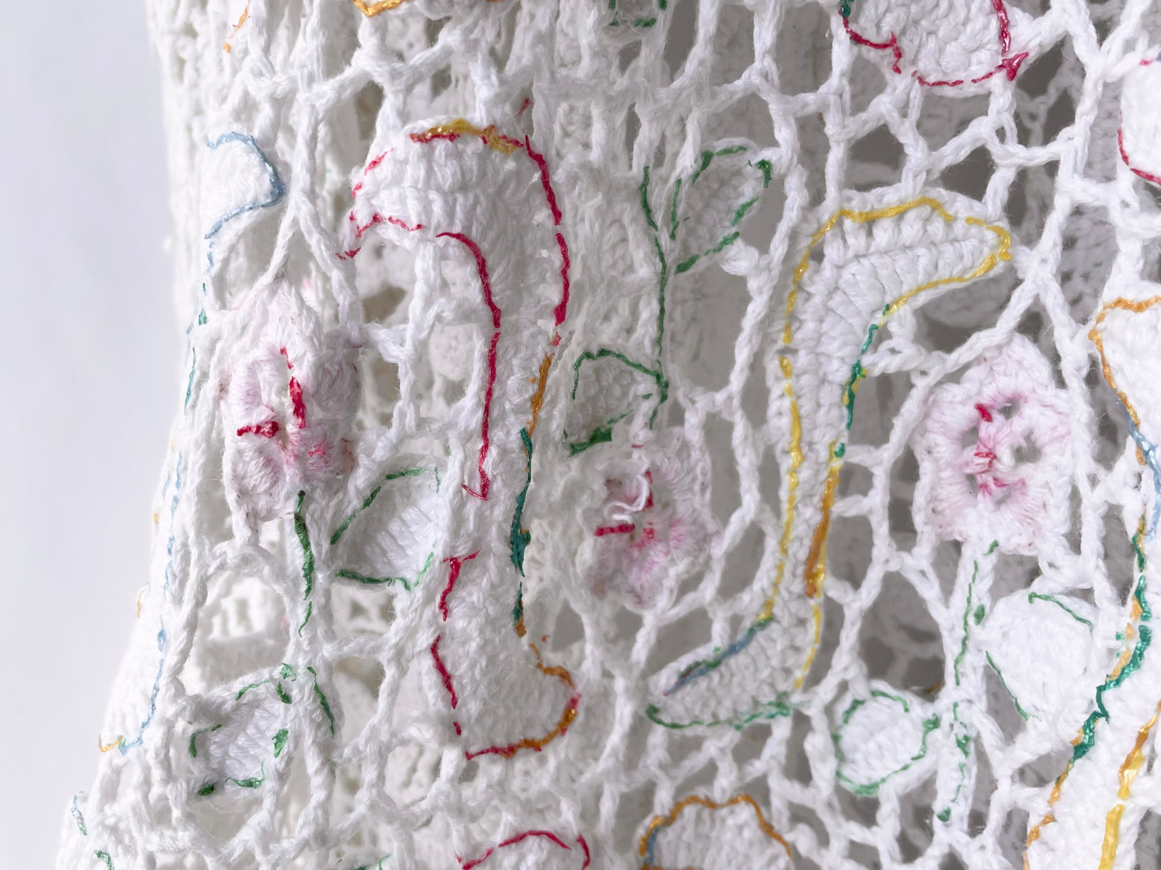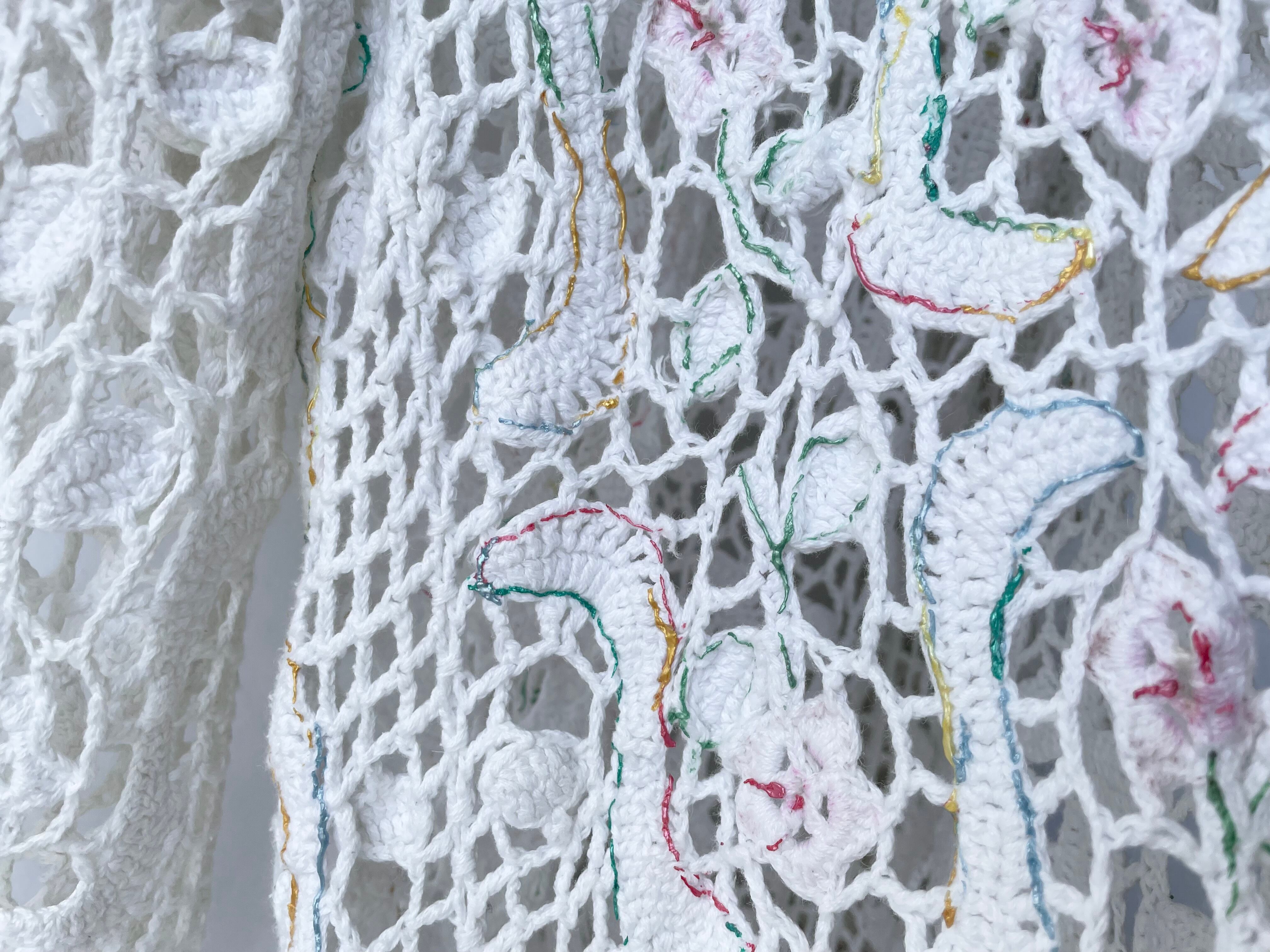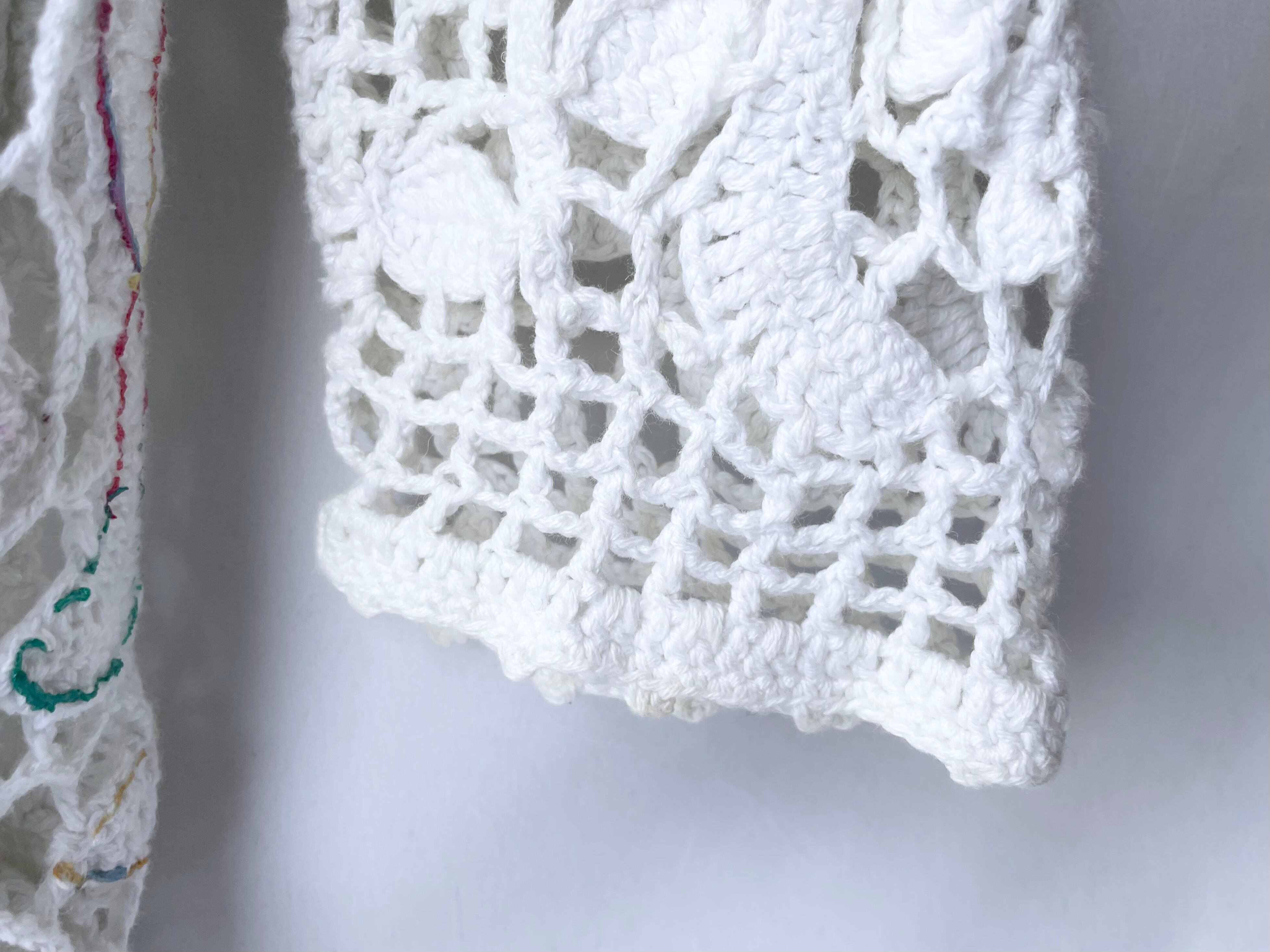 Solid white crochet made of high-quality ramie cotton that is soft to the touch.