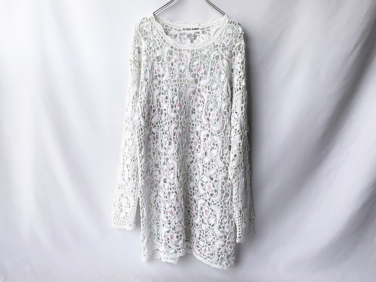 柔らかな手触り、上質なラミー/コットンが使用された白単色のクロシェ編み。