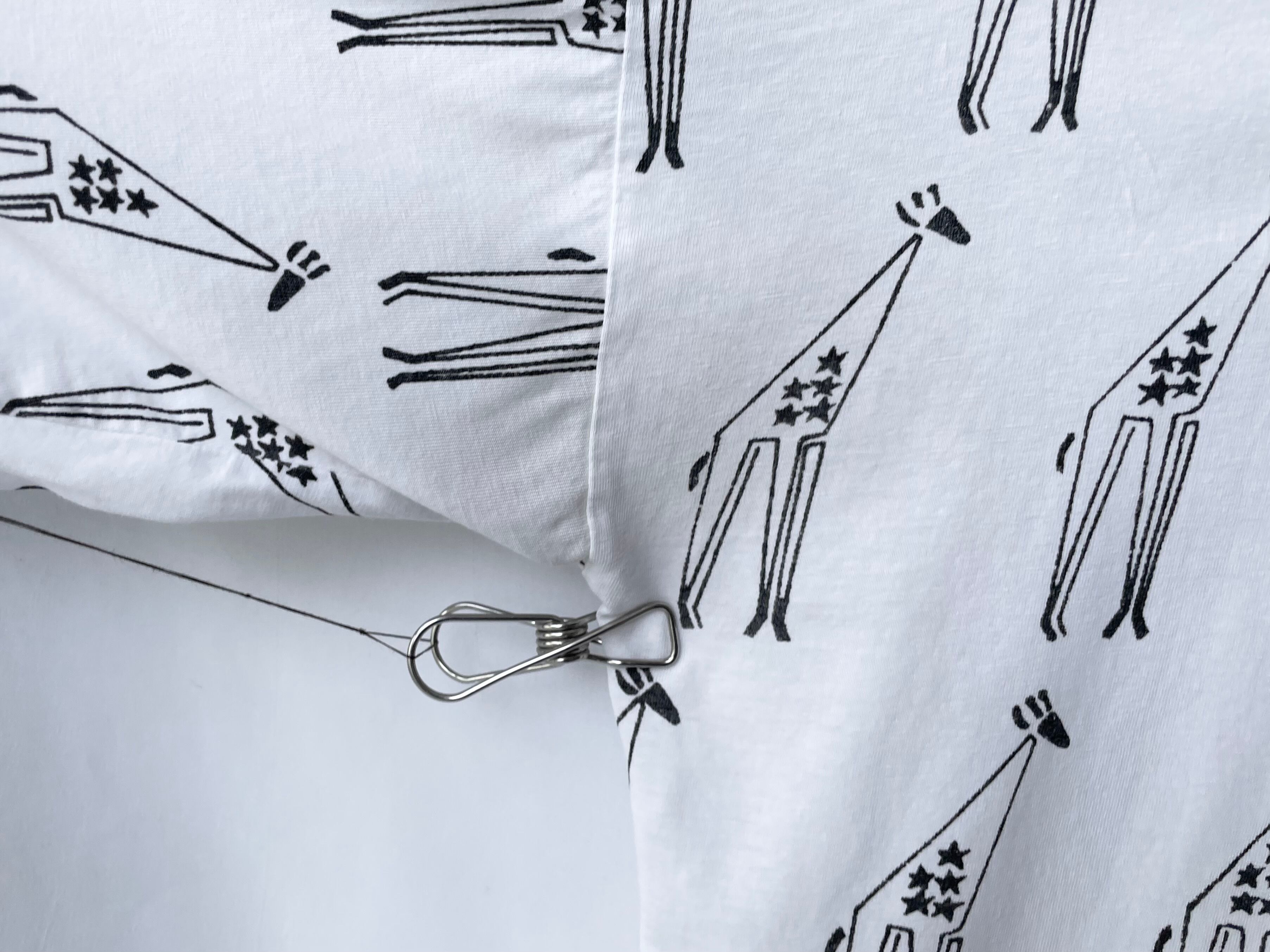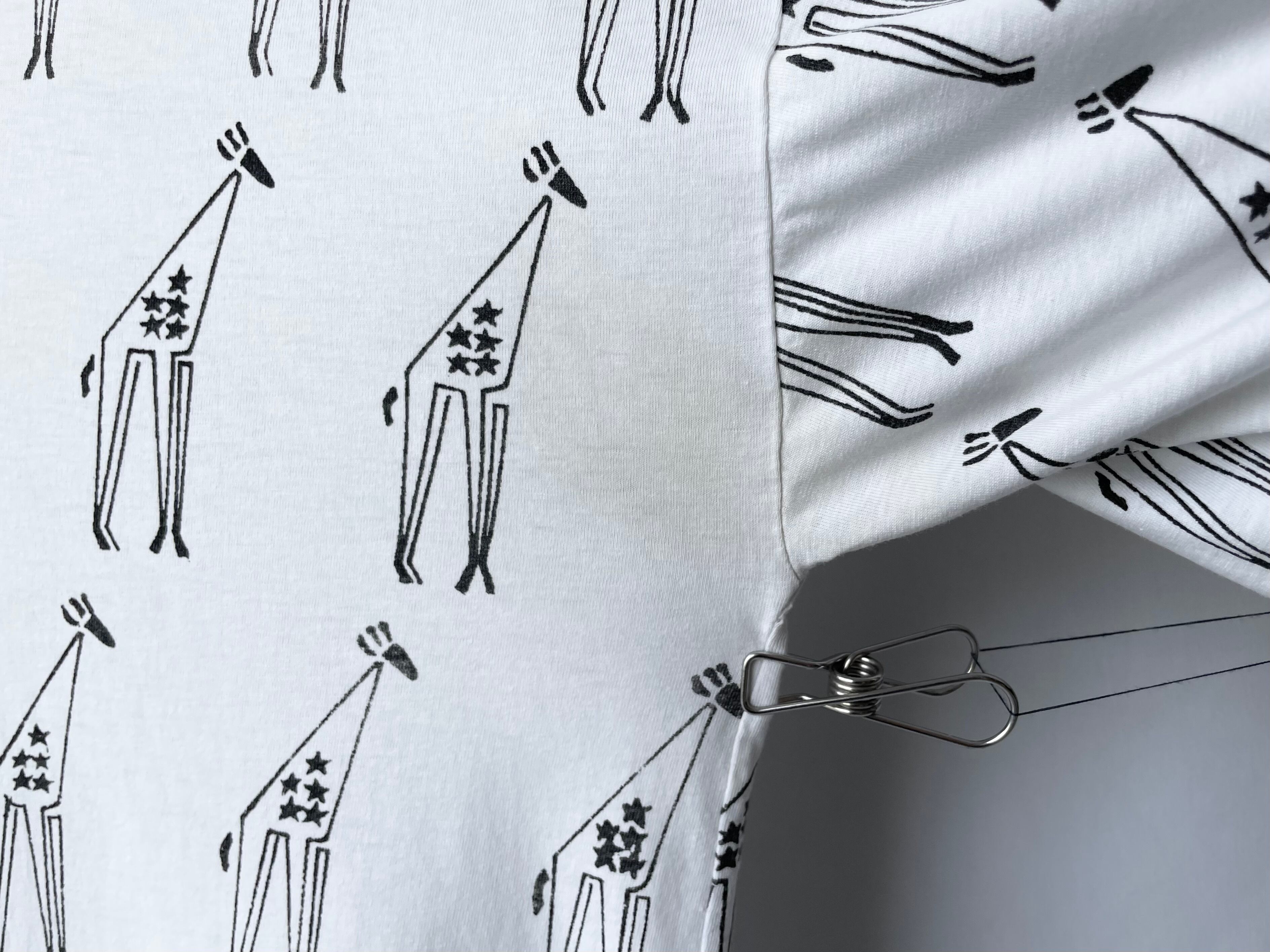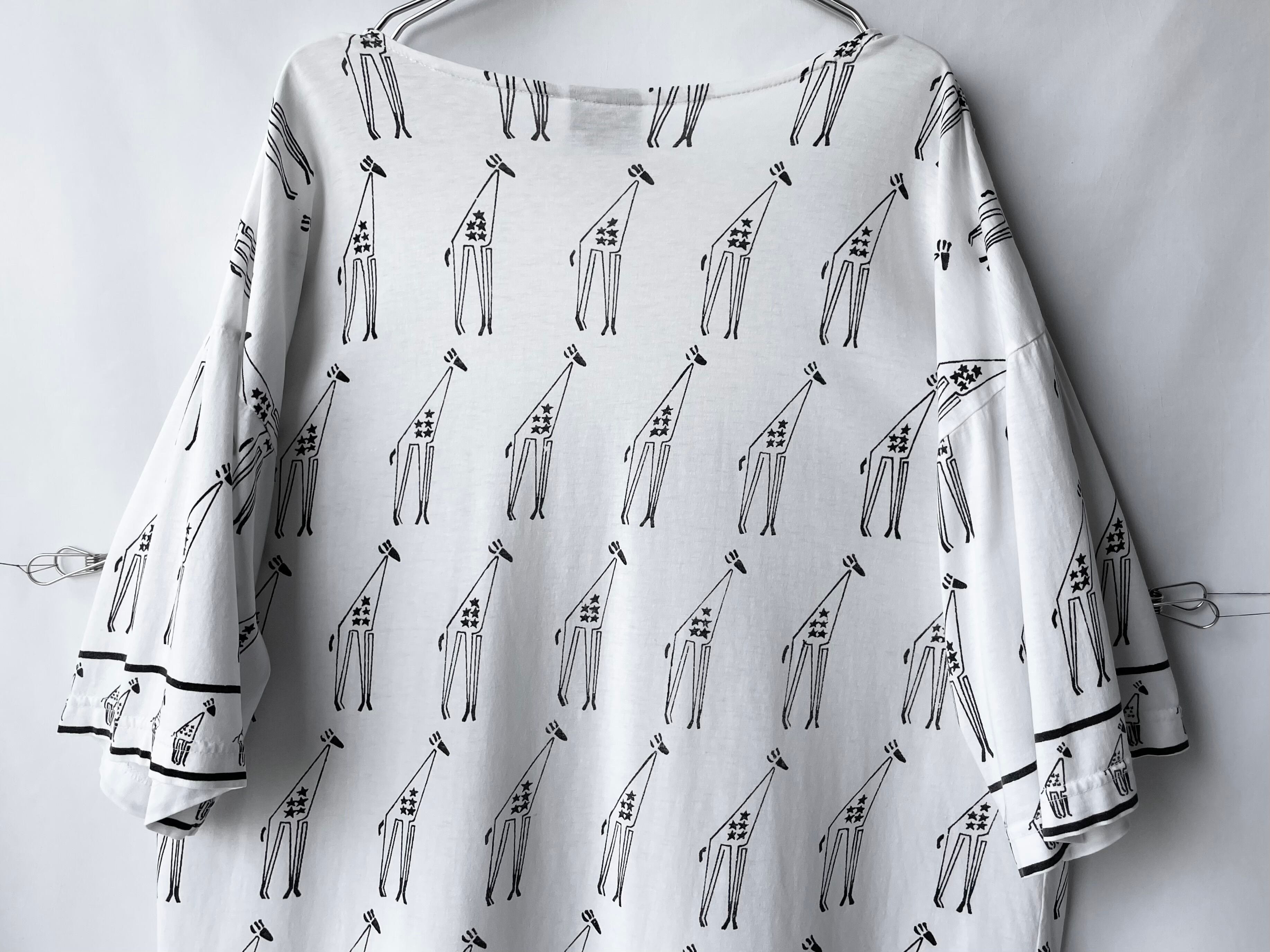 キリンが一面に並んだ、絵本の様な可愛らしさも感じるプリントデザイン。