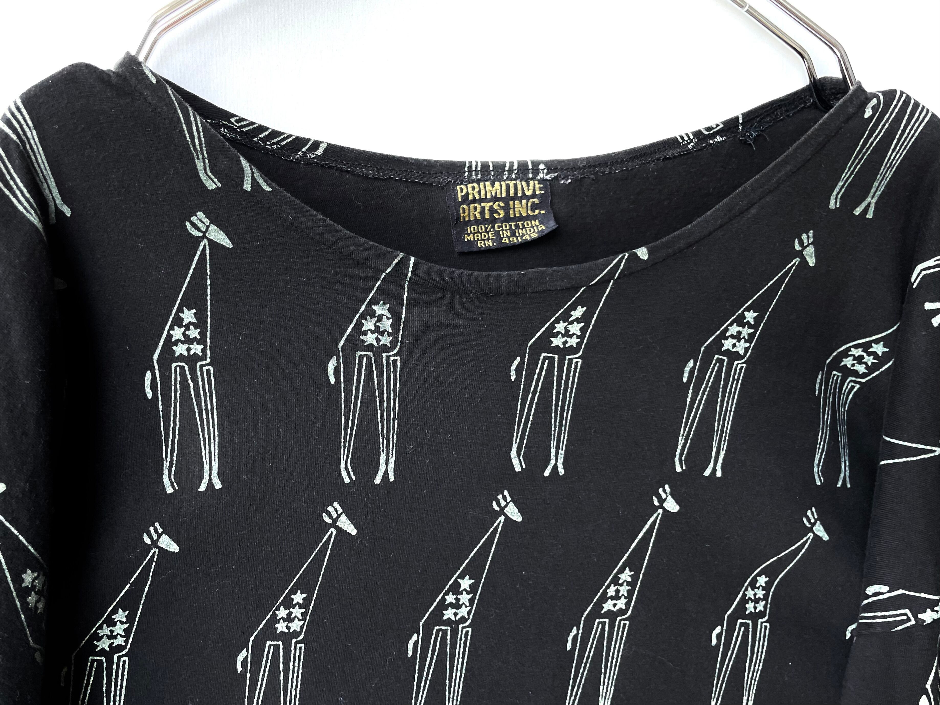 キリンが一面に並んだ、絵本の様な可愛らしさも感じるプリントデザイン。