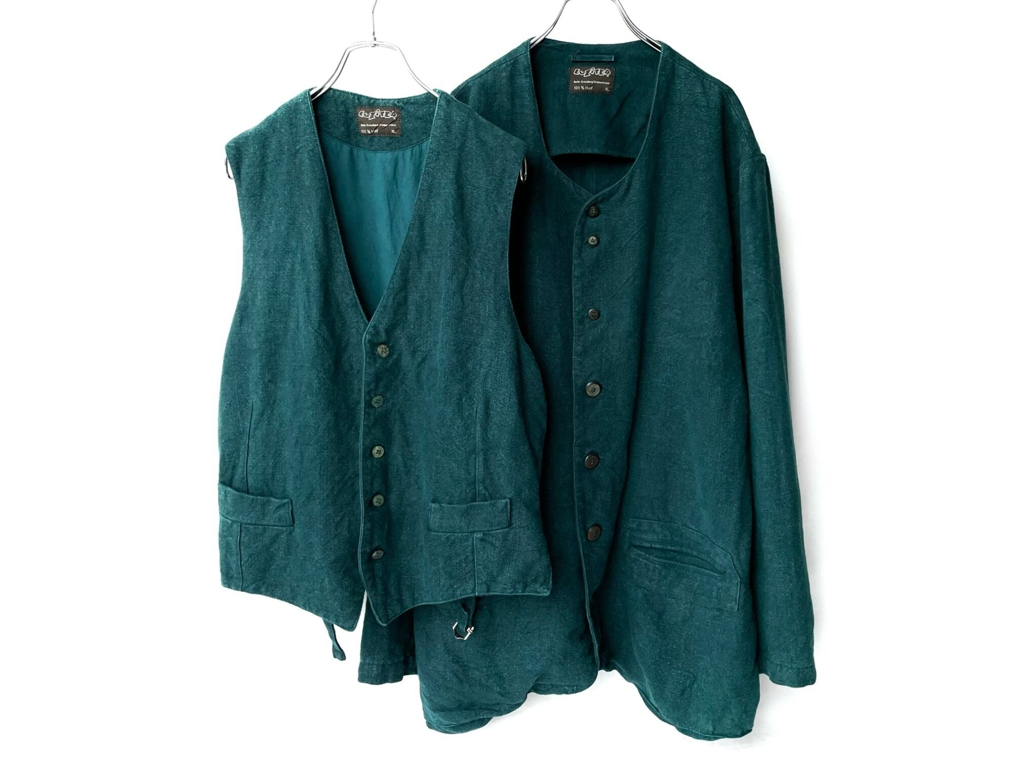 ジレ/ジャケット共にたっぷりと余白のあるXL表記のゆったりサイズ。