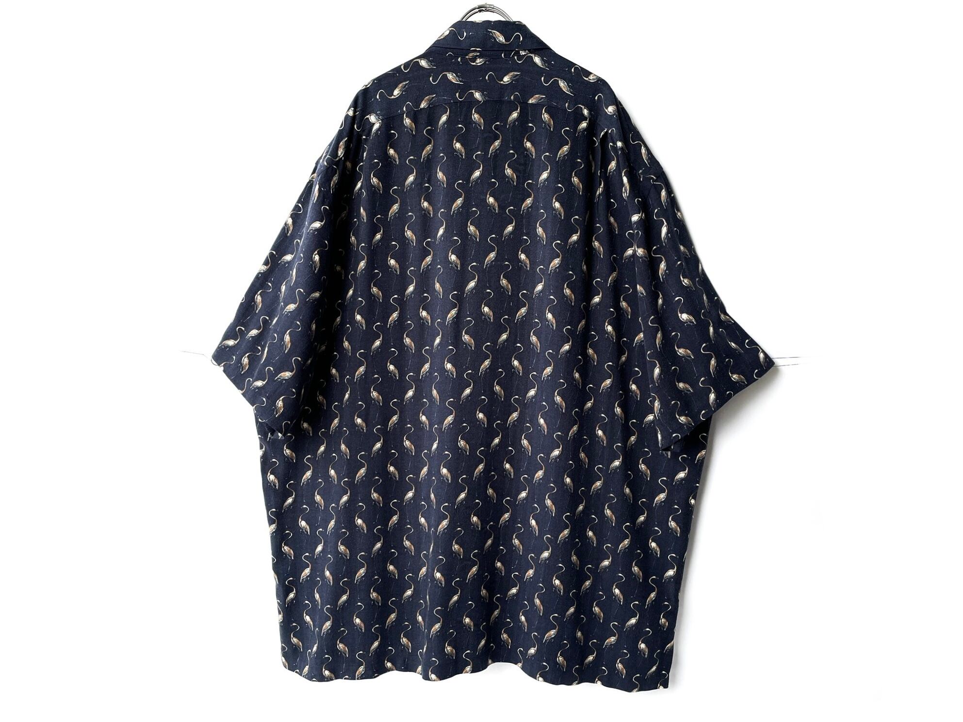 片足を上げたフラミンゴがずらりと並ぶ、ユニークな総柄モチーフ。