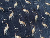 A unique all-over motif featuring a row of flamingos with one leg raised.