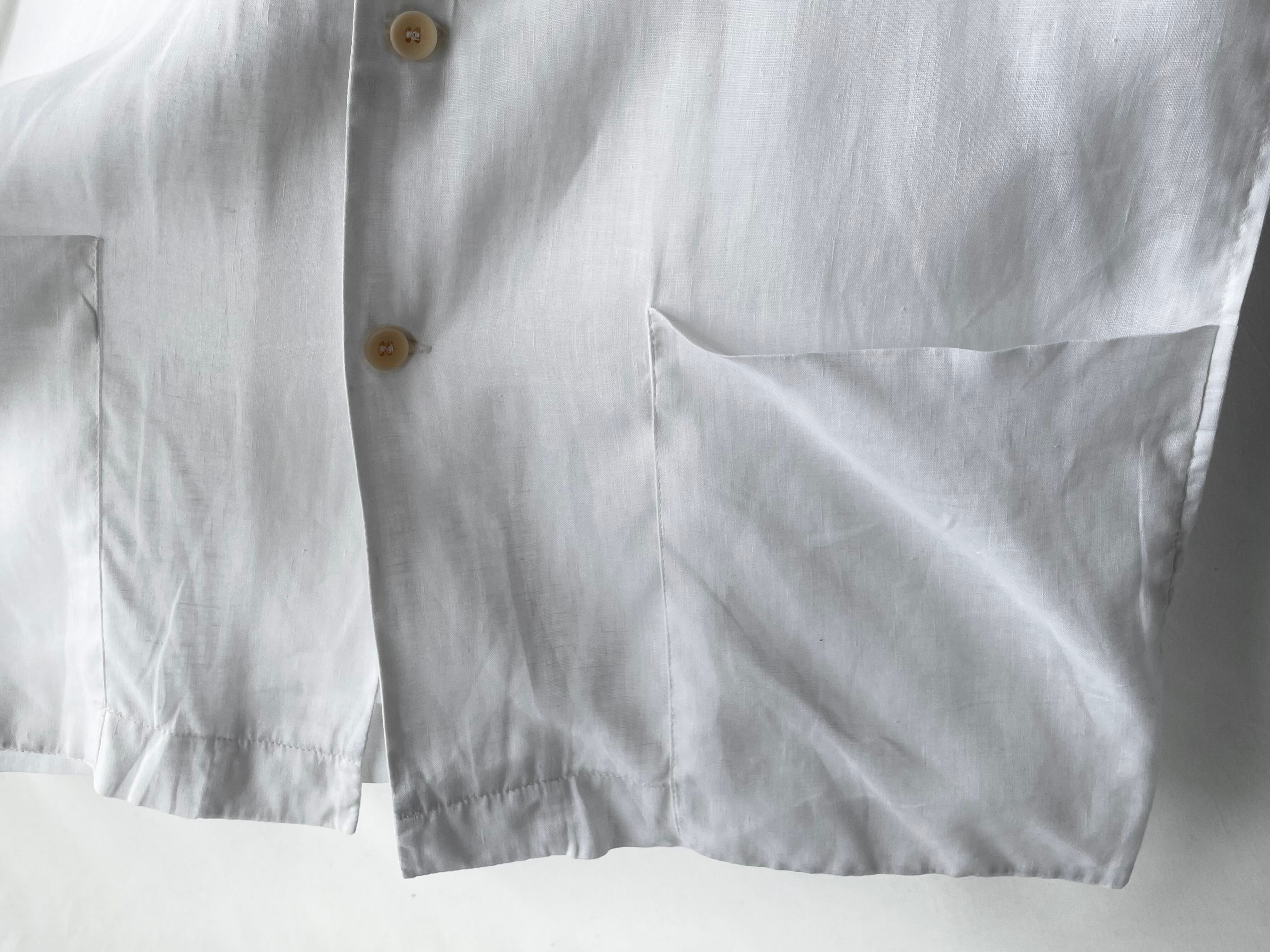 フロント3つのパッチポケット、小ぶりな端生地が割れる様なこの一着独自のシームデザイン。
