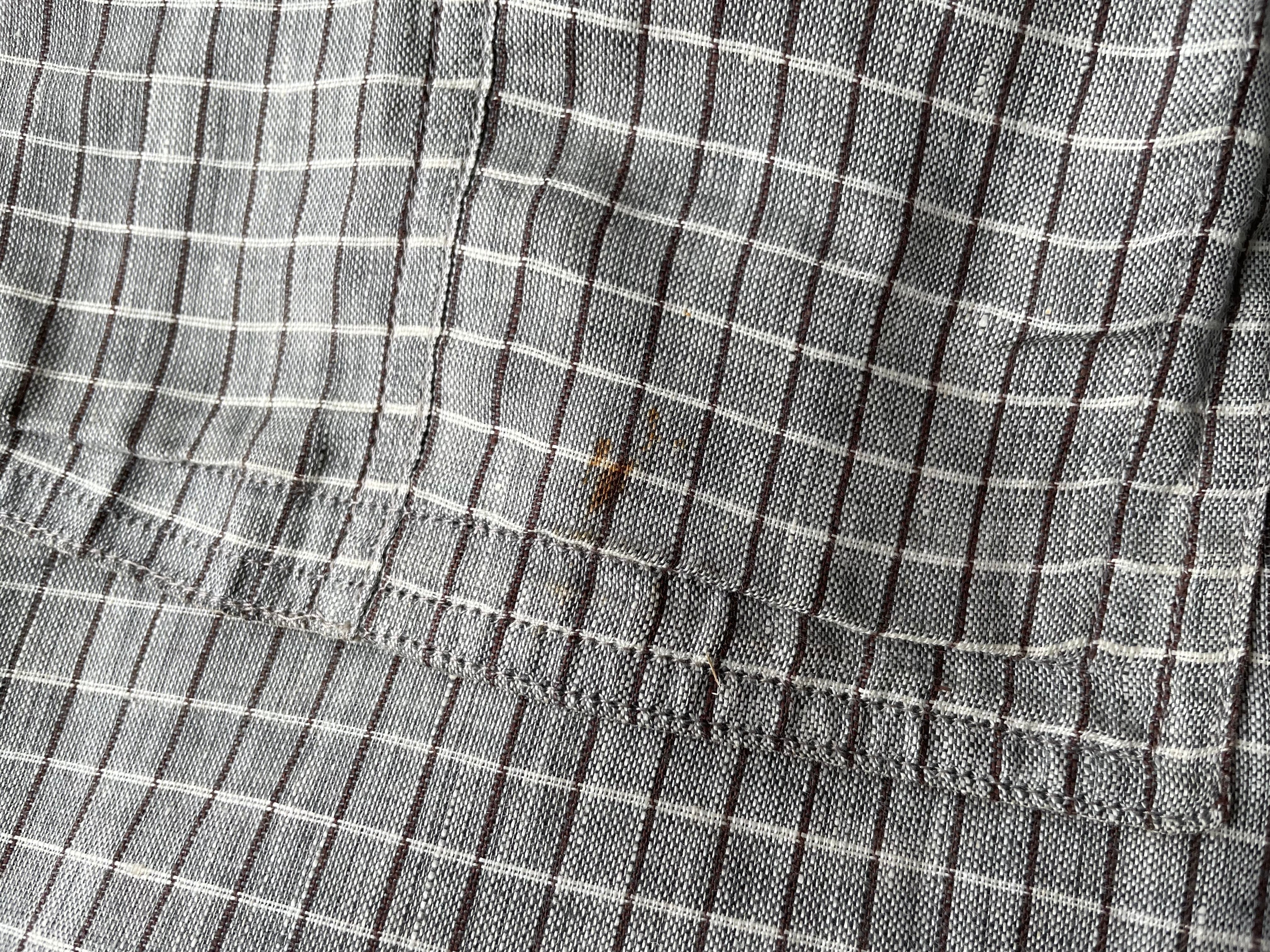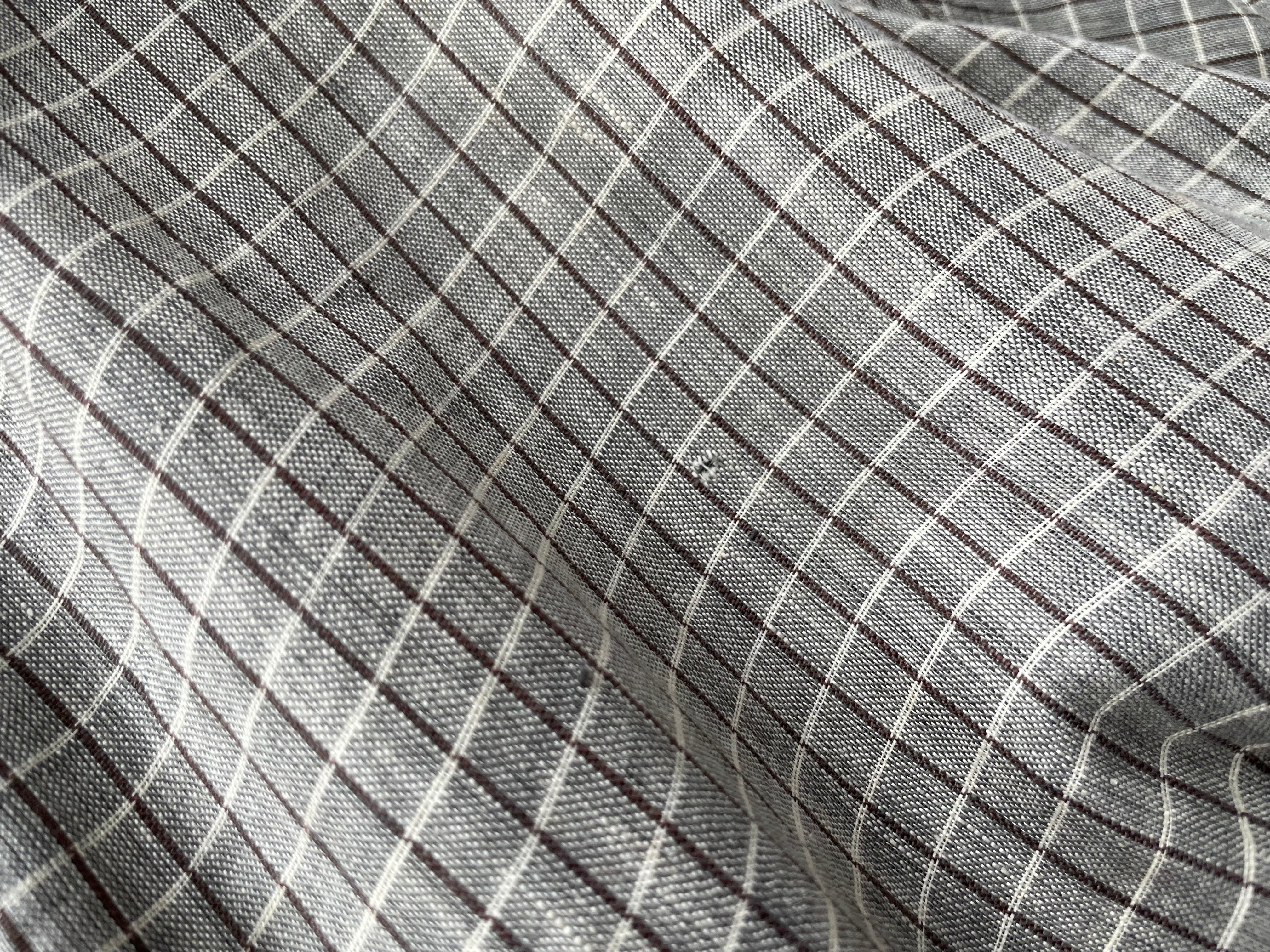 ライトグレーベースに濃茶/アイボリーの糸が乗せられた細かな織柄生地。
