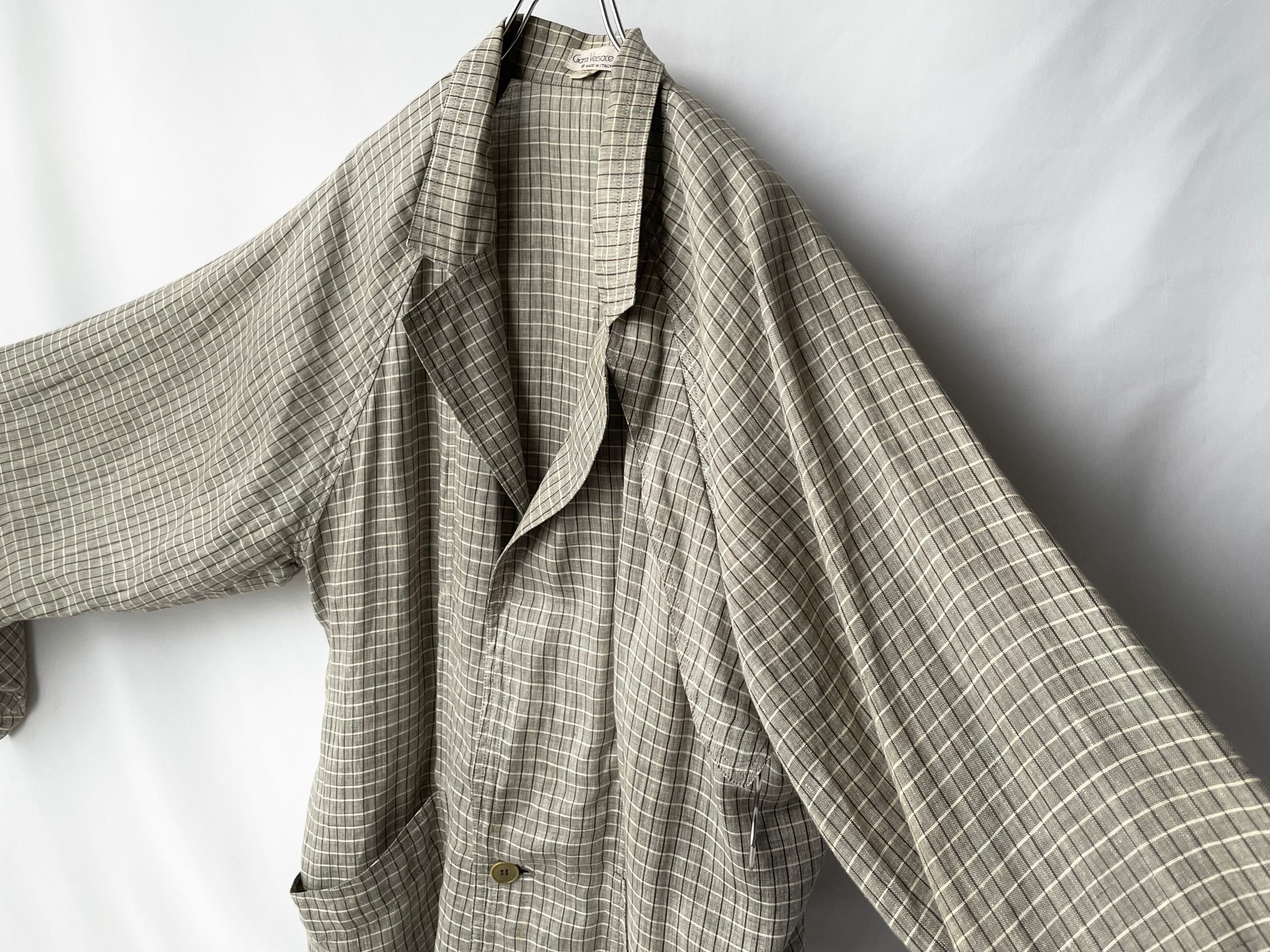 身頃から直線的に伸びる、一枚袖の平面的なワイドスリーブ。