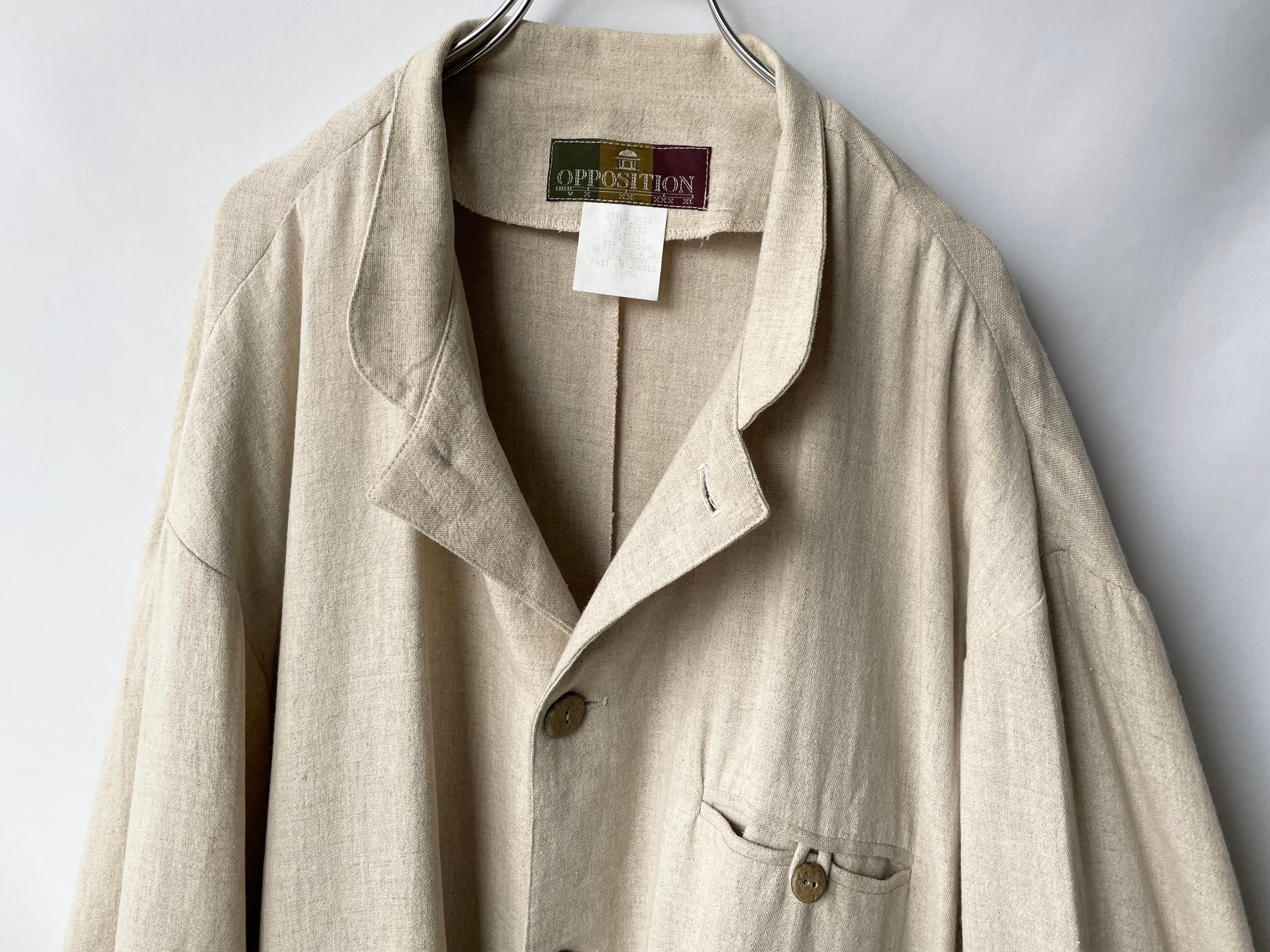 身幅/アーム幅共に大きく取られたリラックスフィット、フロント5つボタンのマオカラーカバーオール。
