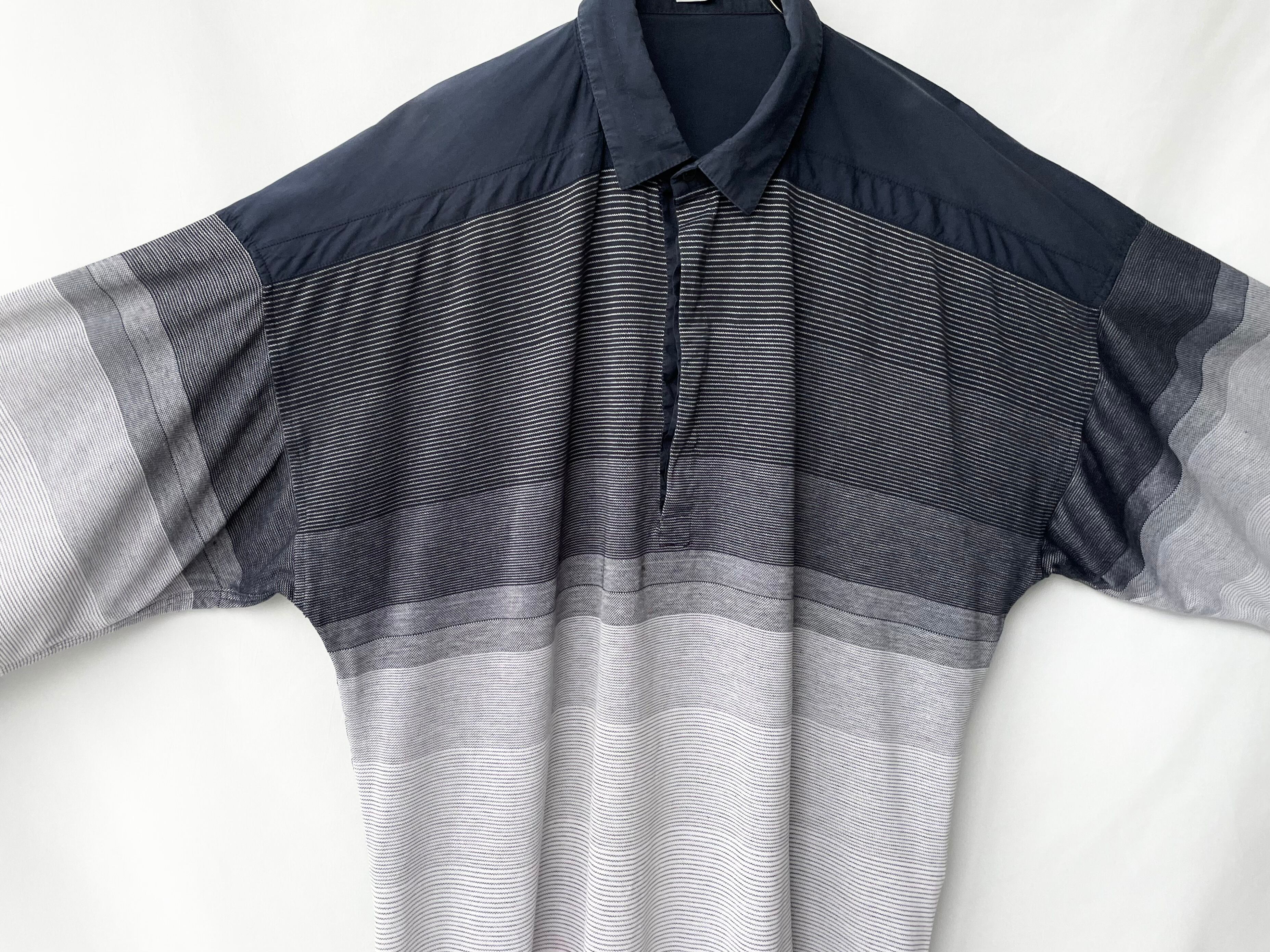 ネイビー/グレー/アイボリーのグラデーションボーダー。