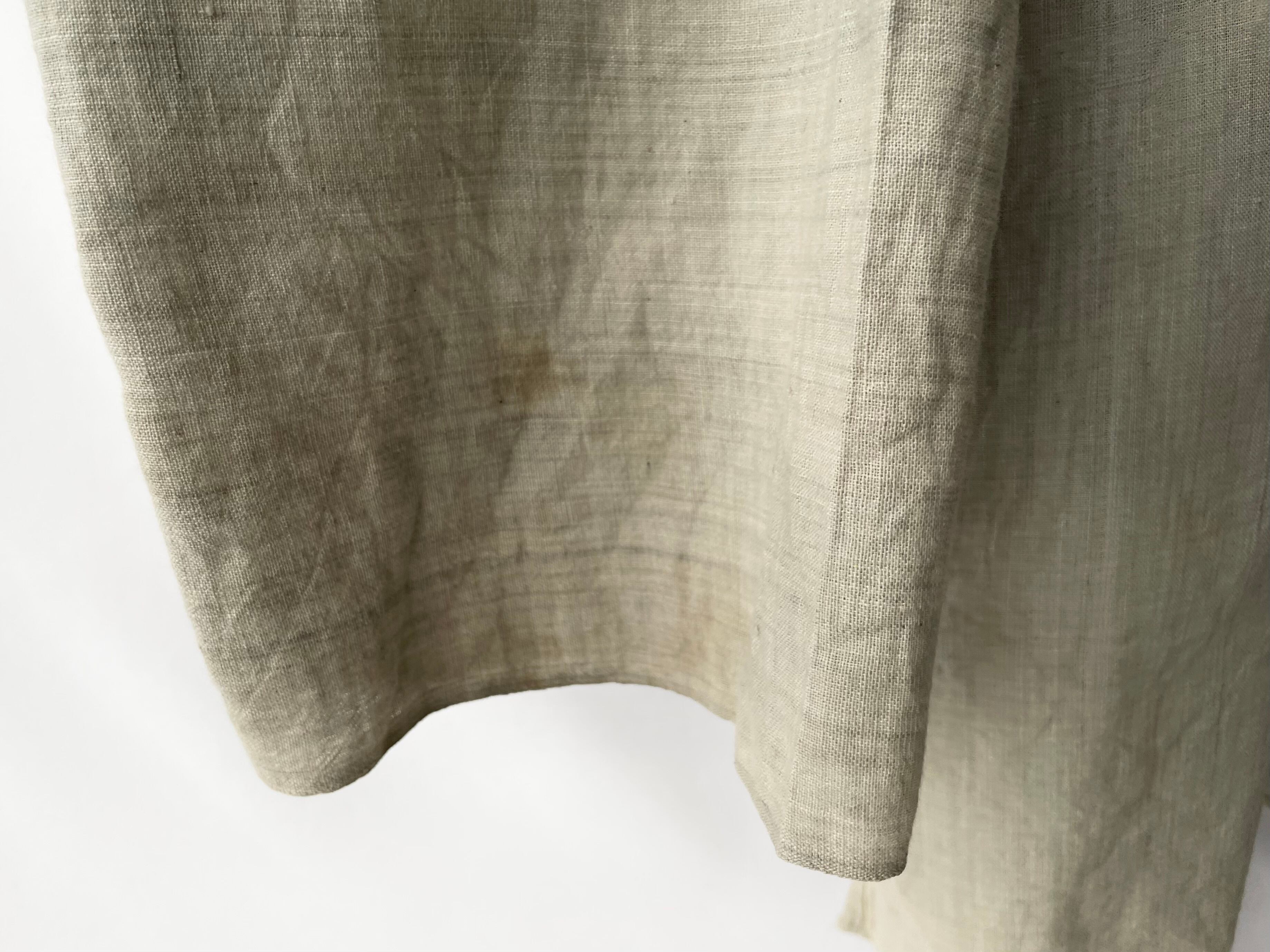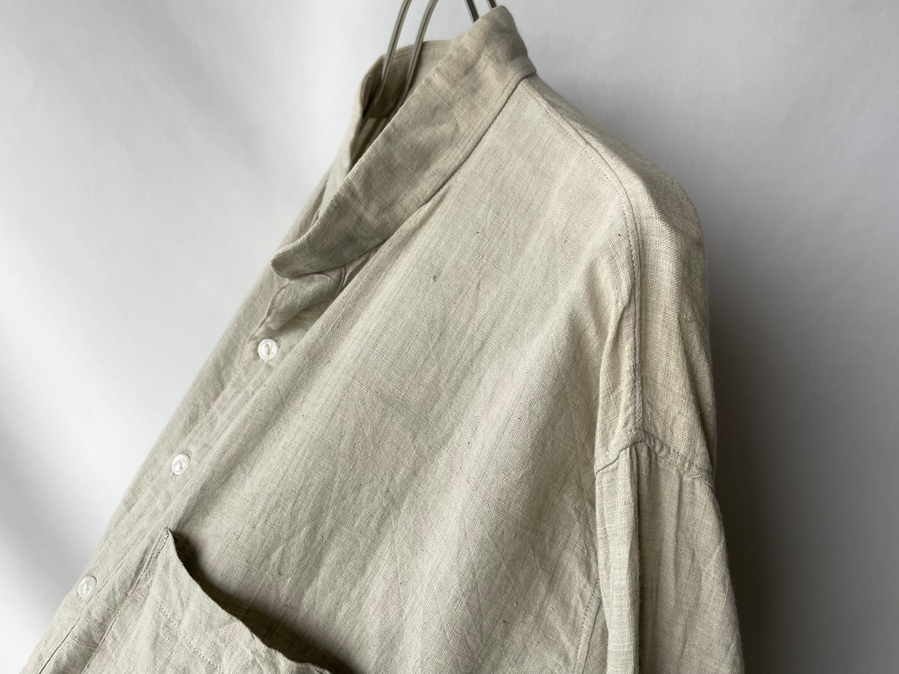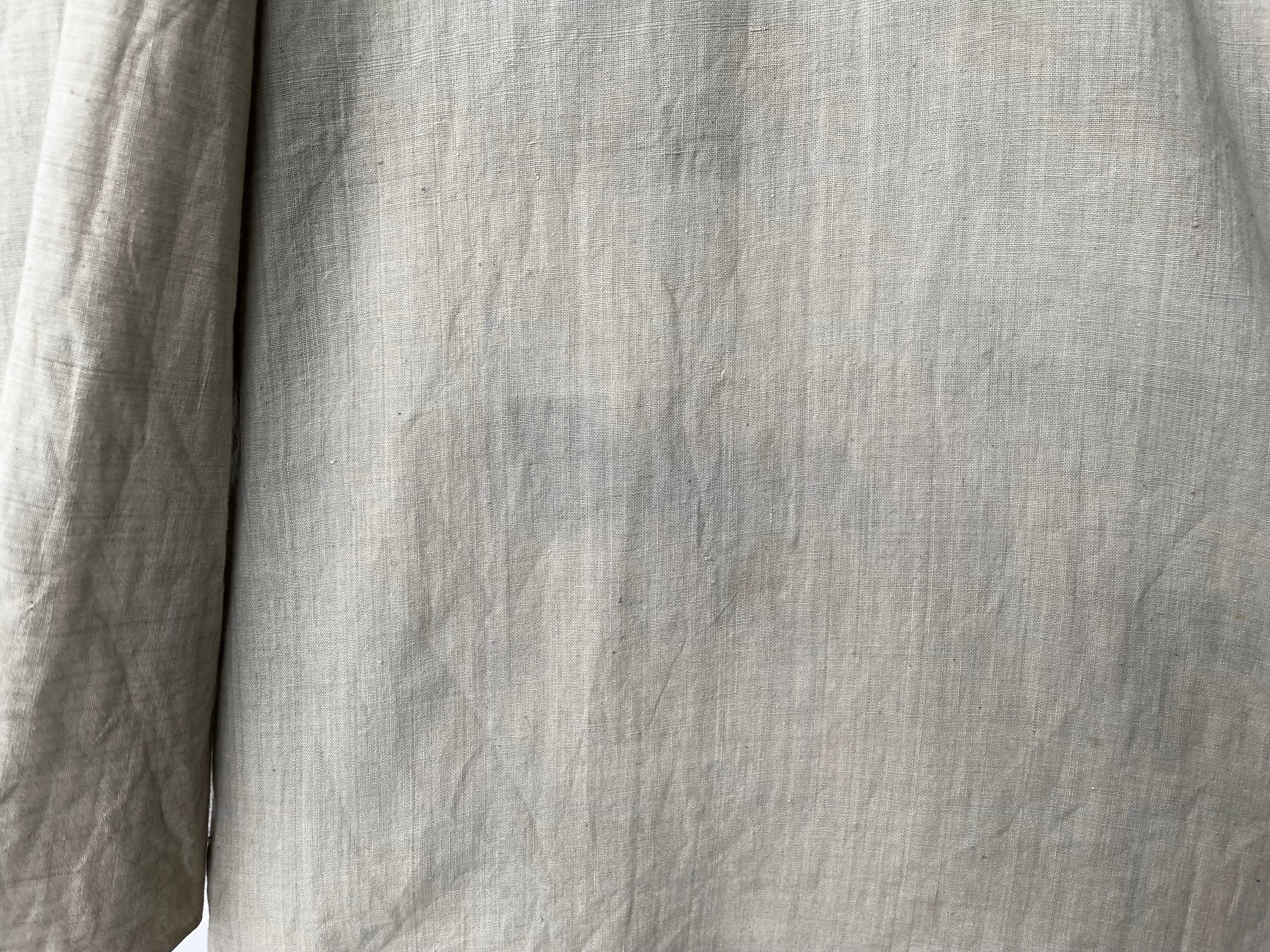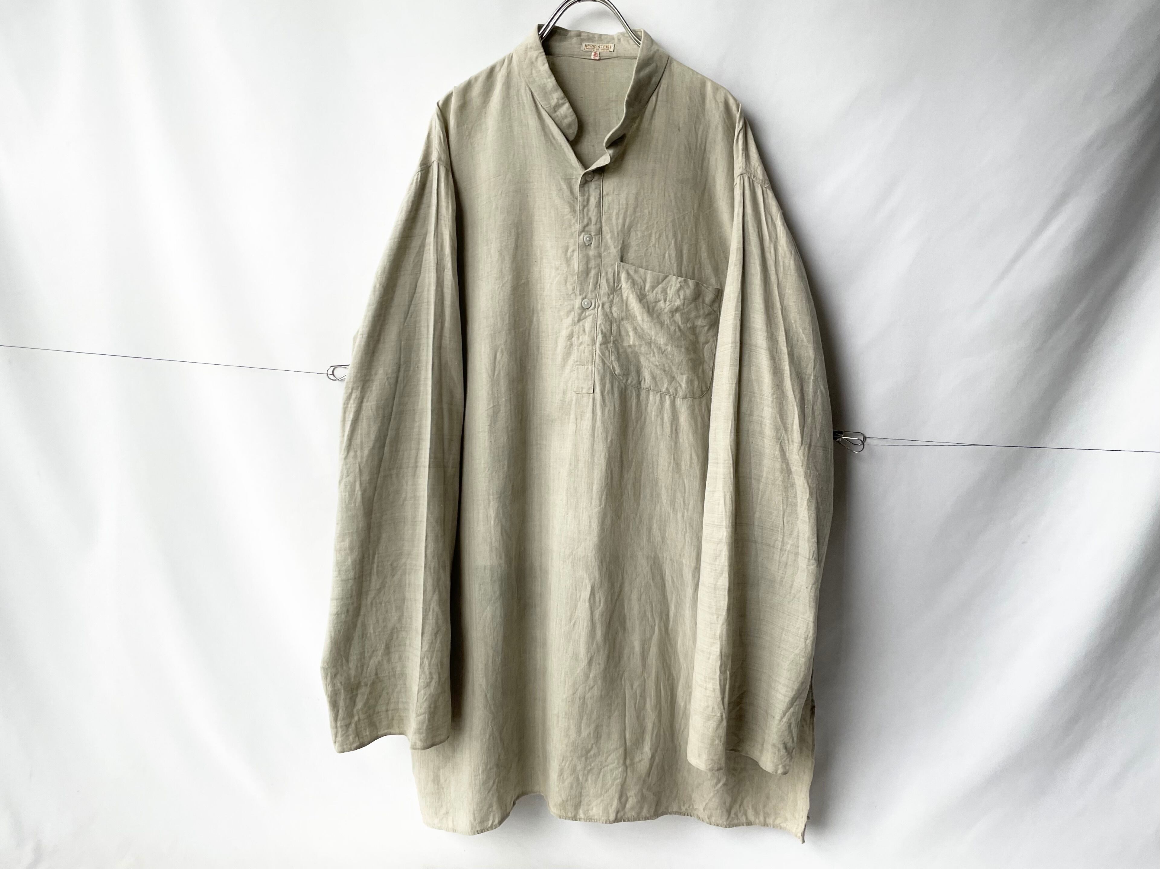 素晴らしい風合いの手紡ぎのコットン地で仕立てられた、曖昧なグレーのカフタンシャツ。