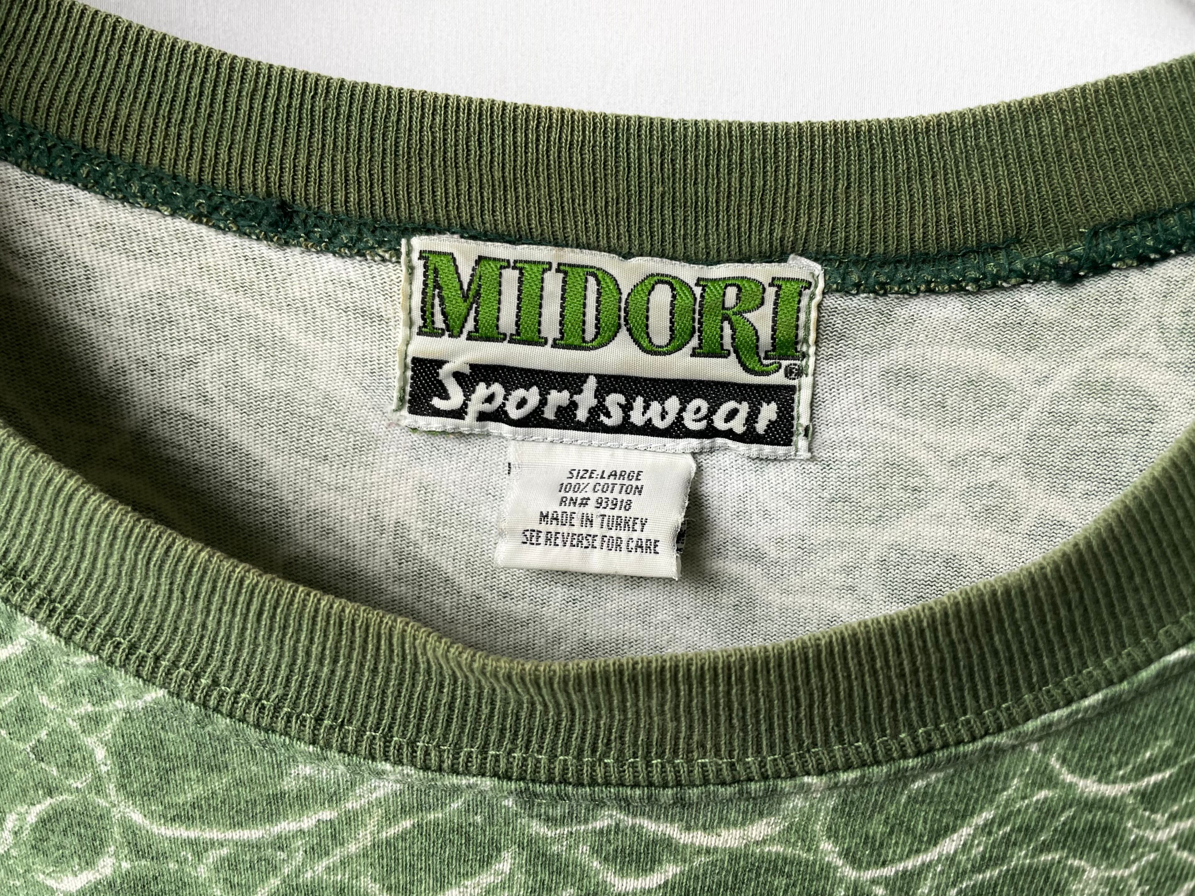 日本語"MIDORI"が混じるタグネーム、ボディはトルコ製の柔らかなオールコットン。