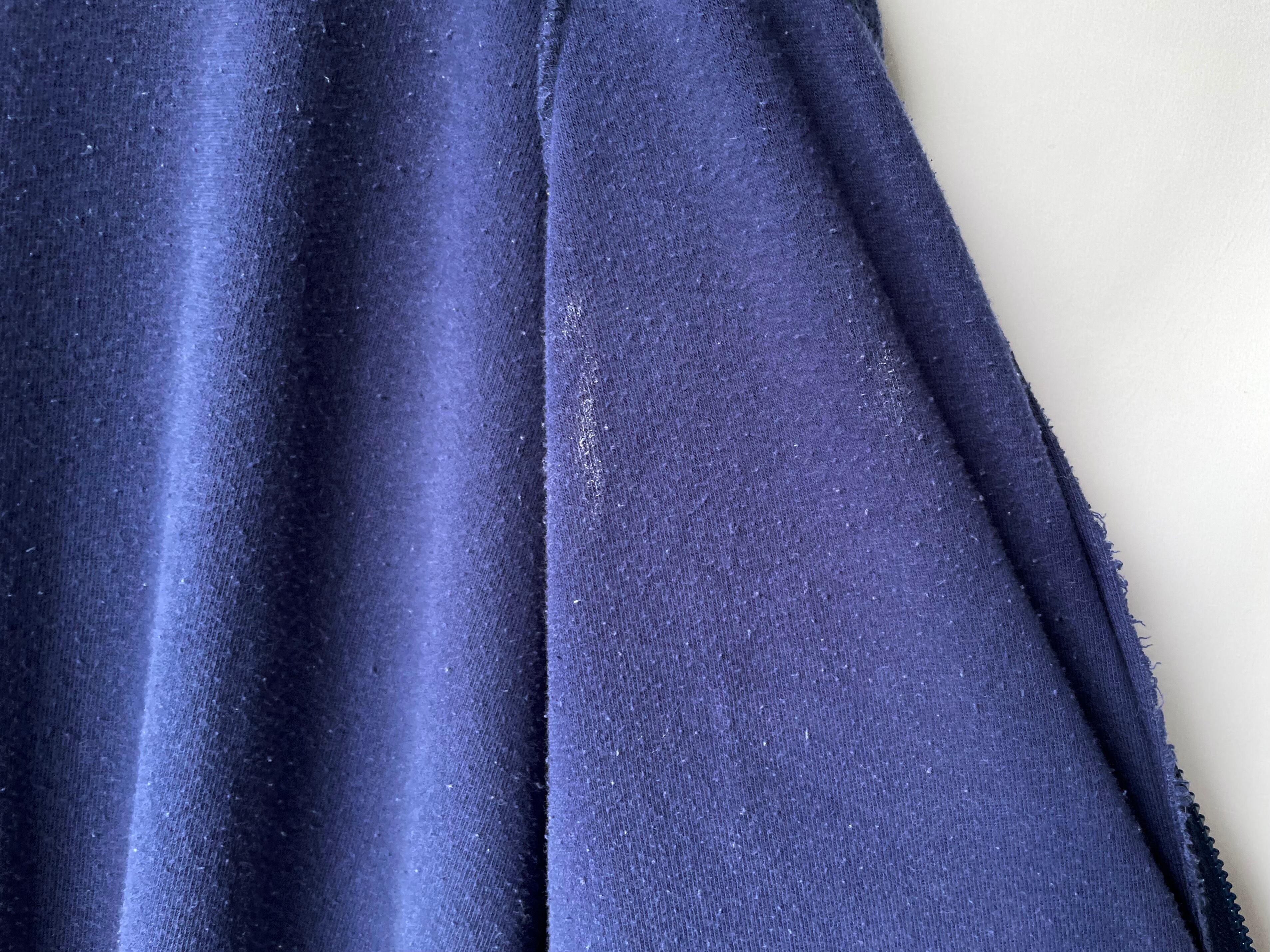 身幅/アーム幅共に大きく取られたワイドな形を絞る袖リブのディテール。