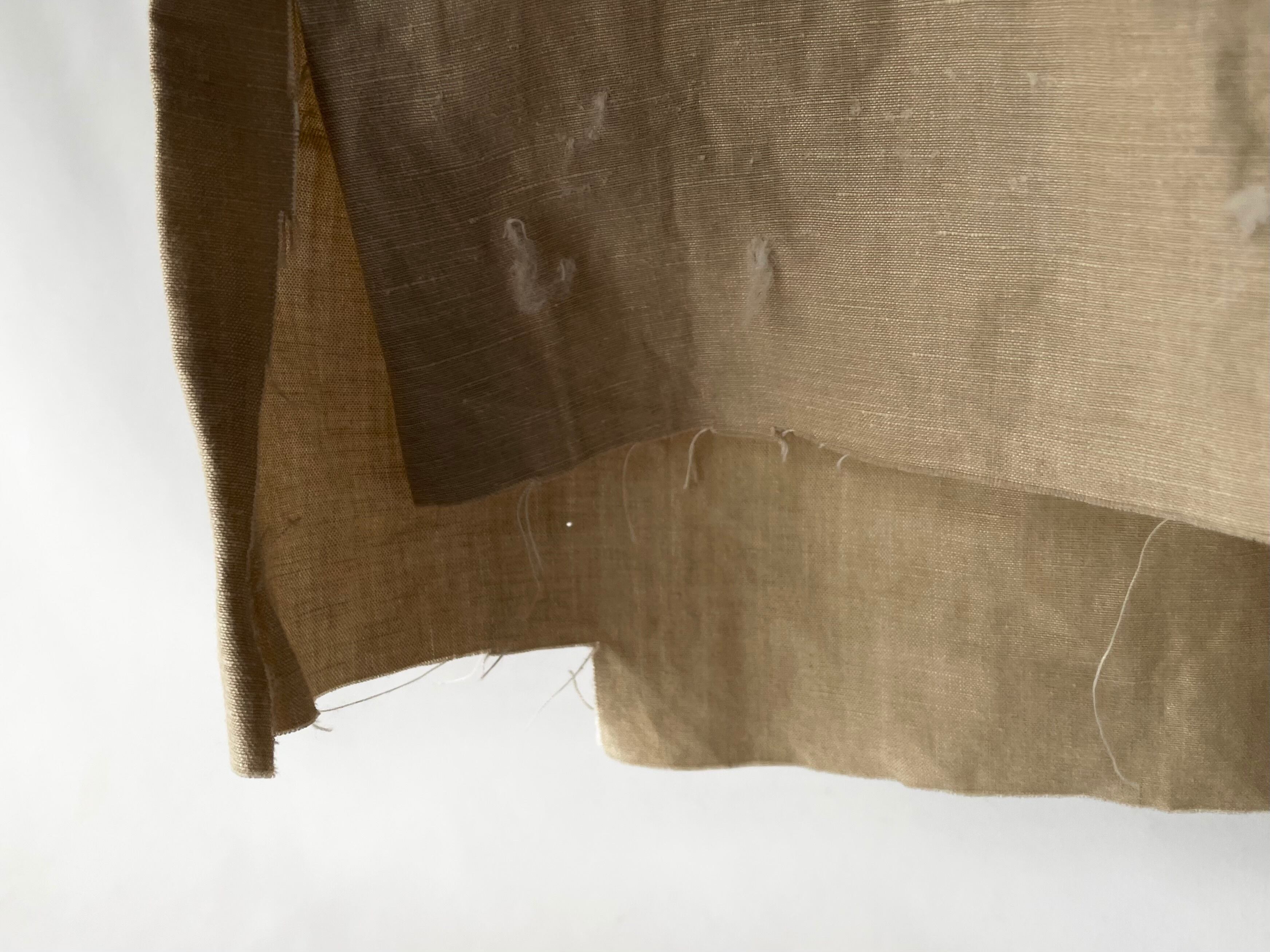 乱雑なカット/縫製が見える、細かなネップが飛んだ風合いの良いコットン生地。