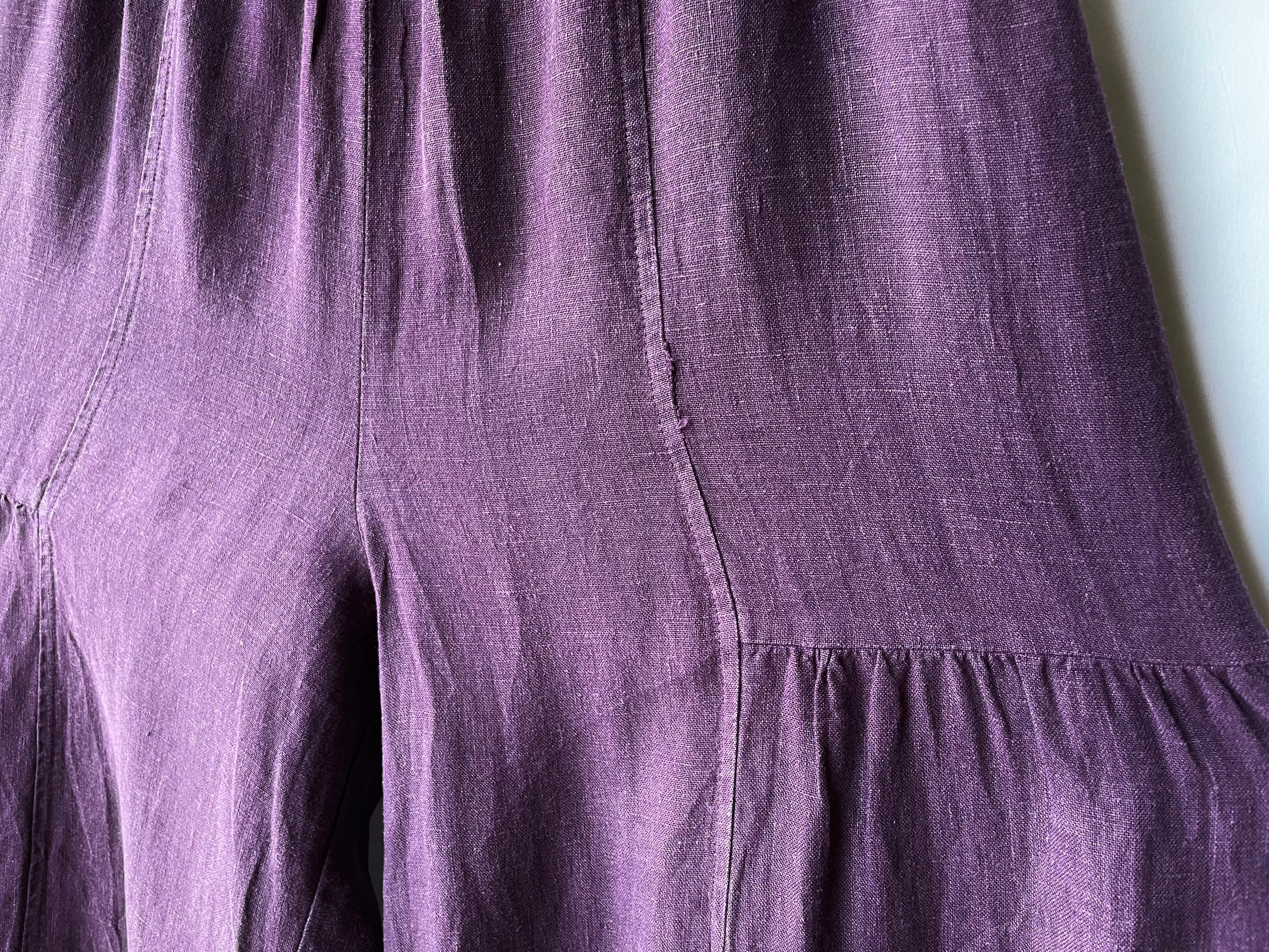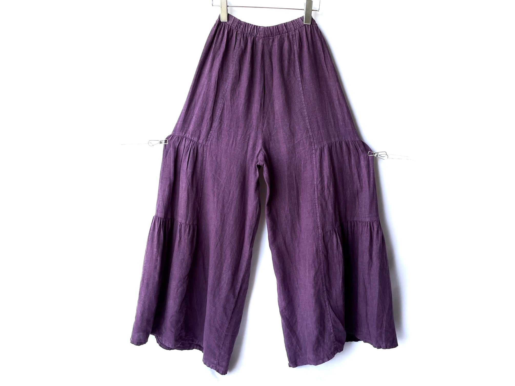 広い渡りから裾に向けて更に生地量が増える、特徴的なワイドフレアシルエット。