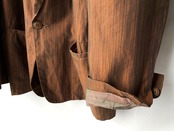 袖先は本切羽、重心の低い1つボタンフロントの縦長のショールカラーデザイン。