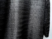 A glossy black color that allows you to see minute reflections due to the sway/movement of the fabric.