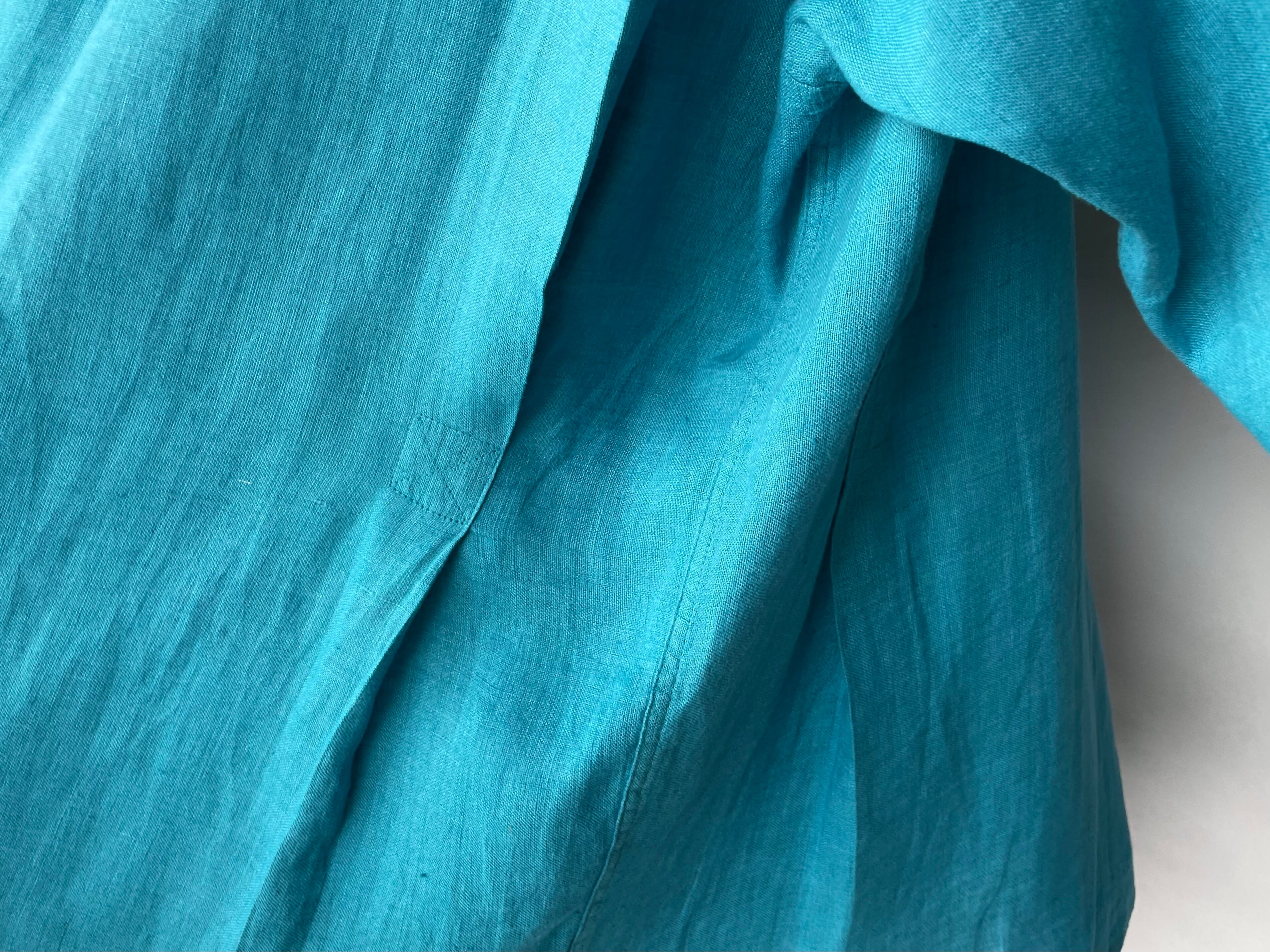 身頃半分程の深いプルオーバー×小振りな襟のリラックスシルエット。