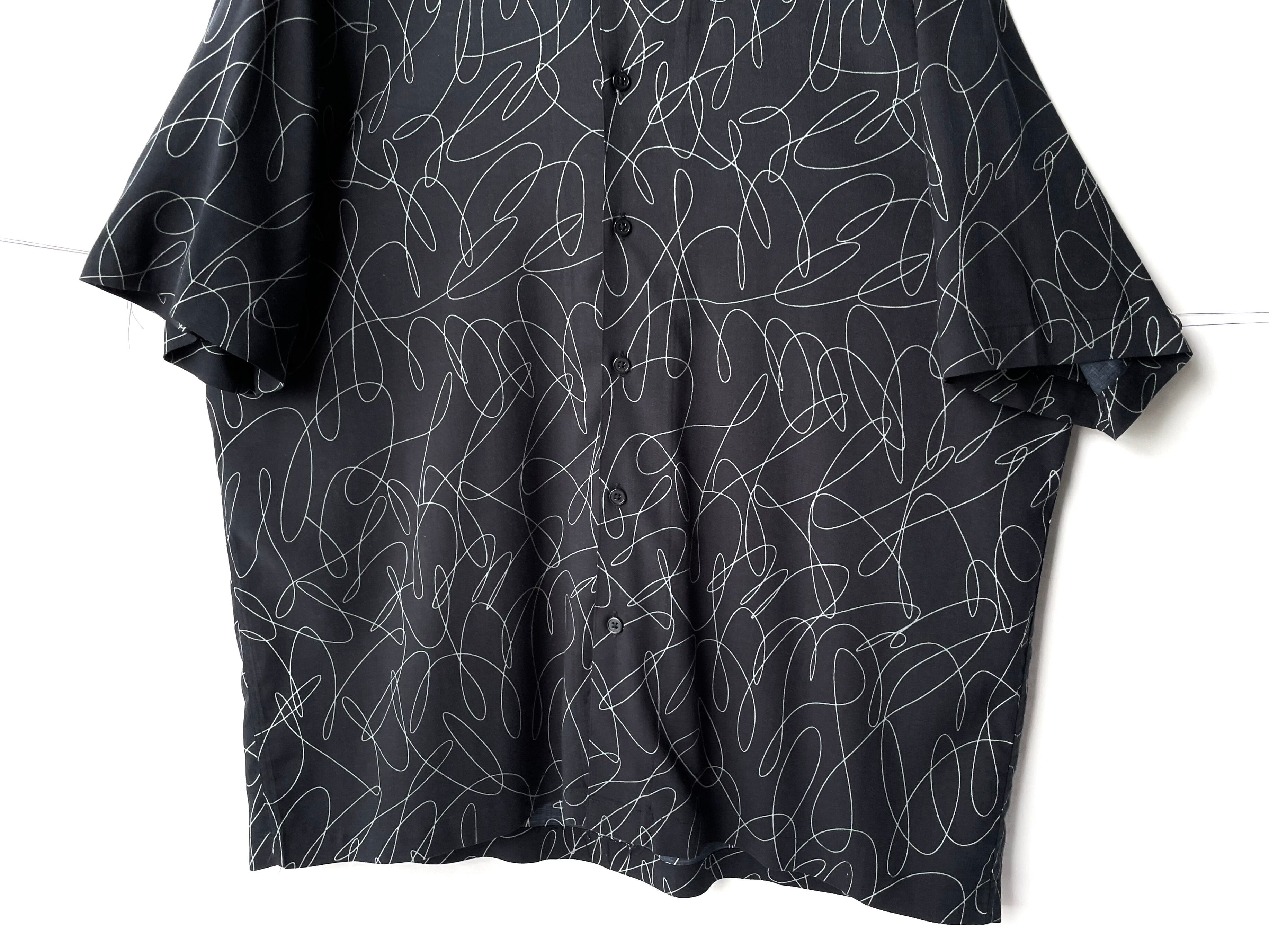 Relaxed silhouette that takes advantage of this fabric, about the size L/XL.