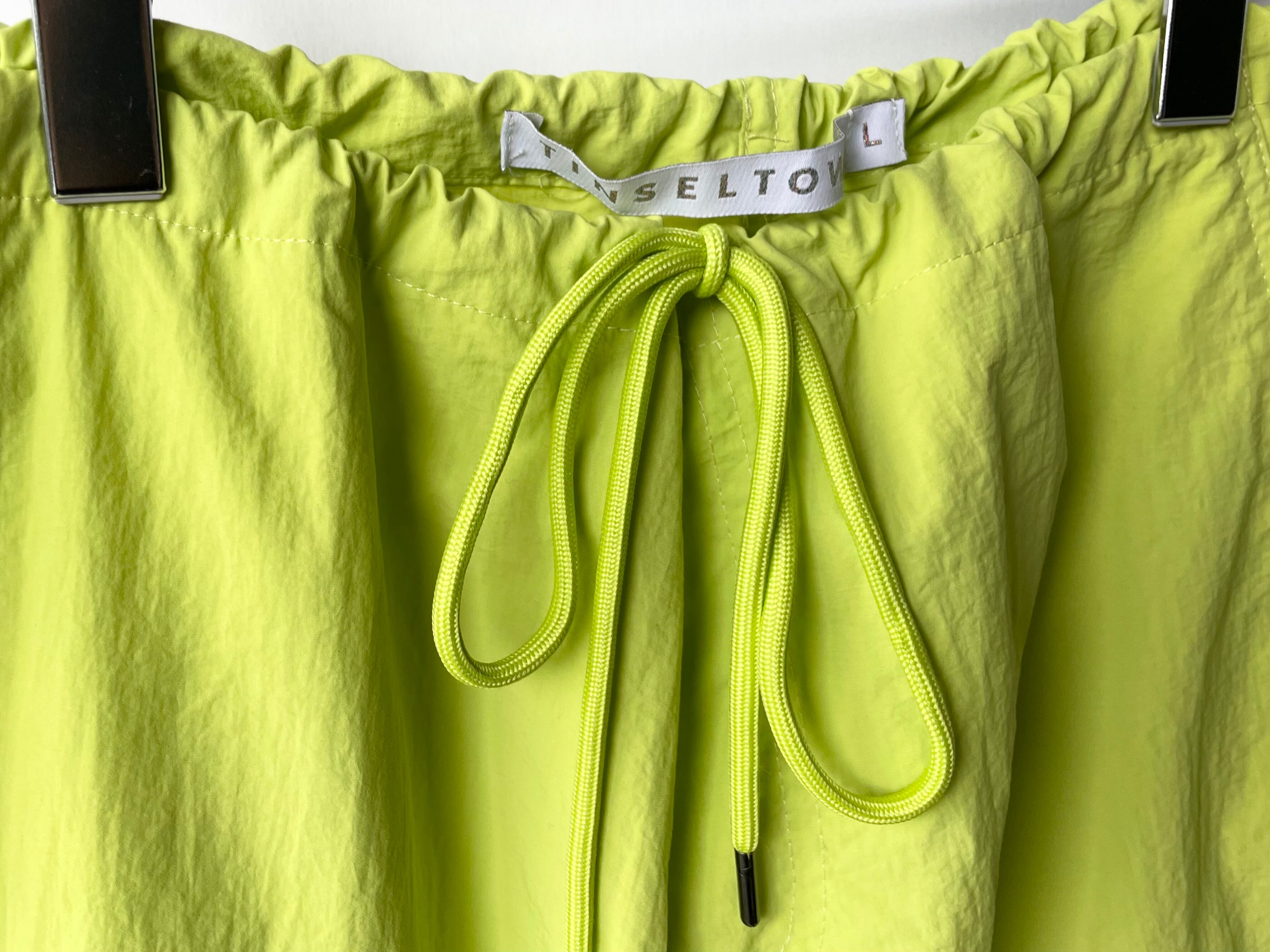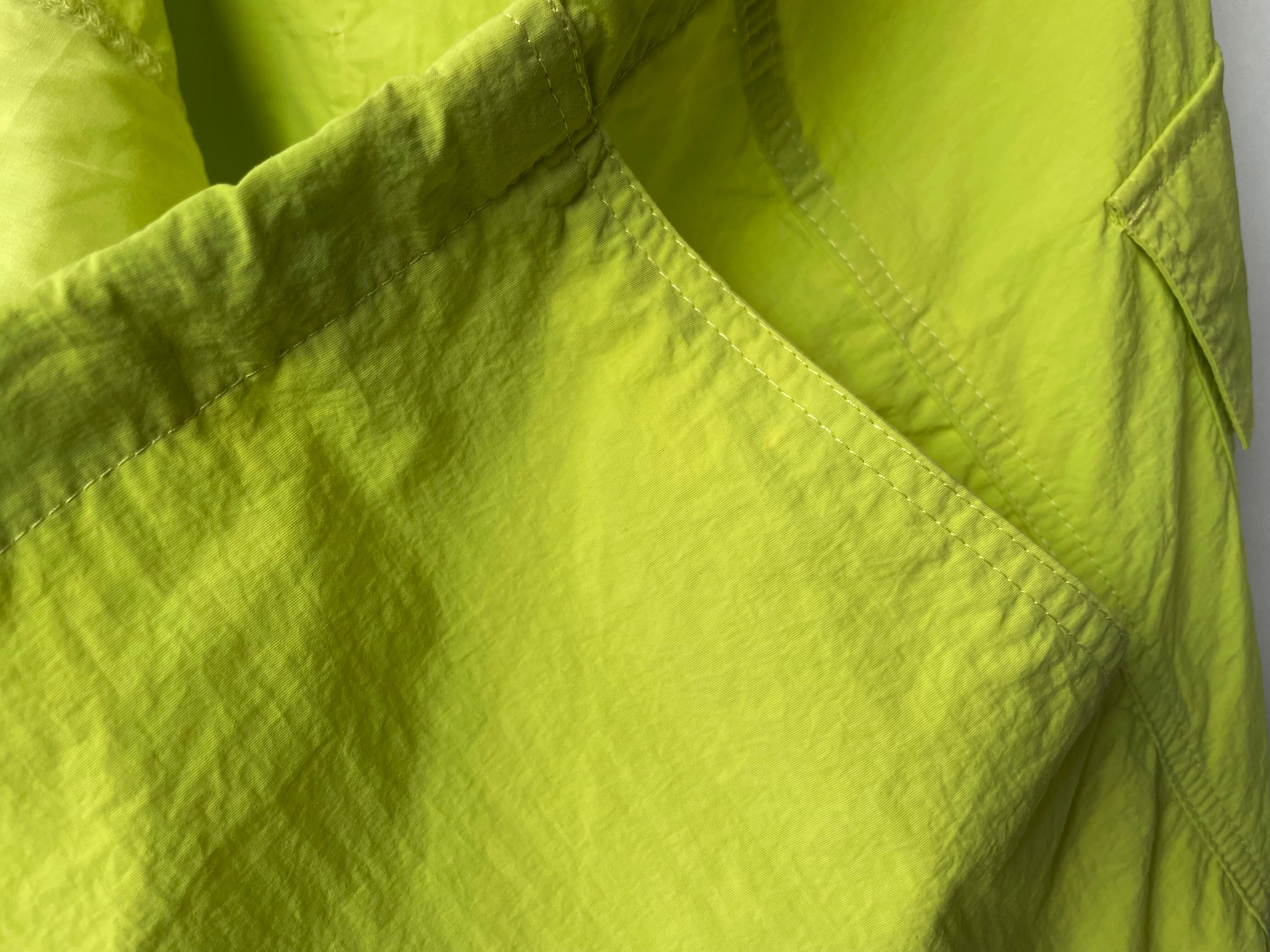 余白のあるワイドストレートシルエットを絞る、ウエスト/裾のドローコード。