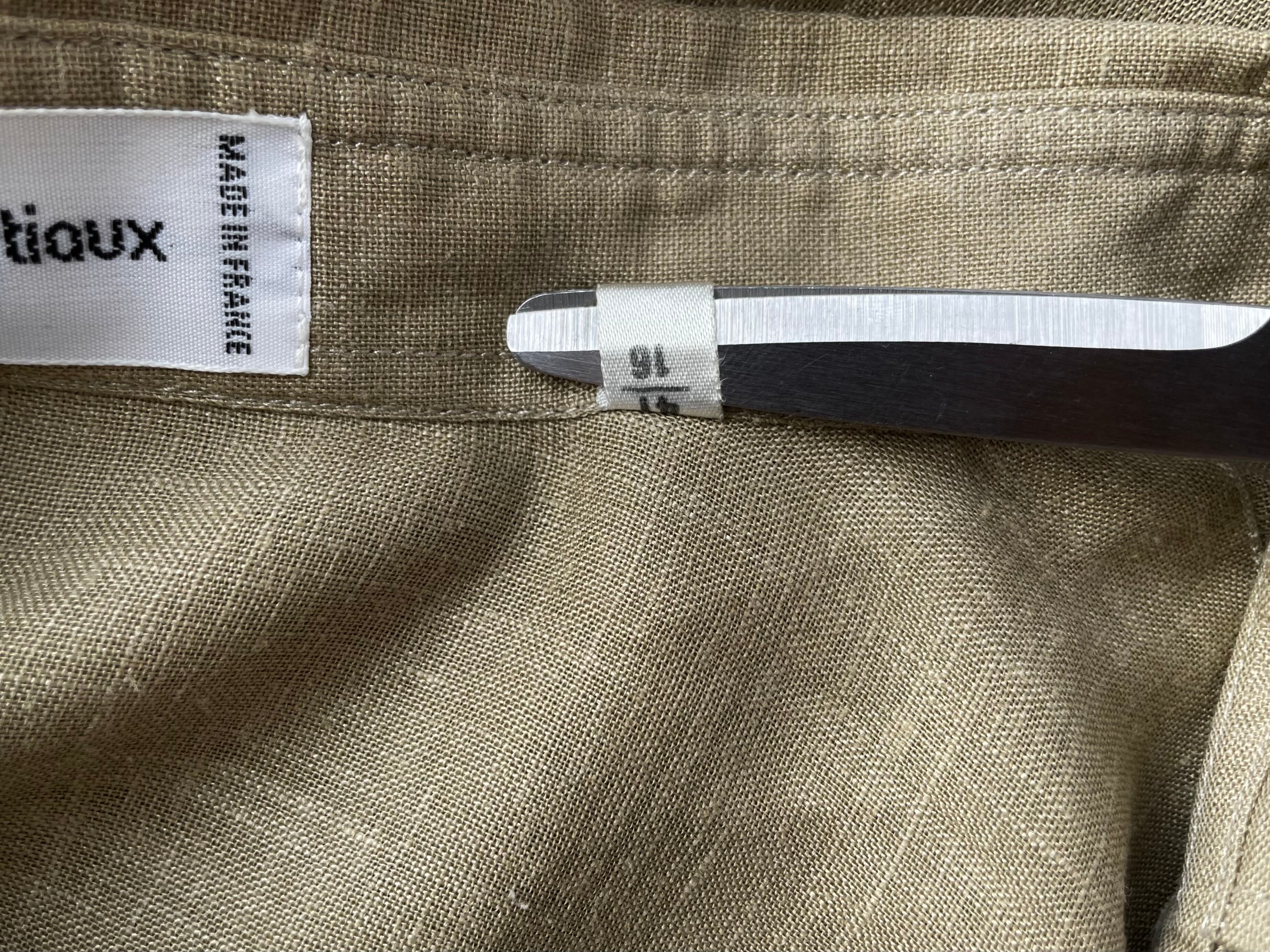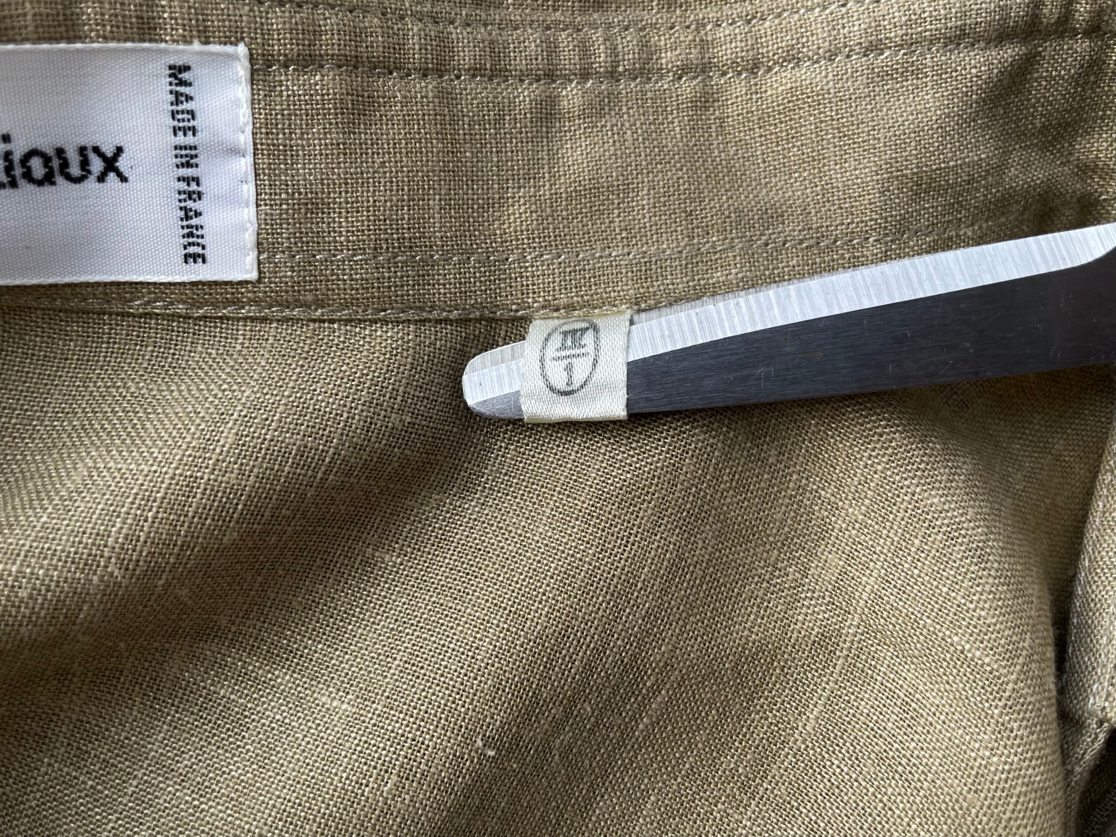 Extremely lightweight and airy, 50% linen/50% polyester blend fabric.
